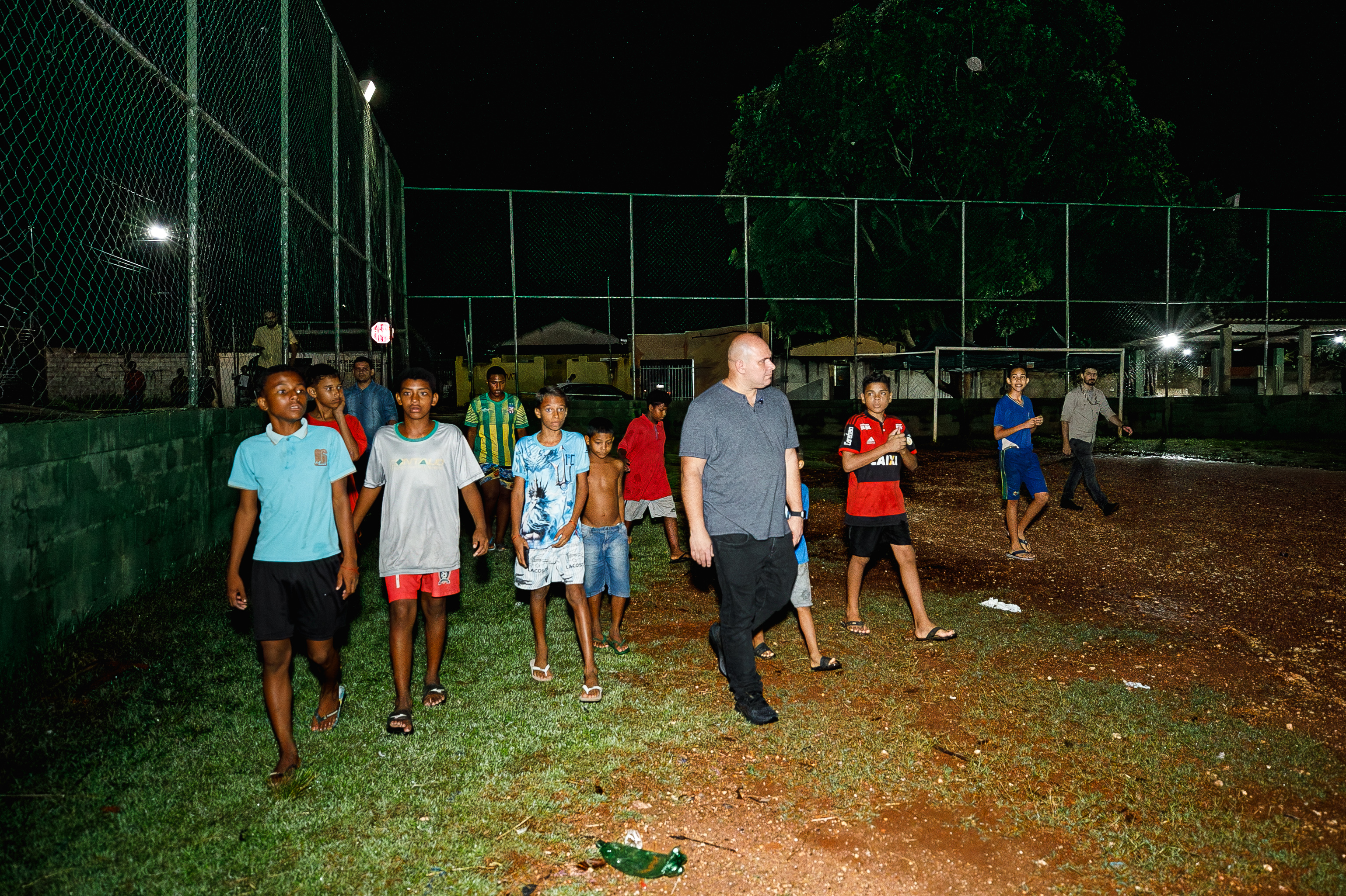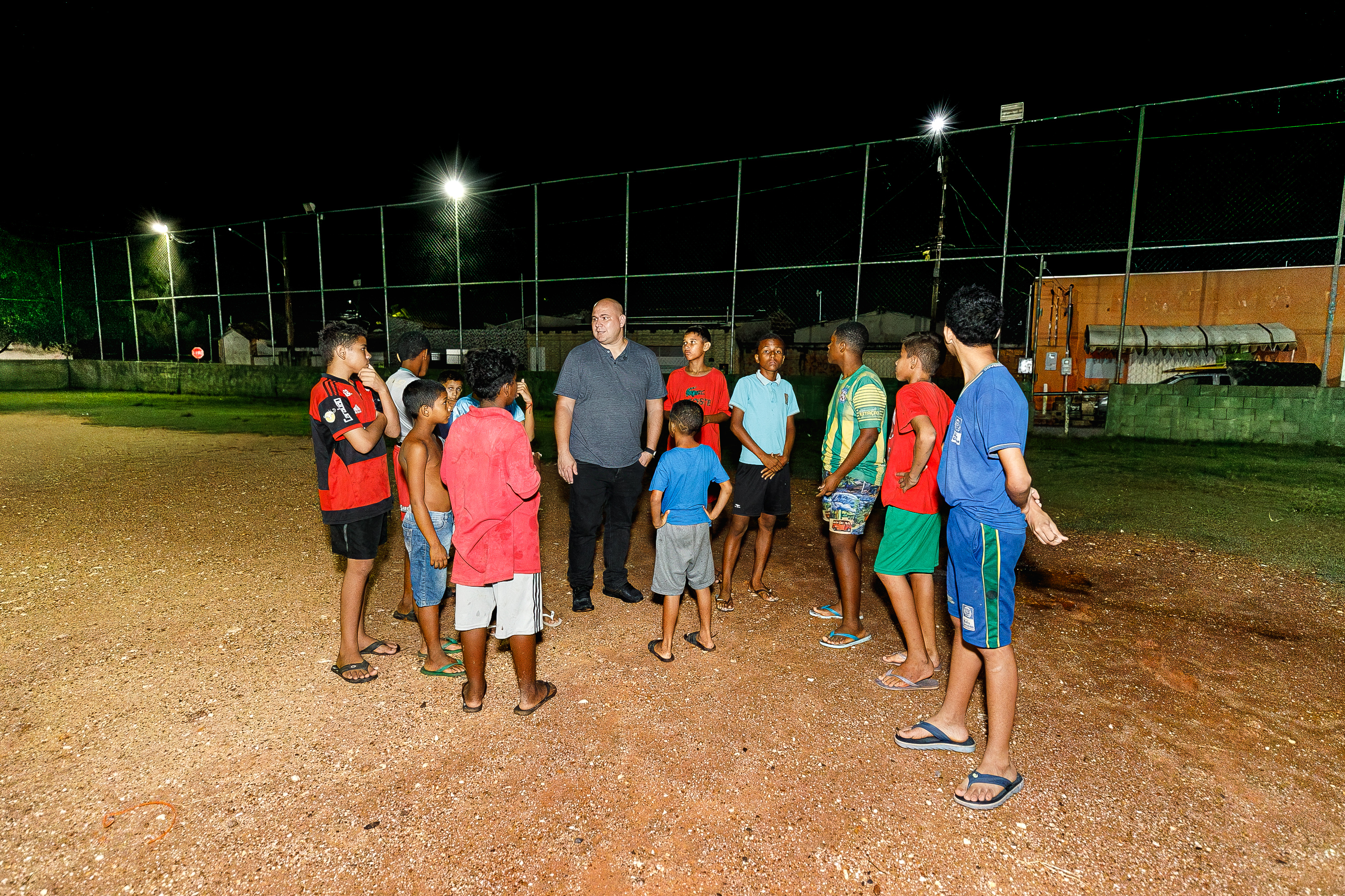Durante a visita, Abilio foi cercado por um grupo de crianças que, entusiasmadas, fizeram pedidos e relataram dificuldades do bairro. O principal pedido dos pequenos foi a reforma do campinho comunitário localizado ao lado da escola. Sensível à solicitação, o prefeito se deslocou até o local para avaliar a situação da estrutura e, de imediato, acionou o secretário de Esportes, Jefferson Neves, determinando que fossem providenciadas melhorias como gramado, iluminação e manutenção das estruturas do campo.