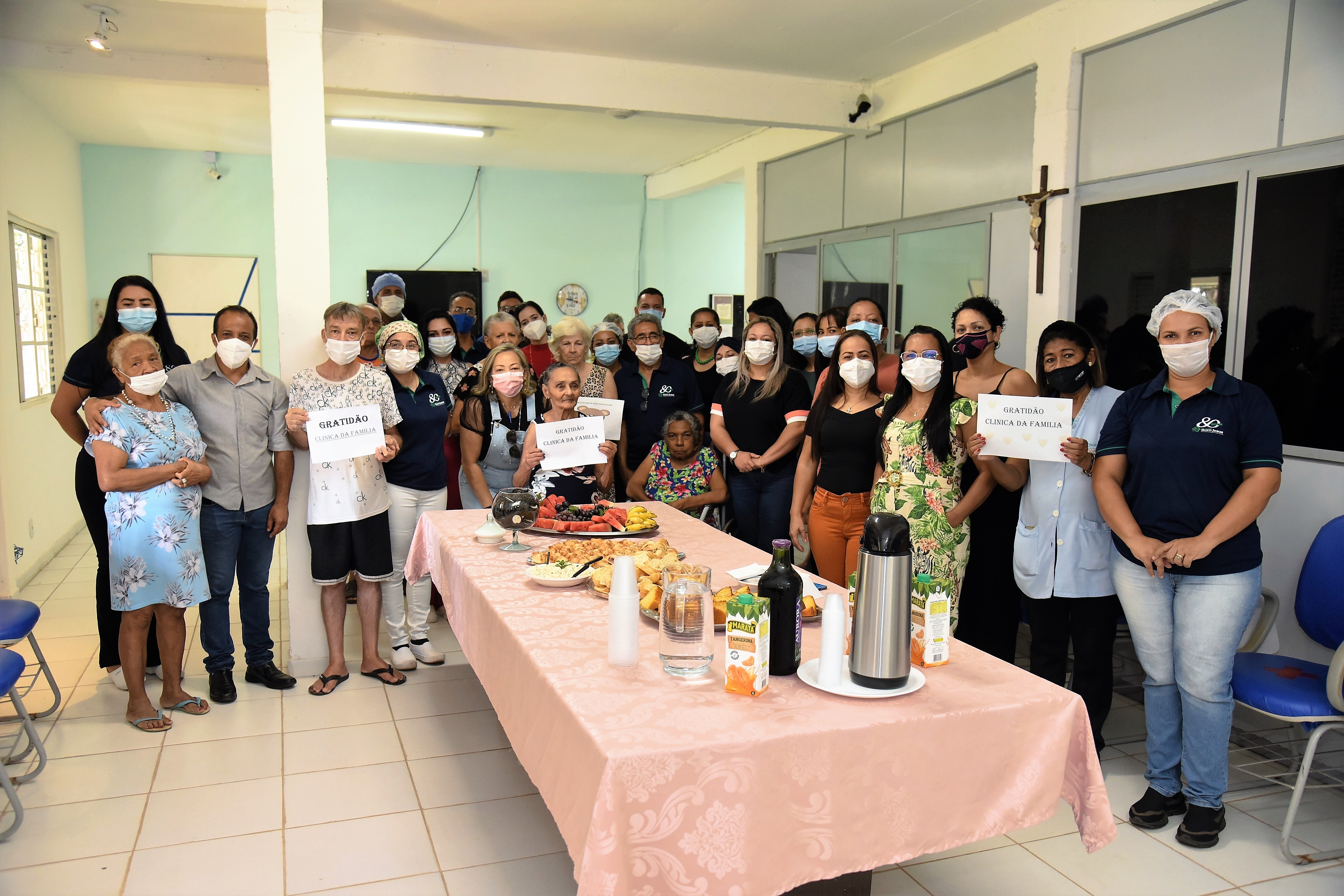 Após um mês de surto de covid-19 entre idosos e funcionários do Abrigo Bom Jesus de Cuiabá, em que mais de 50 idosos de um total de 84 testaram positivo, além de 9 funcionários, foram acometidos, quase todos já estão curados, faltando apenas três idosos que estão internados receberem alta médica. Para comemorar a vitória contra o coronavírus e agradecer pelo suporte que receberam da Secretaria Municipal de Saúde (SMS), que criou uma força-tarefa para enfrentar o surto, funcionários e idosos realizaram um café da manhã, nesta quinta-feira (30), dedicado à secretária Suelen Alliend e demais servidores que estiveram envolvidos.