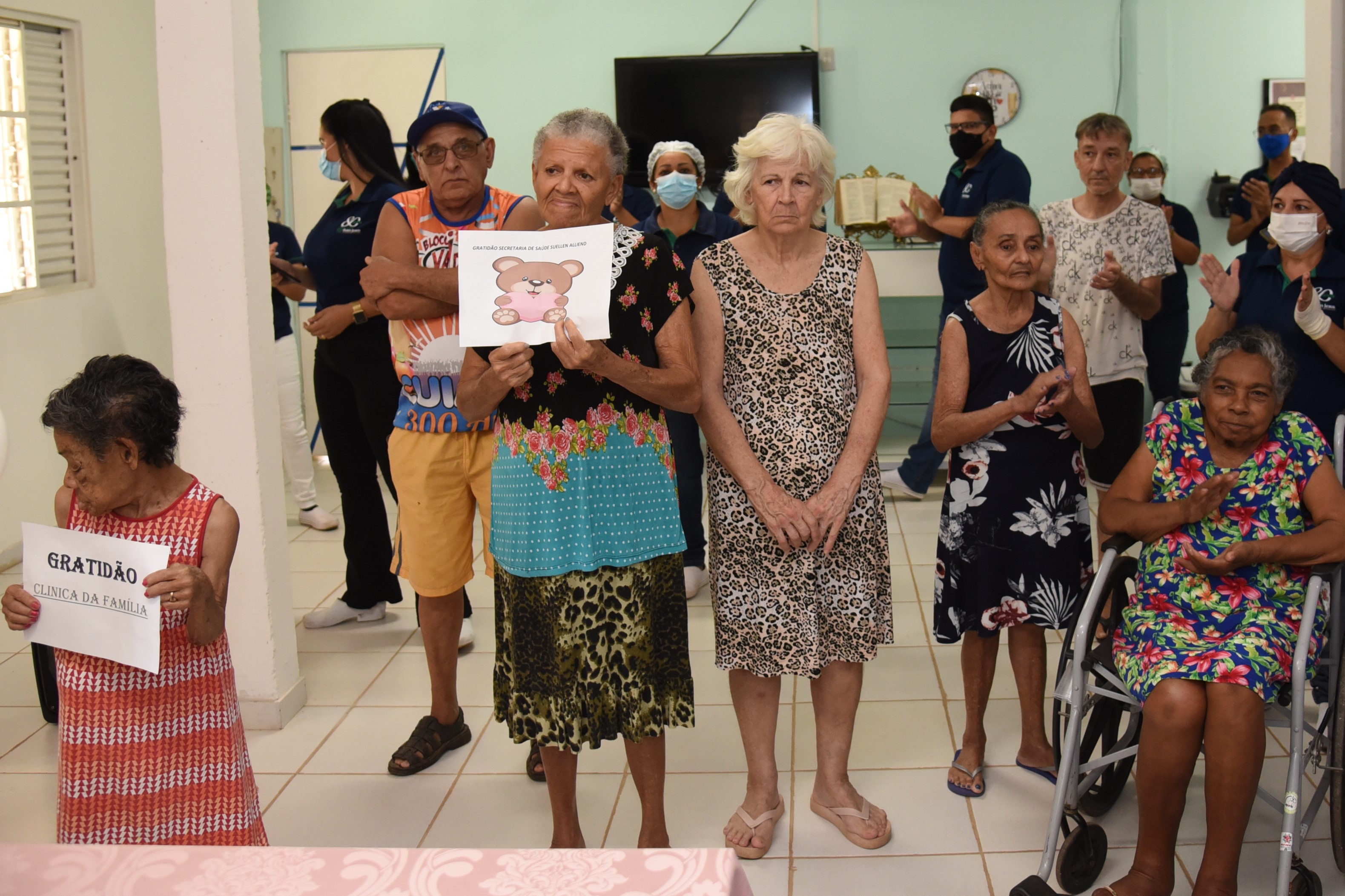 O momento foi marcado por muita emoção, com falas de agradecimento de vários colaboradores do asilo, uma homenagem dos idosos, que fizeram um desfile com plaquinhas de agradecimento ao som da música “Trem Bala”.