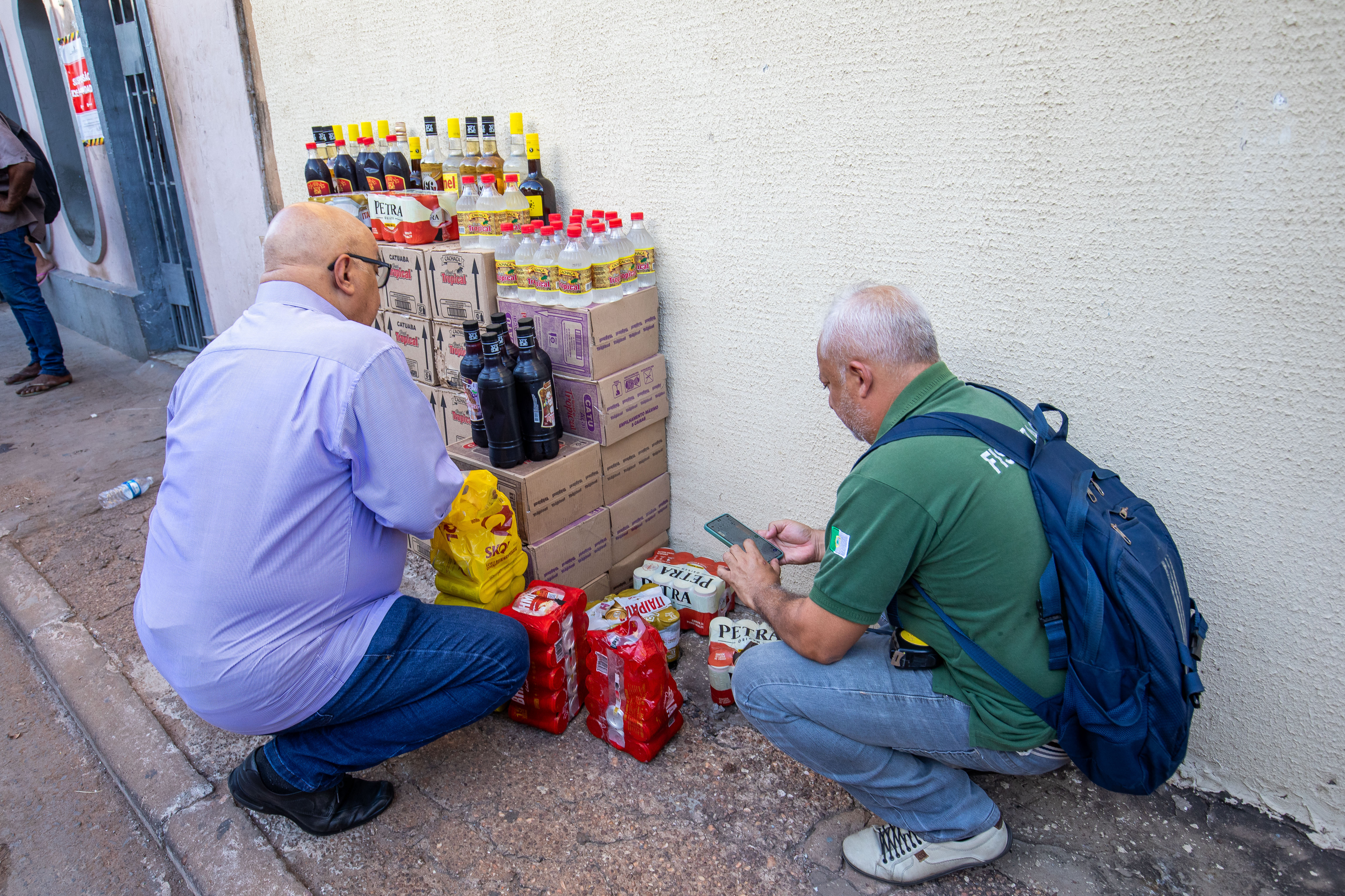 Policiais militares apreenderam bebidas alcoólicas que eram comercializadas ilegalmente no "sucatão", uma vez que não havia autorização para a venda, pois essa atividade não constava no CNAE (Classificação Nacional das Atividades Econômicas) informado à Receita Federal.