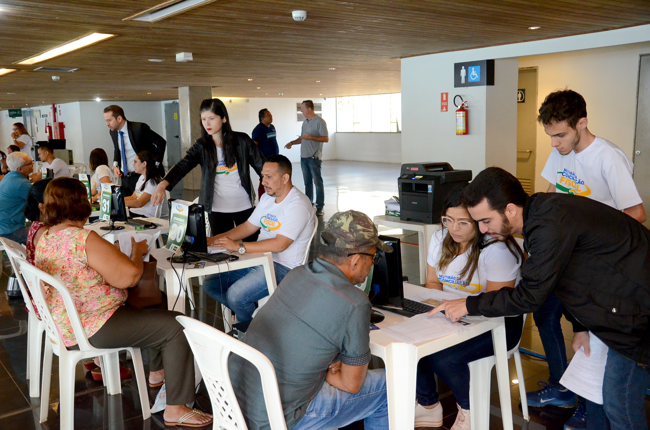 Na Arena, a equipe da Procuradoria Geral está atendendo com uma estrutura de 55 guichês, onde cerca de 80 alunos voluntários do curso de Direito de instituições parceiras fazem o atendimento ao contribuinte.