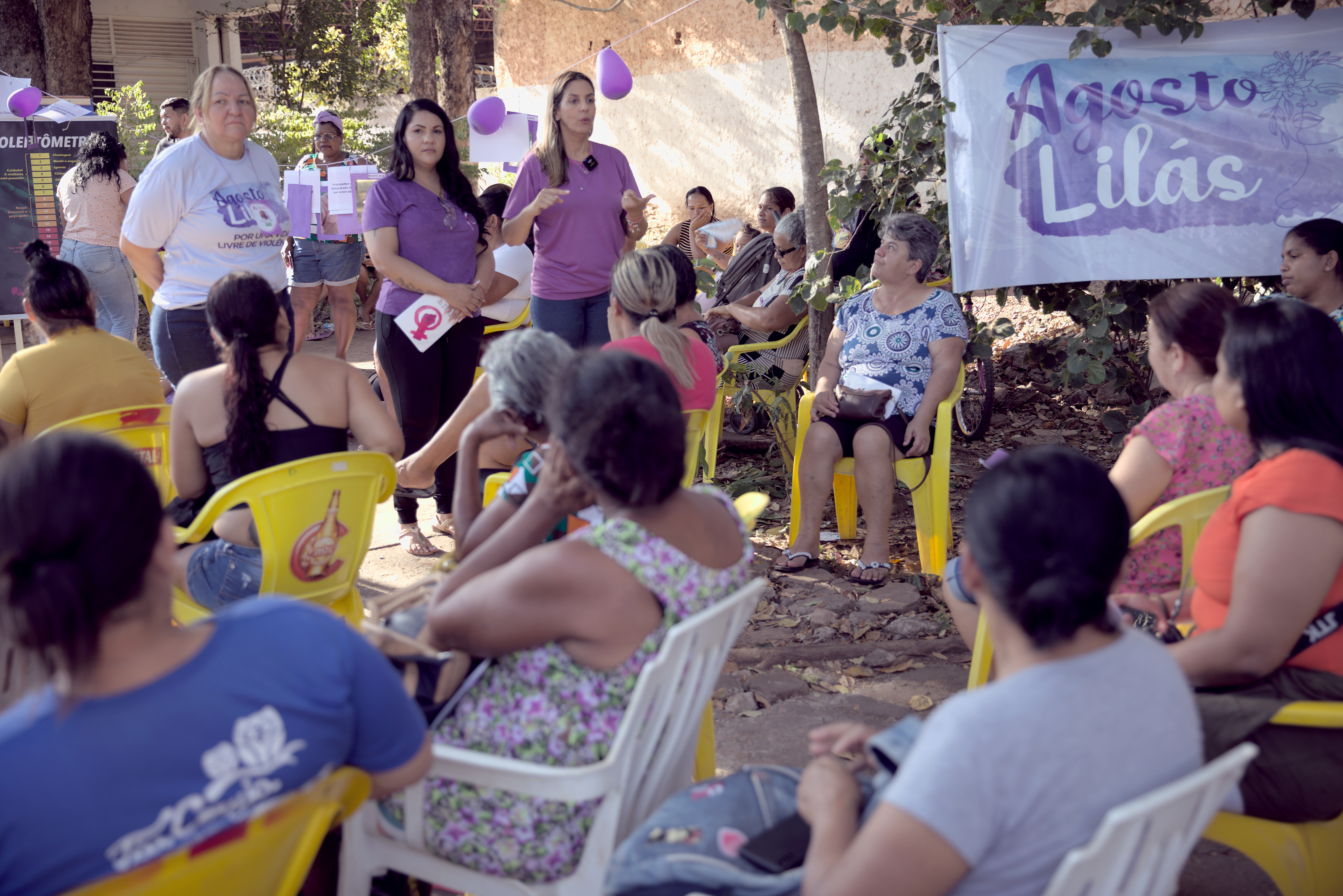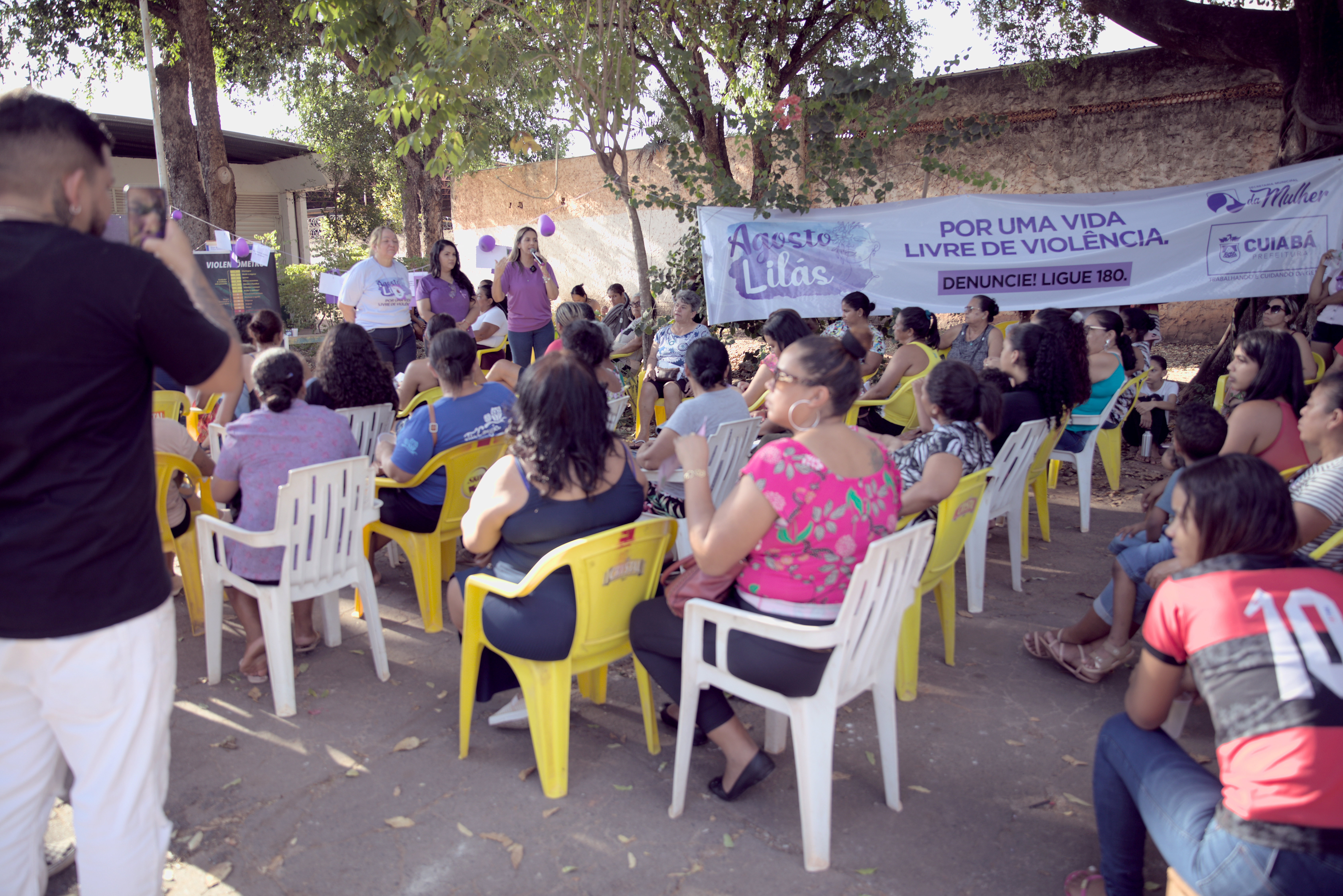 A Prefeitura de Cuiabá, através da Secretaria Municipal da Mulher e do Núcleo de Apoio à Primeira-dama, prossegue com a programação do Agosto Lilás, com suas ações de combate à violência doméstica familiar. Na última sexta-feira (11), as atividades foram apresentadas no Espaço Silva Freire, no bairro Jardim Nossa Senhora de Aparecida, na região do Coxipó.