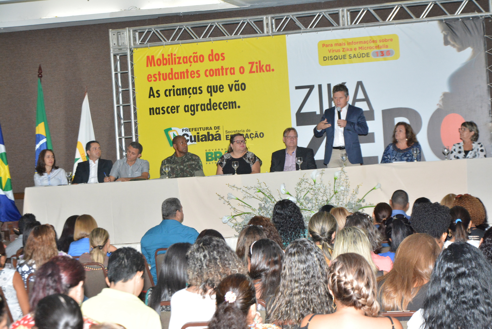 Durante o evento, o prefeito Mauro Mendes falou da importância do envolvimento de todas as instituições ligadas à Educação num trabalho conjunto para combater o mosquito.