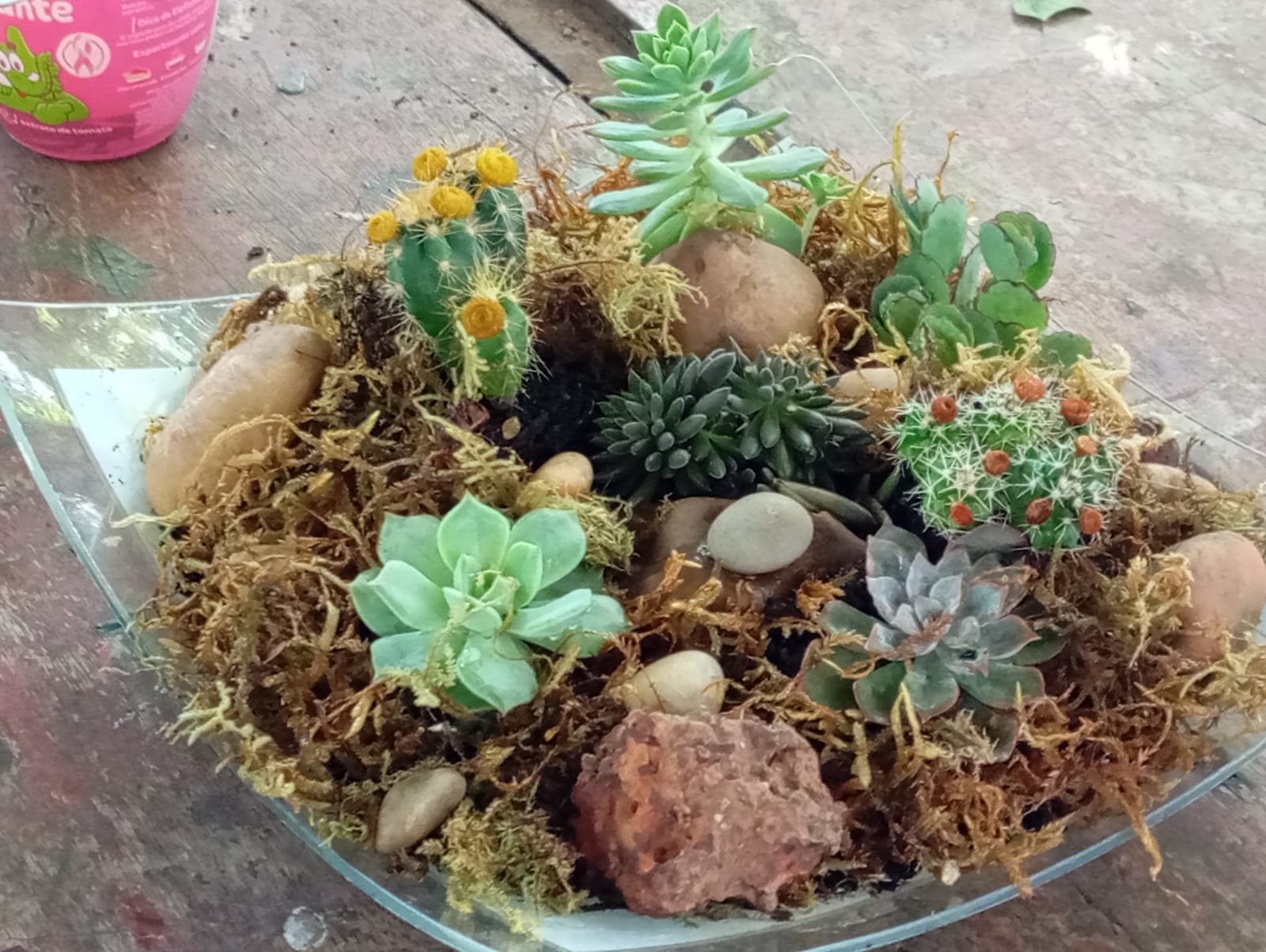 Também teve a oficina de terrário, o contato com a terra e plantas, para ensinar a montagem do trabalho em casa. Existem dois tipos de terrários, aberto e fechado e se não usar a técnica apropriada, a planta não sobrevive. “As camadas tem que ser bem drenadas”, explicou a professora Simone Raquel Silva, do Instituto Federal de Mato Grosso, responsável pela oficina.