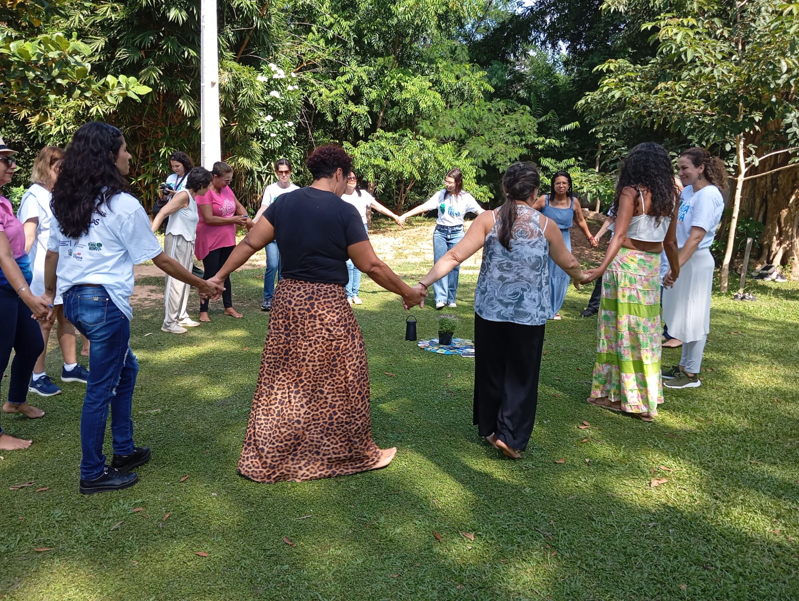 Na dança circular, uma das ações da programação, o movimento em círculo é liderado pela música com introdução da poesia e participação dos envolvidos.