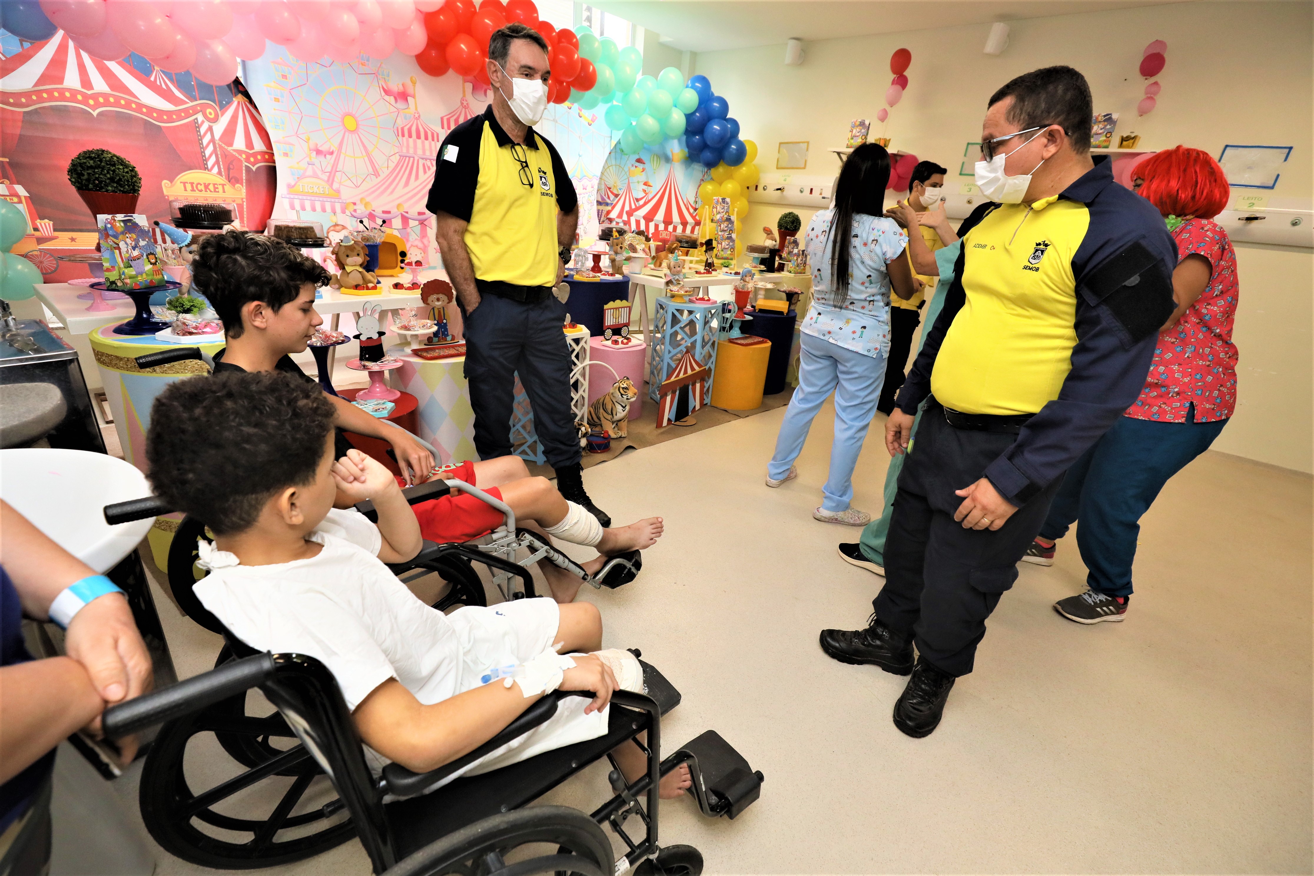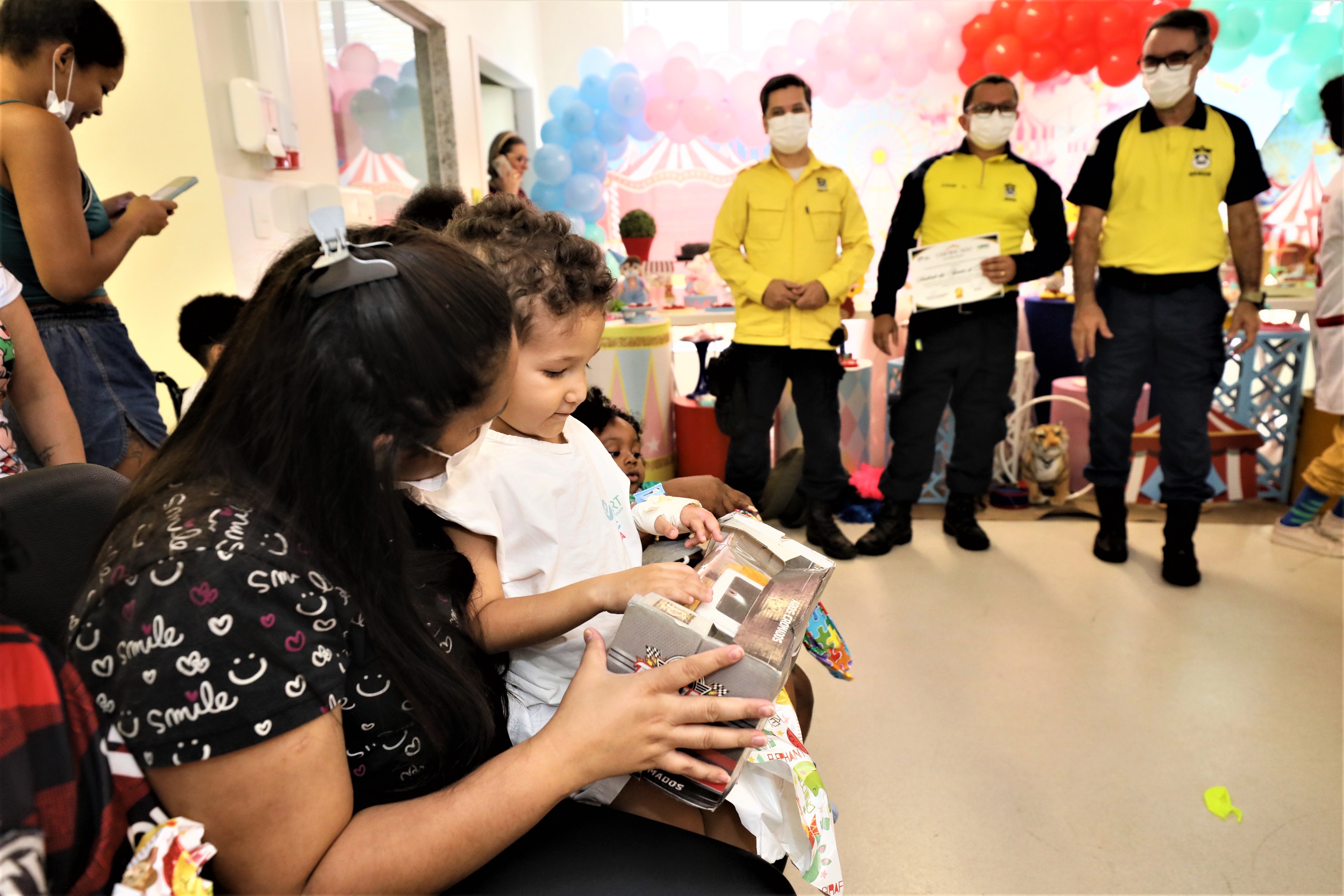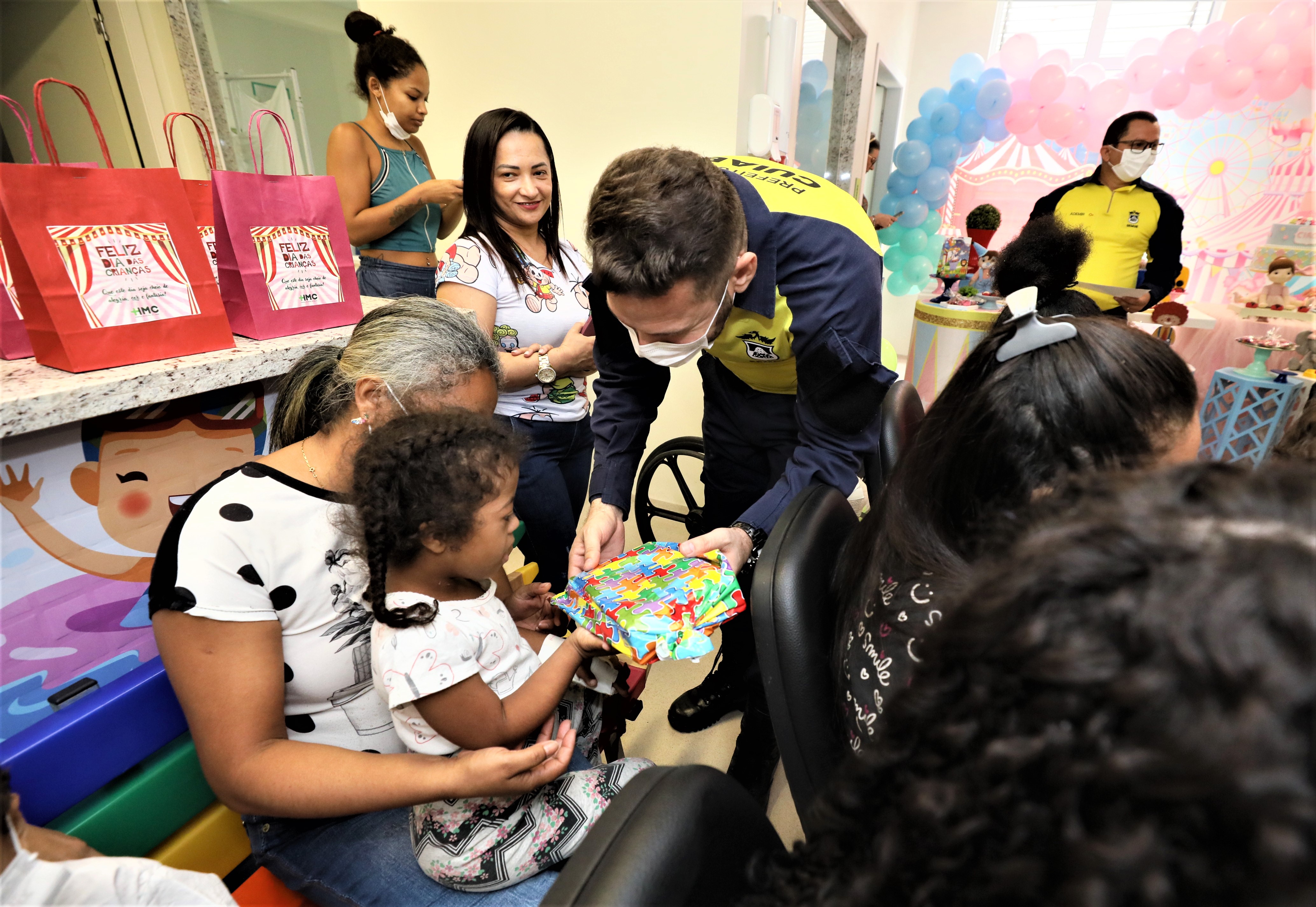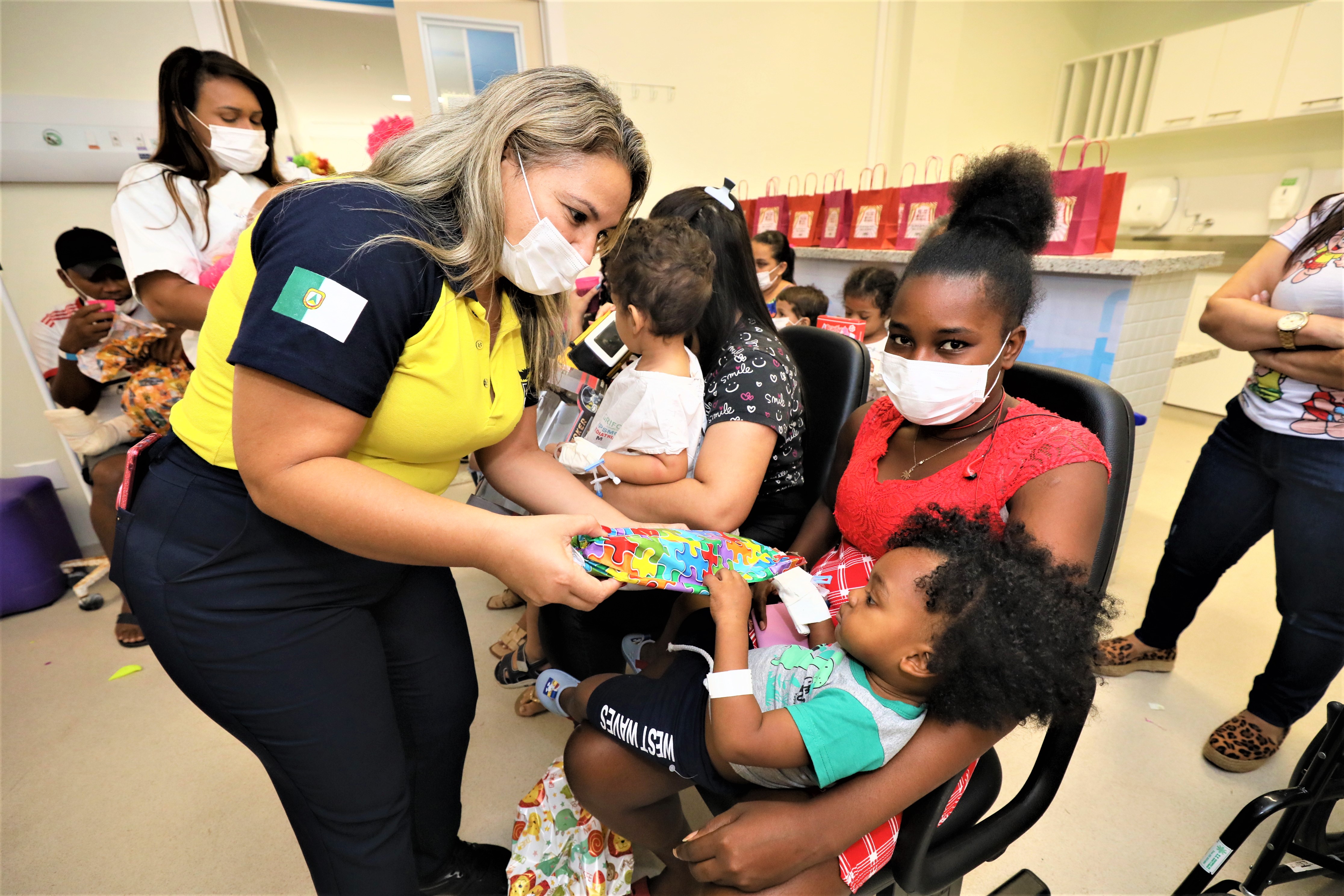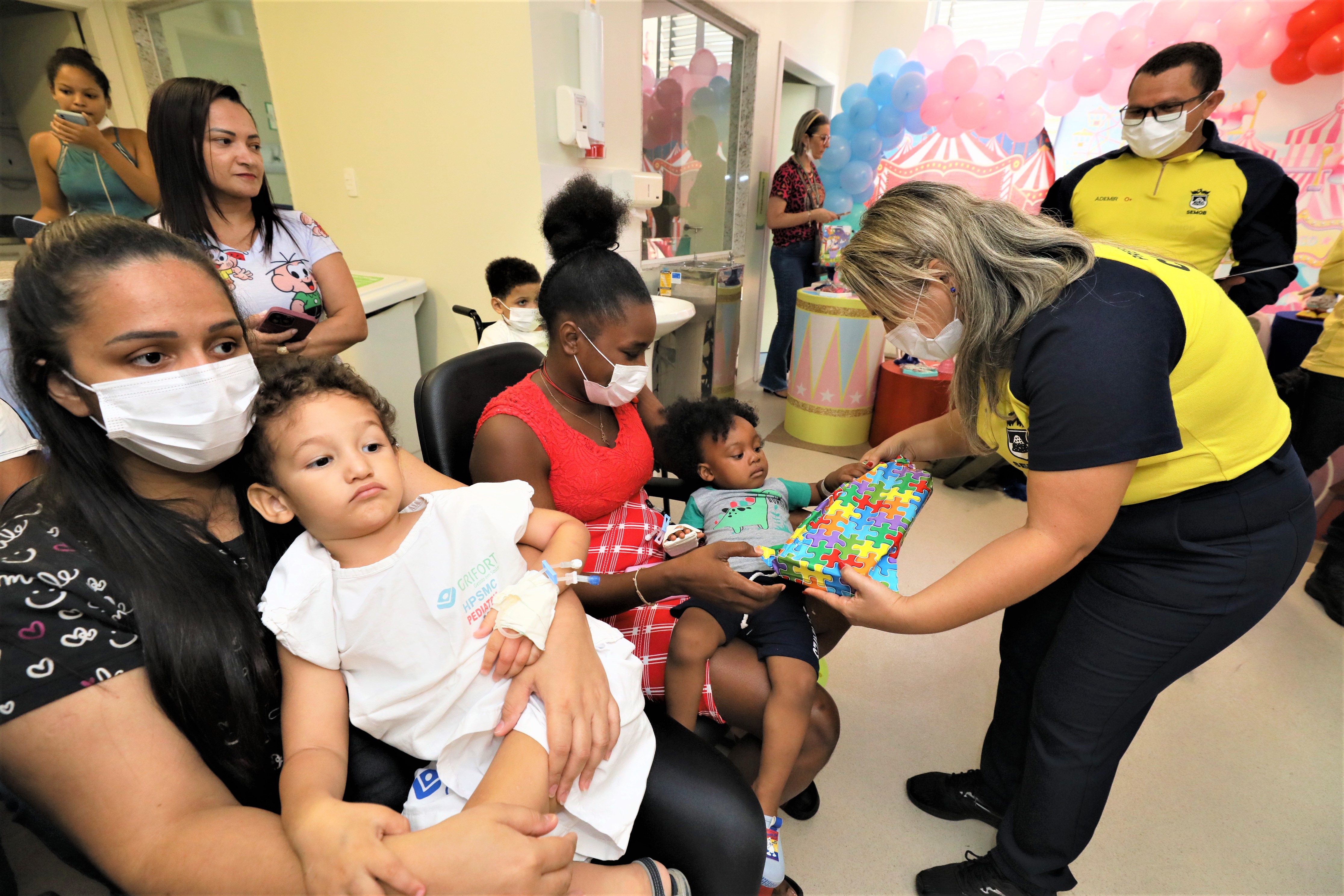 “Iremos passar o dia 12 aqui no hospital. Então, esse agrado que minha filha está recebendo está sendo muito importante para melhorar o ambiente”, agradeceu a mãe. A gerente da ala infantil do HMC, Rosenil de França Magalhães, fez questão de enaltecer a parceria da Semob, que sempre está presente nas ocasiões especiais. Não só as crianças, como toda equipe está muito satisfeita com a presença deles. “Temos o prazer de recebe-los em nossa unidade. Sempre que eles se fazem presentes, a rotina das crianças que estão internadas fica bem diferente. O nosso sentimento é de gratidão. Que essa parceria permaneça por muito tempo”, declarou Rosenil. A manhã das crianças e adolescentes foi marcada por brincadeiras, recheadas de muito amor, carinho e alegria.