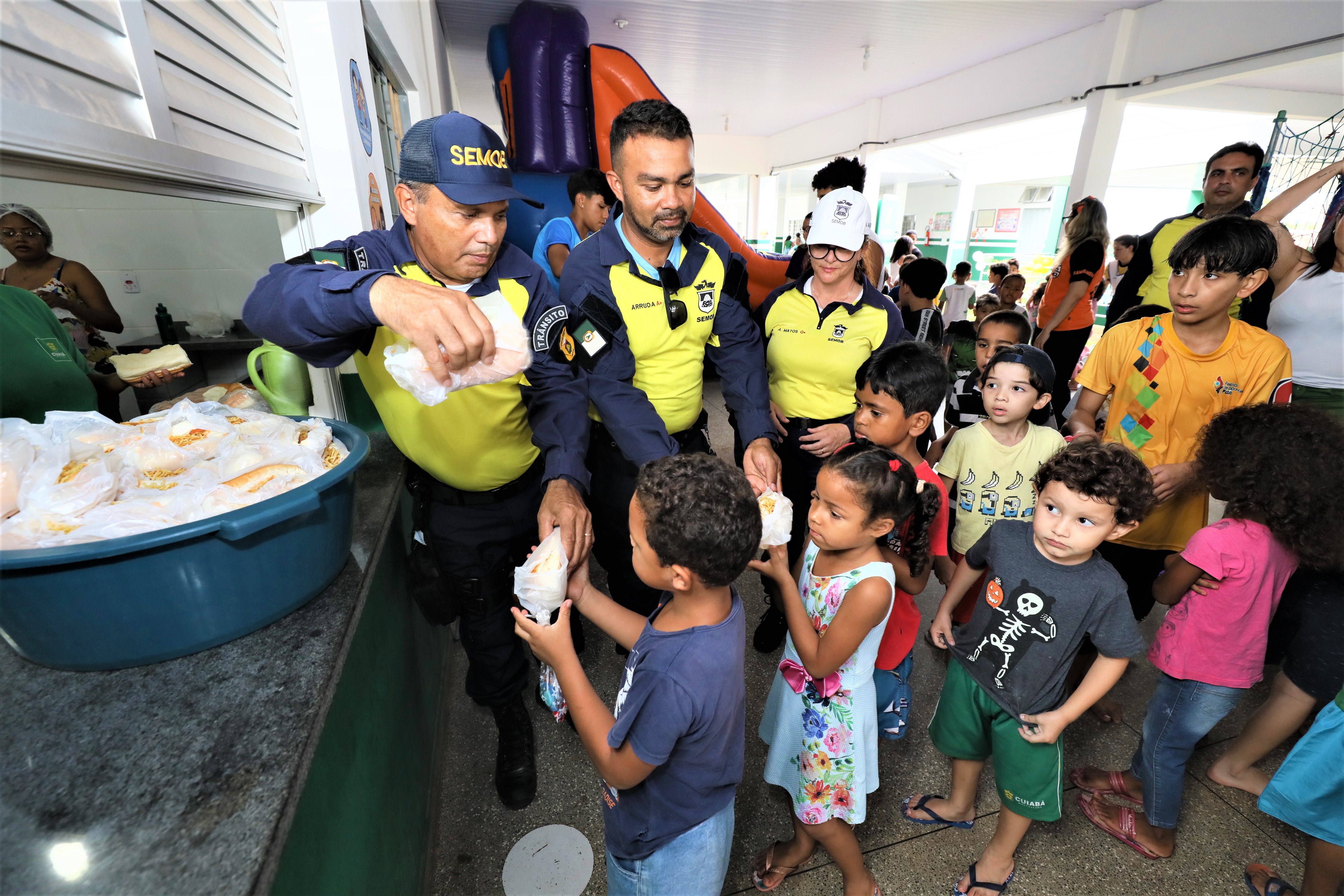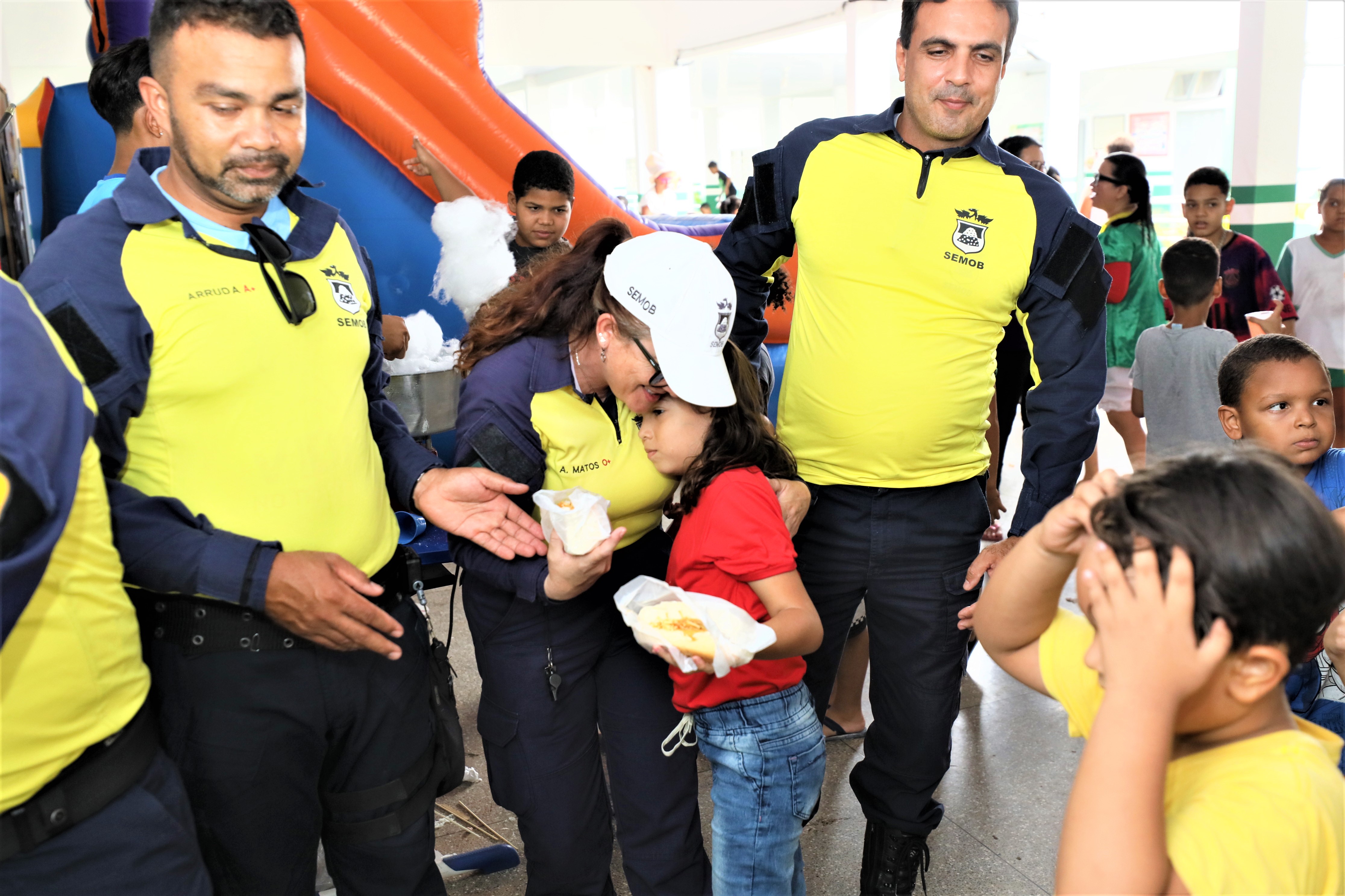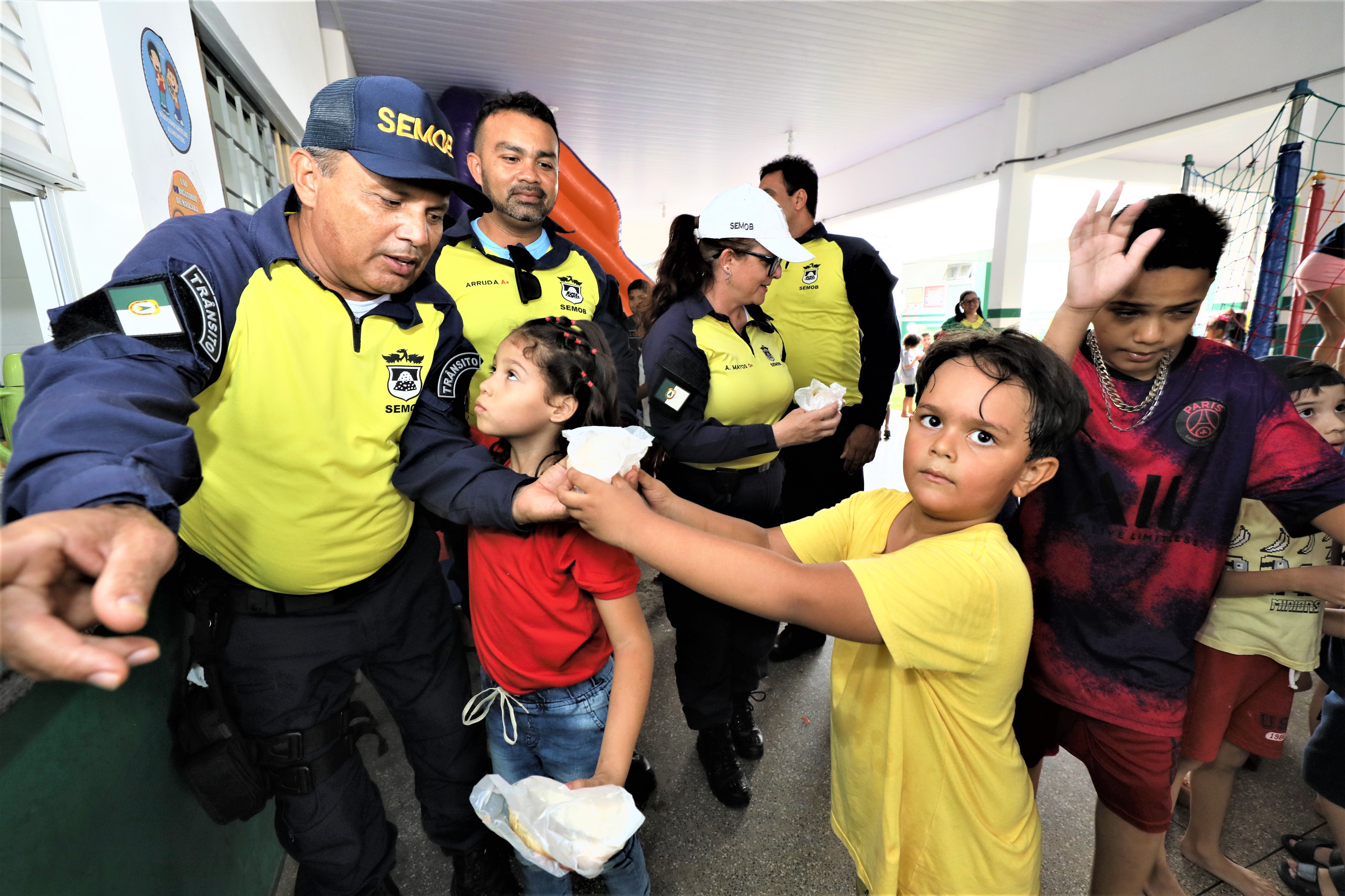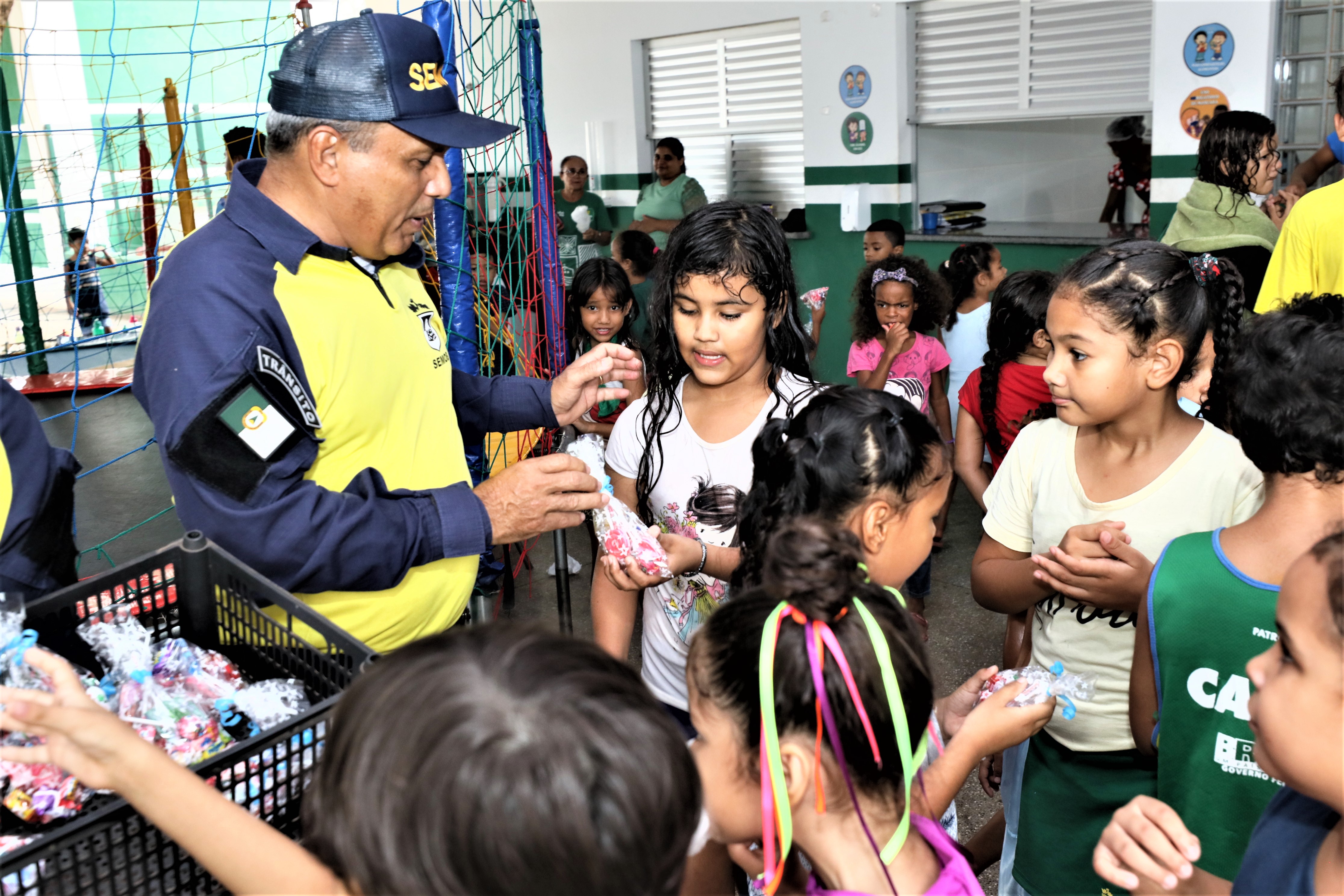 Os agentes de trânsito da Secretaria de Mobilidade Urbana (Semob), da Prefeitura de Cuiabá, realizaram na manhã de terça-feira (11), a entrega de brinquedos para crianças e adolescentes internados no Hospital Municipal de Cuiabá Dr. Leony Palma de Carvalho (HMC) e também para alunos da Escola Municipal Irmã Maria Betty, no bairro Novo Mato Grosso. Os atos de solidariedade integram a semana de atividades comemorativas ao 'Dia das Crianças', celebrado nesta quarta-feira, 12 de outubro. Bolas, bonecas, carrinhos e fones de ouvido foram distribuídos.