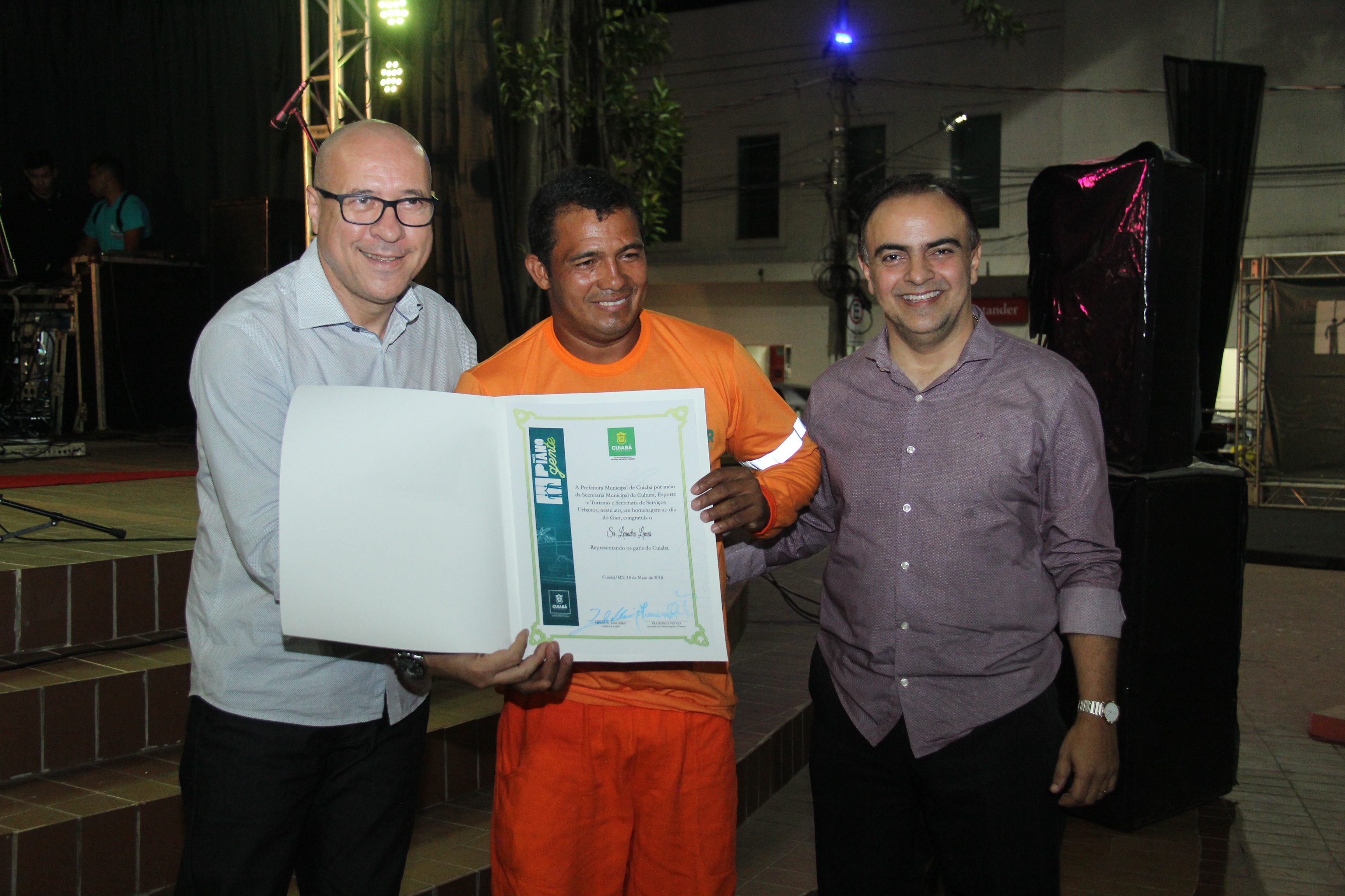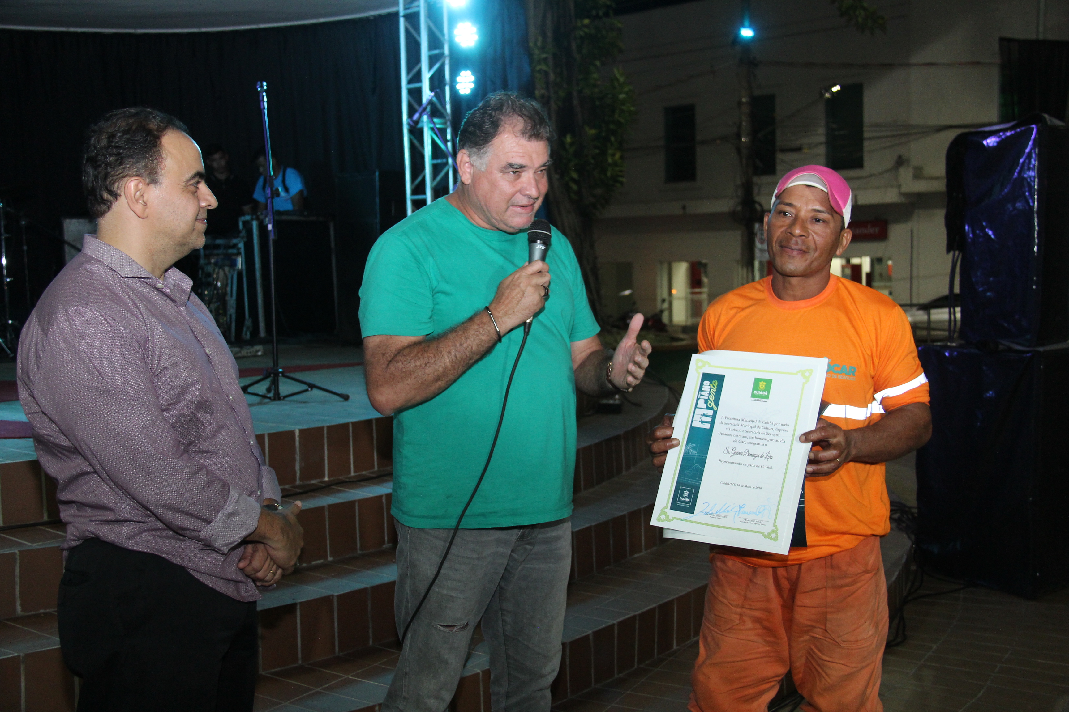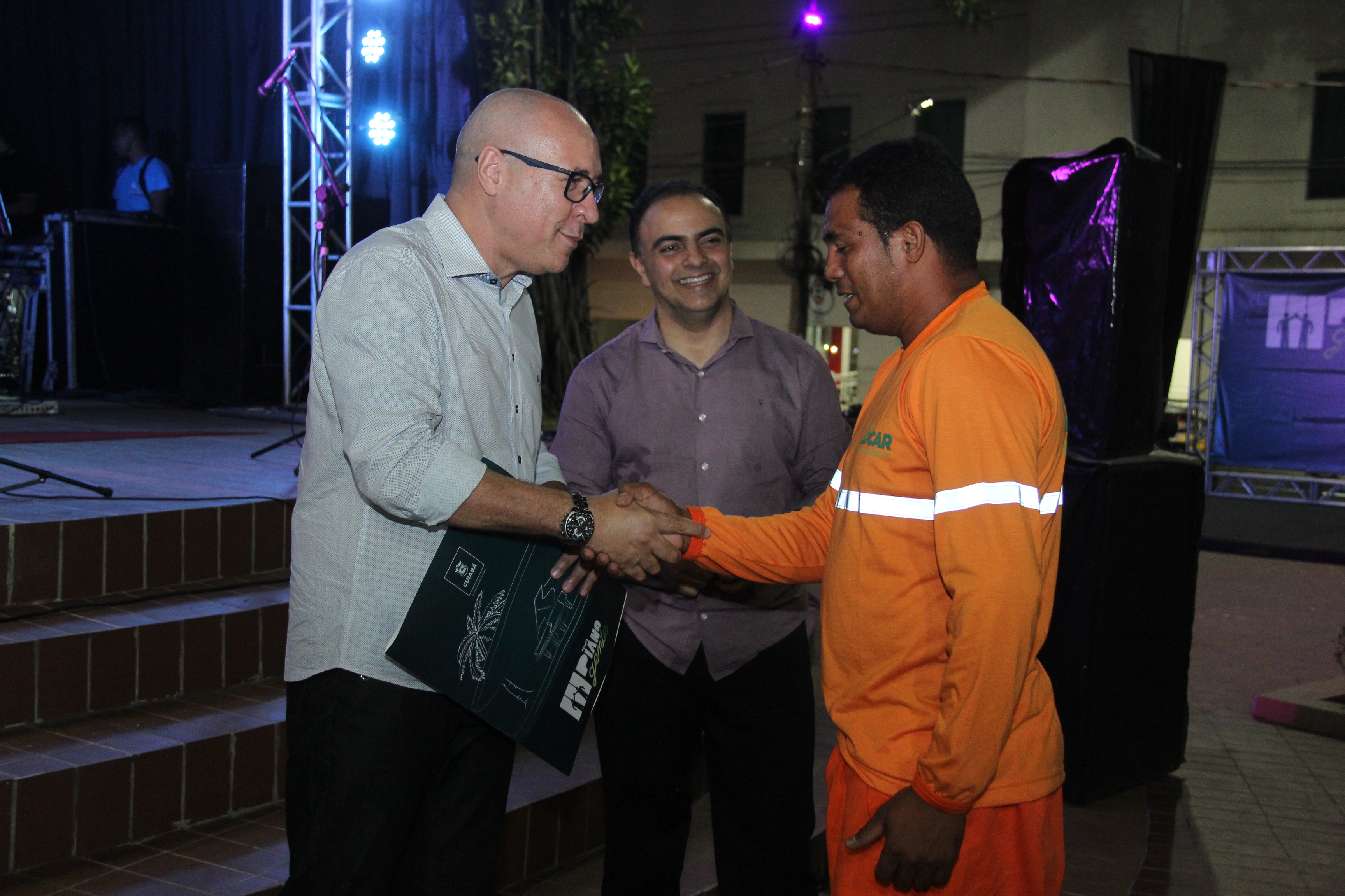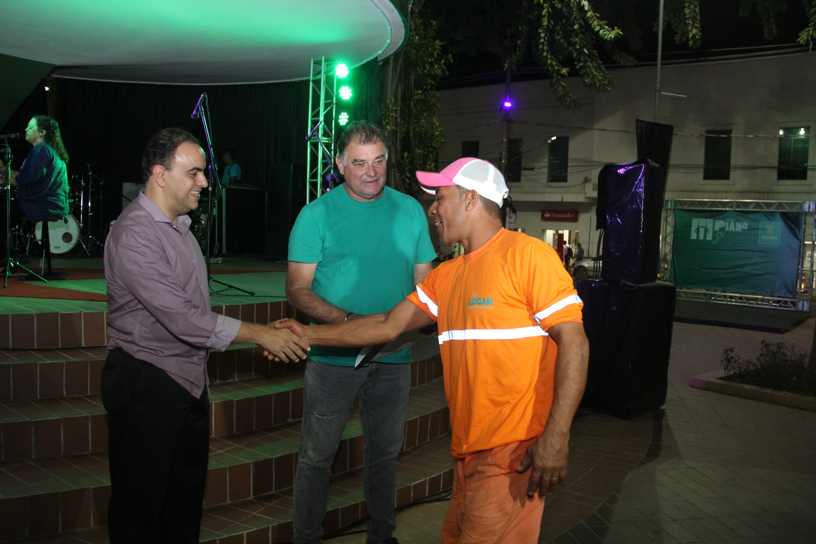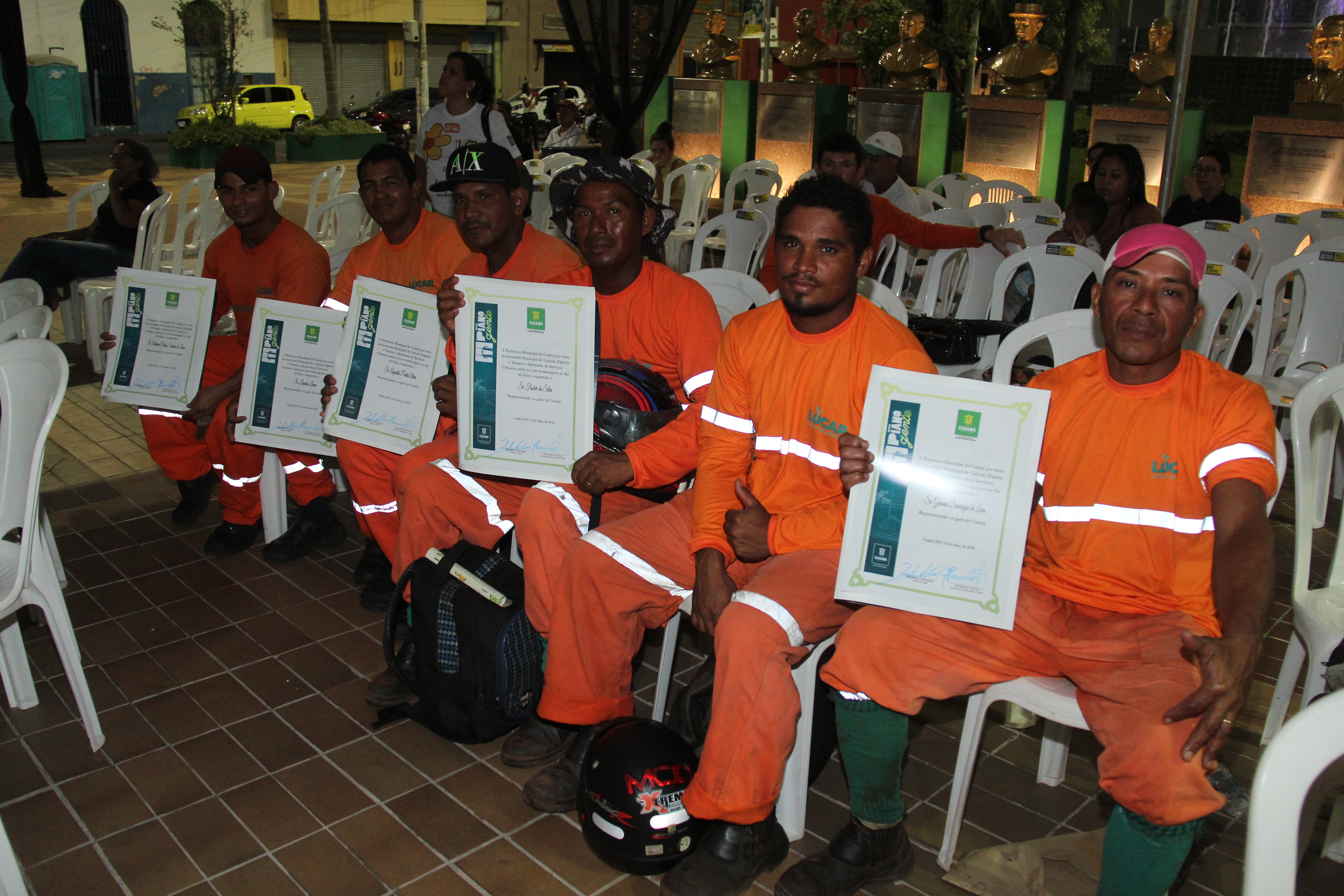 Dez agentes de limpeza pública foram homenageados na noite de sexta-feira (18) pela Prefeitura de Cuiabá, em lembrança ao “Dia do Gari”, comemorado na última quarta-feira (16). No ato, que ocorreu na Praça Alencastro, além de receberem um certificado de congratulação por toda dedicação na execução da coleta diária de lixo em toda a cidade, os trabalhadores também tiveram a 2ª edição do projeto “Piano Gente” totalmente dedicada para a classe que desempenha um fundamental papel dentro do planejamento de desenvolvimento sustentável e melhoria na qualidade de vida do cidadão cuiabano.