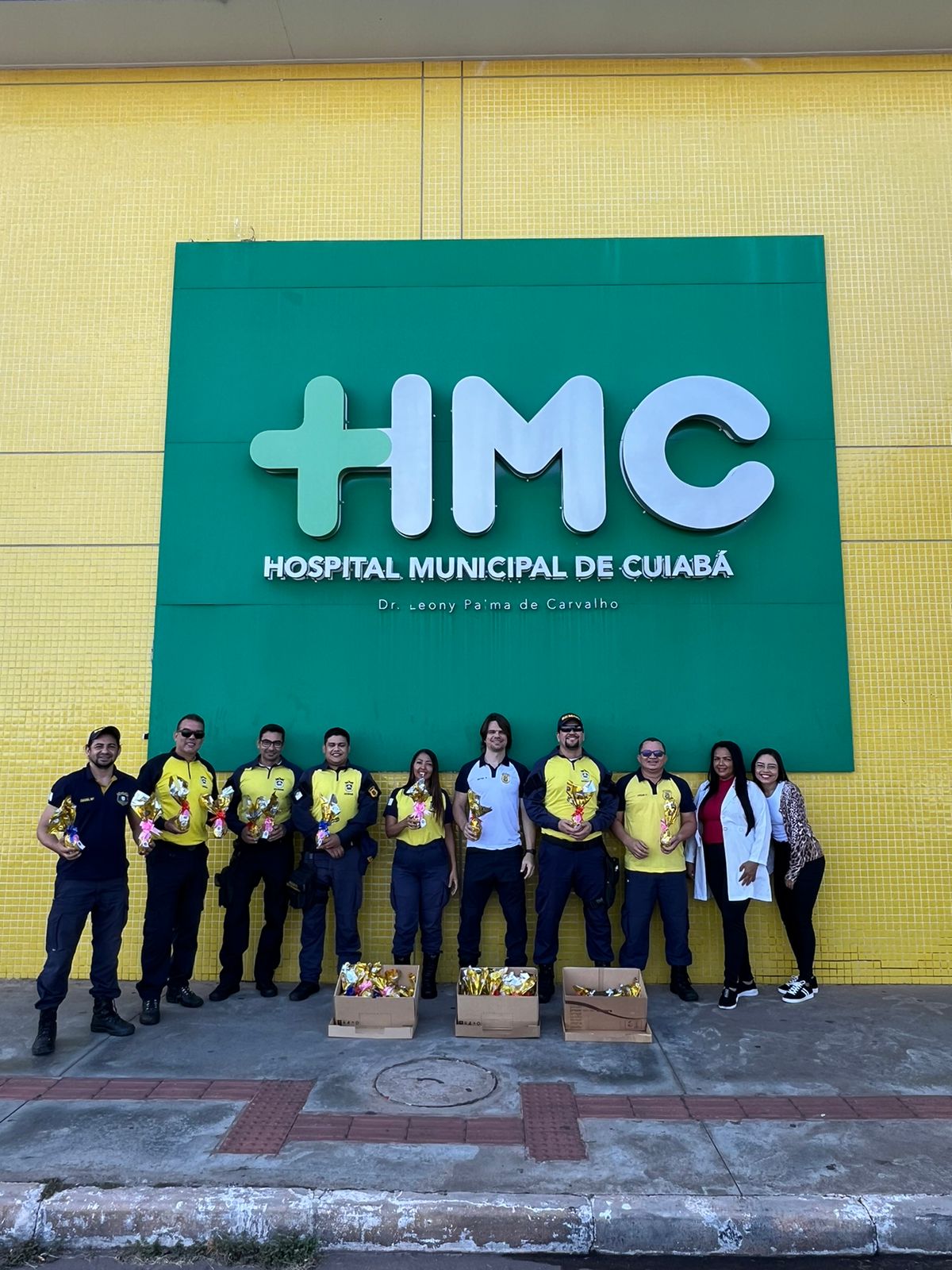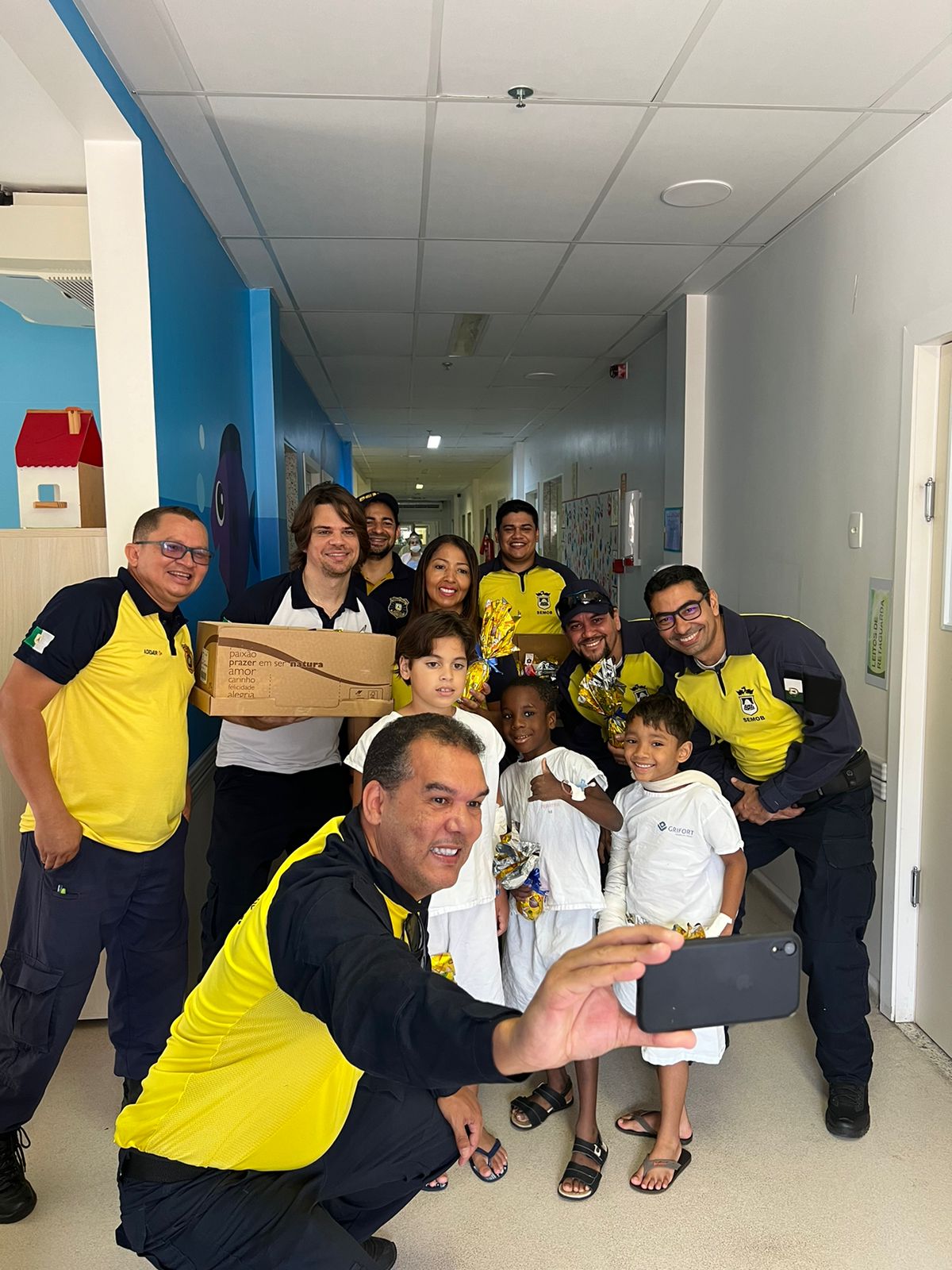 Agentes de trânsito fazem a alegria de crianças internadas no HMC com entrega de ovos de chocolate