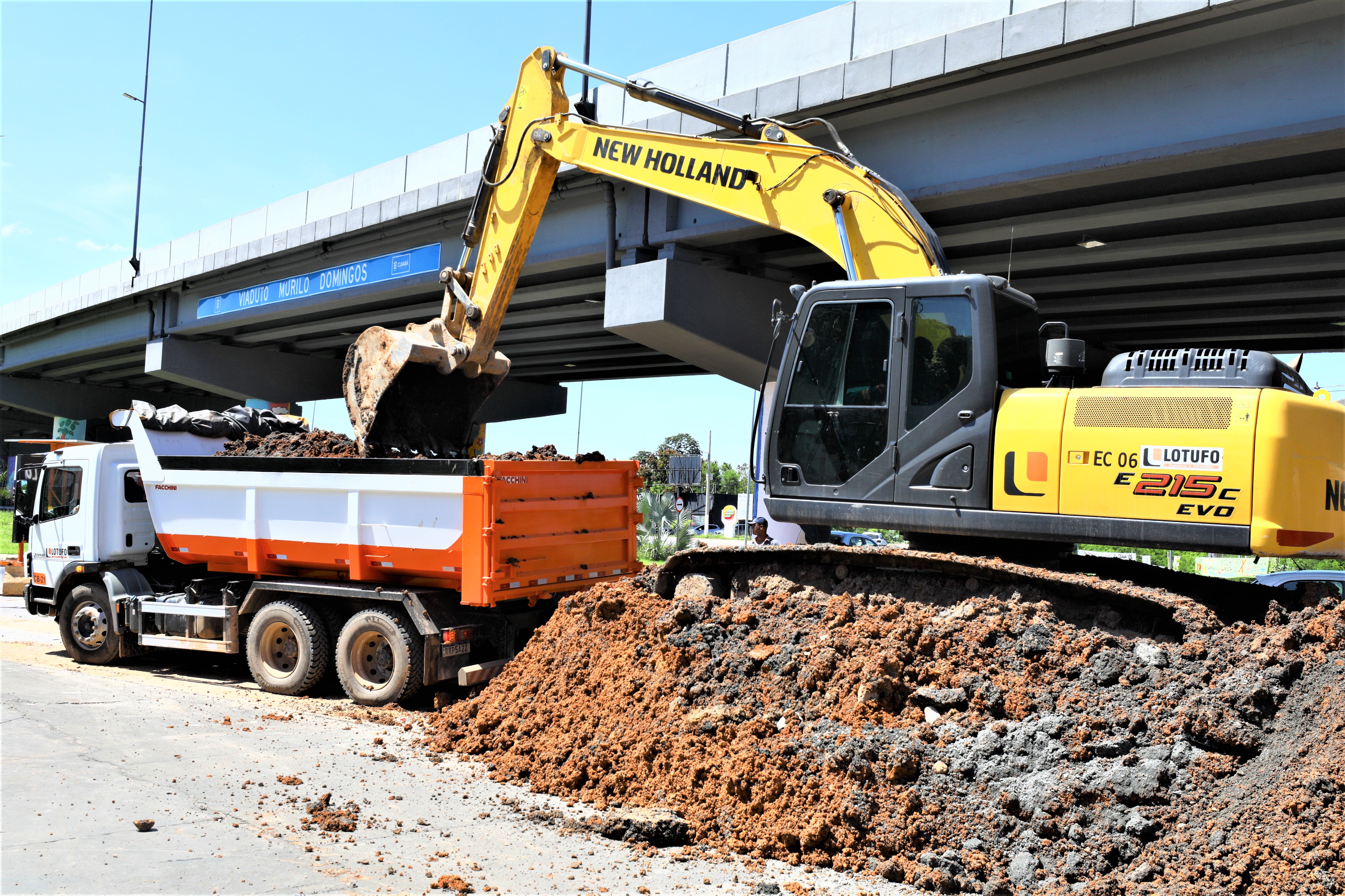 As equipes técnicas executam ações as atividades de escavação para constituição da base do solo. Por fim, será realizado o aterramento e, na sequência, a composição asfáltica e a liberação da via.