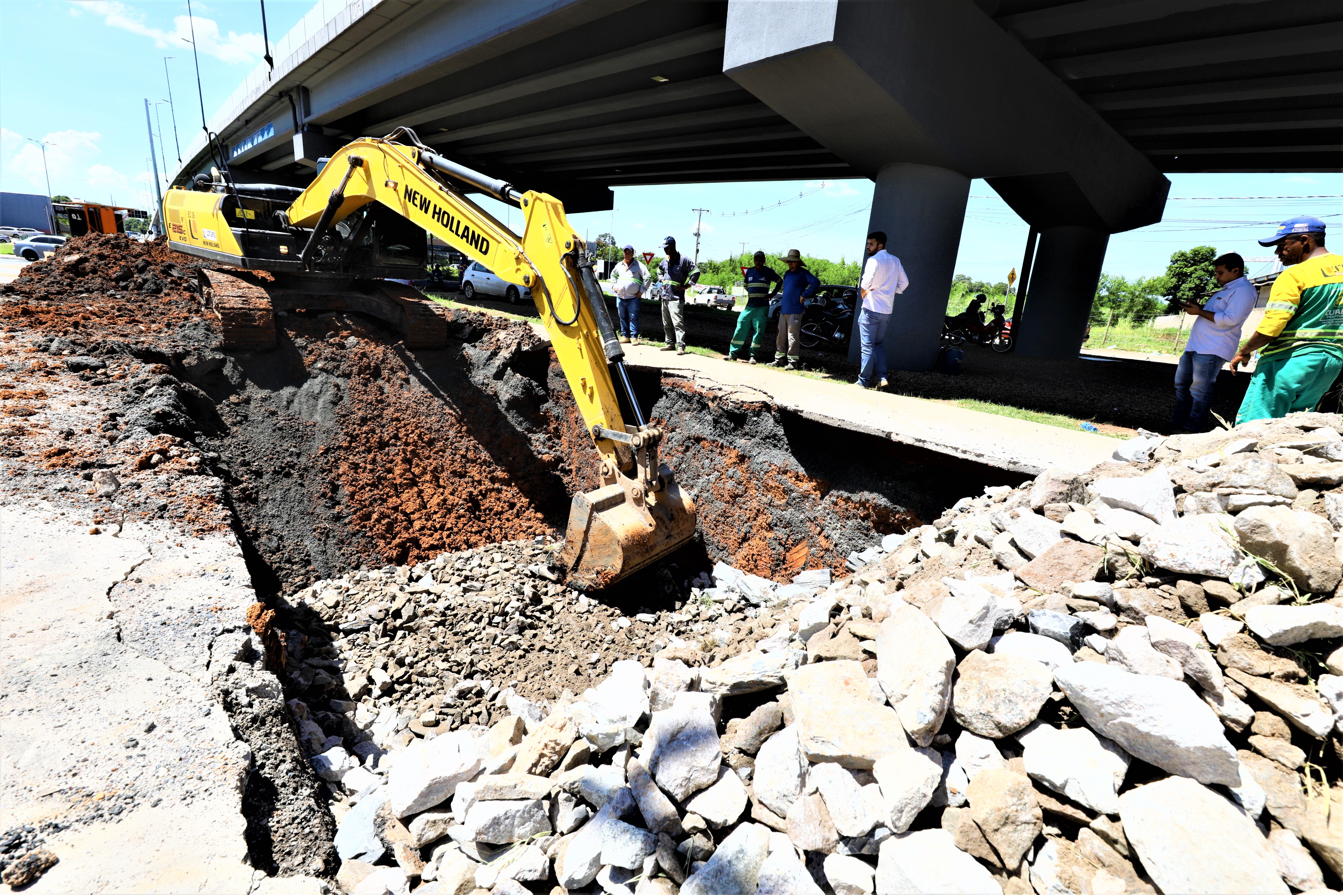 Alça de acesso à Avenida Beira Rio é bloqueada para requalificação da rede de drenagem; Obra será concluída em tempo célere