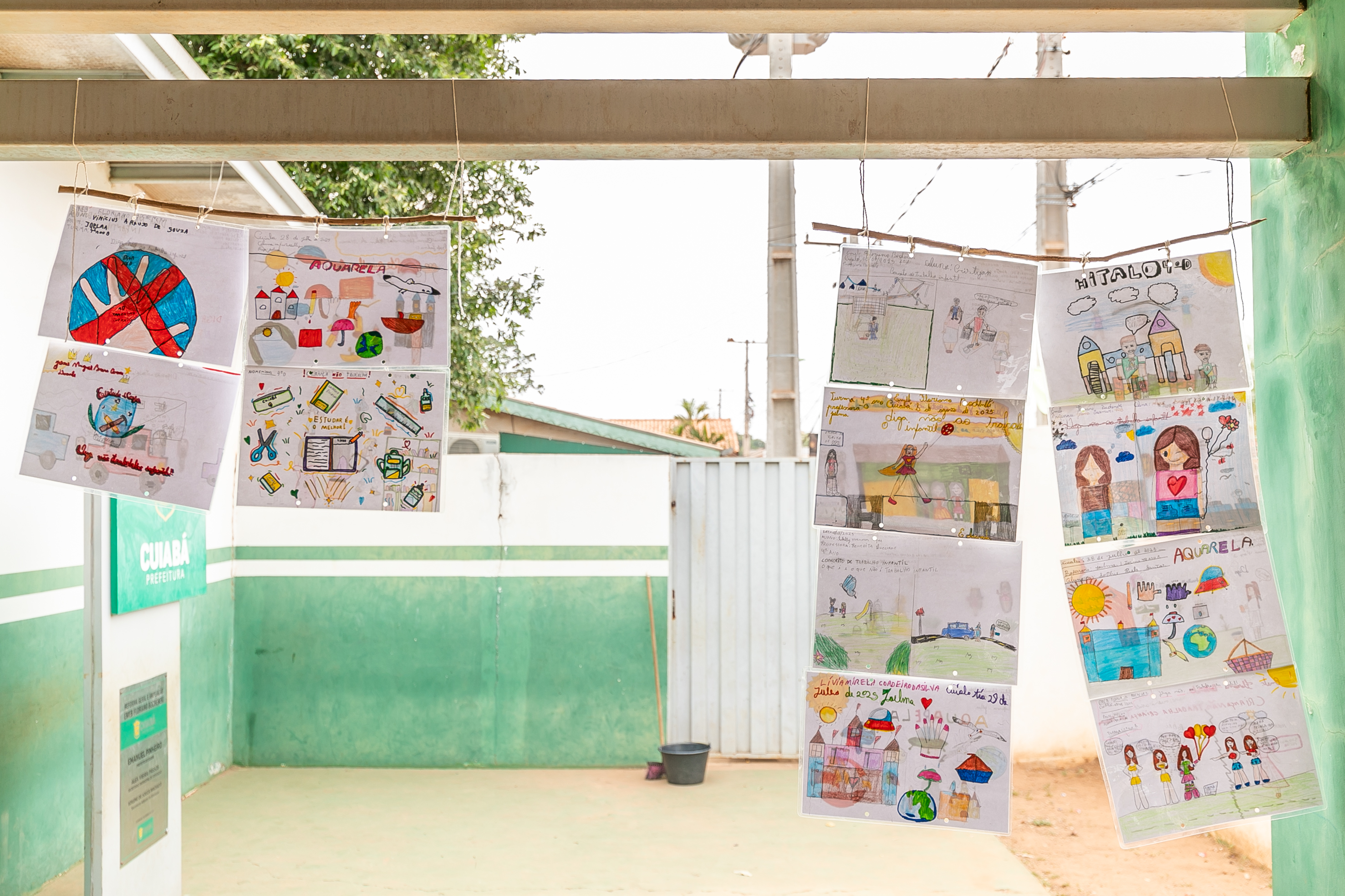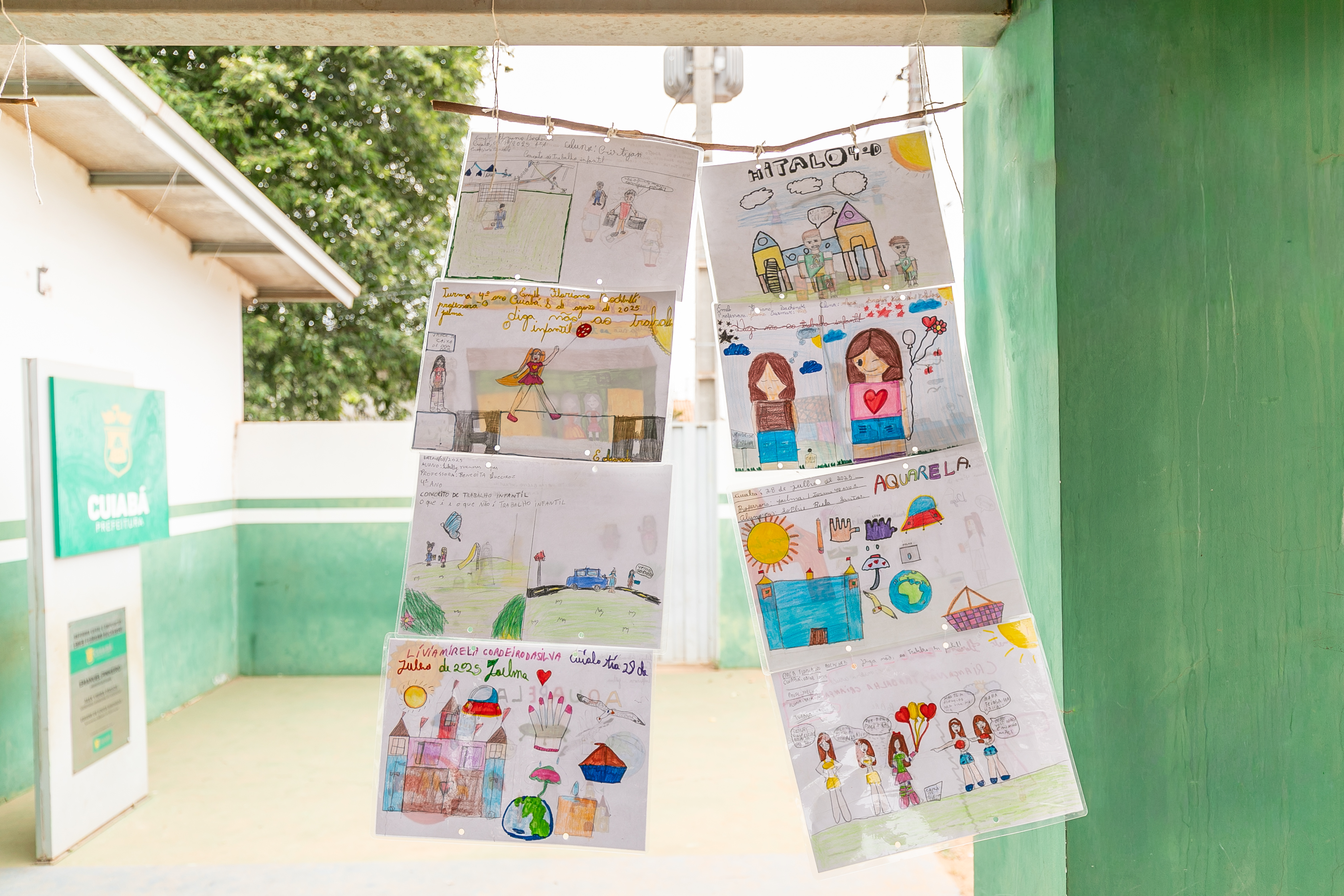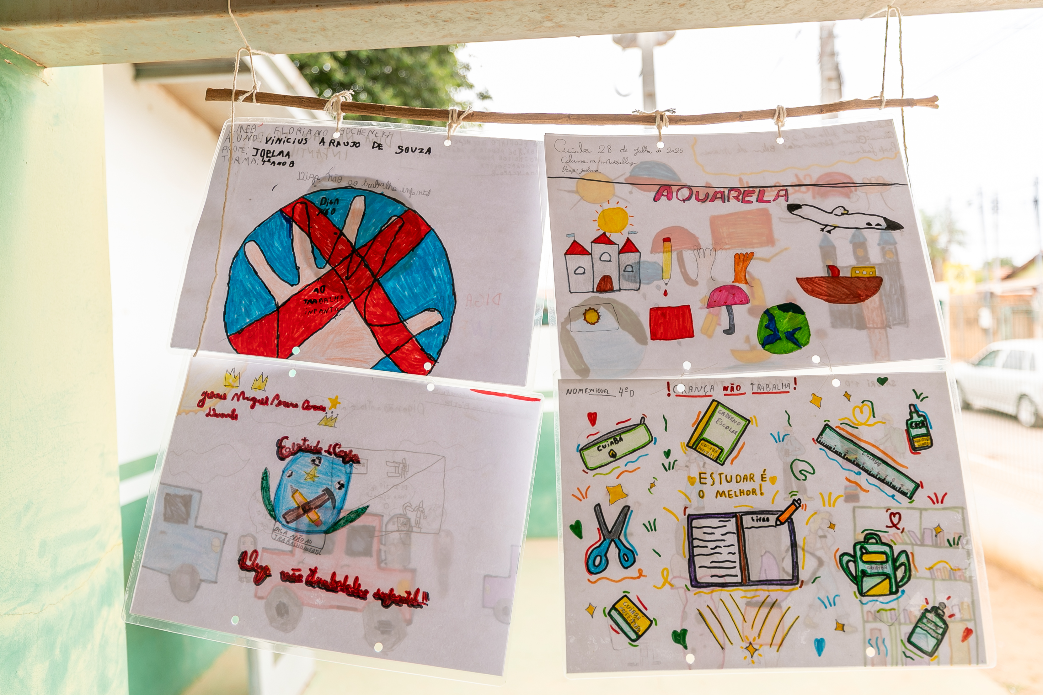 Quem circula na Escola Municipal Floriano Bocheneki, logo na entrada principal, se depara com desenhos de crianças de 7 a 9 anos. Os desenhos produzidos nas aulas de educação artística remetem ao direito das crianças de terem acesso à família, lazer, opções de estudo, assistência médica e ao conhecimento e amparo das leis.