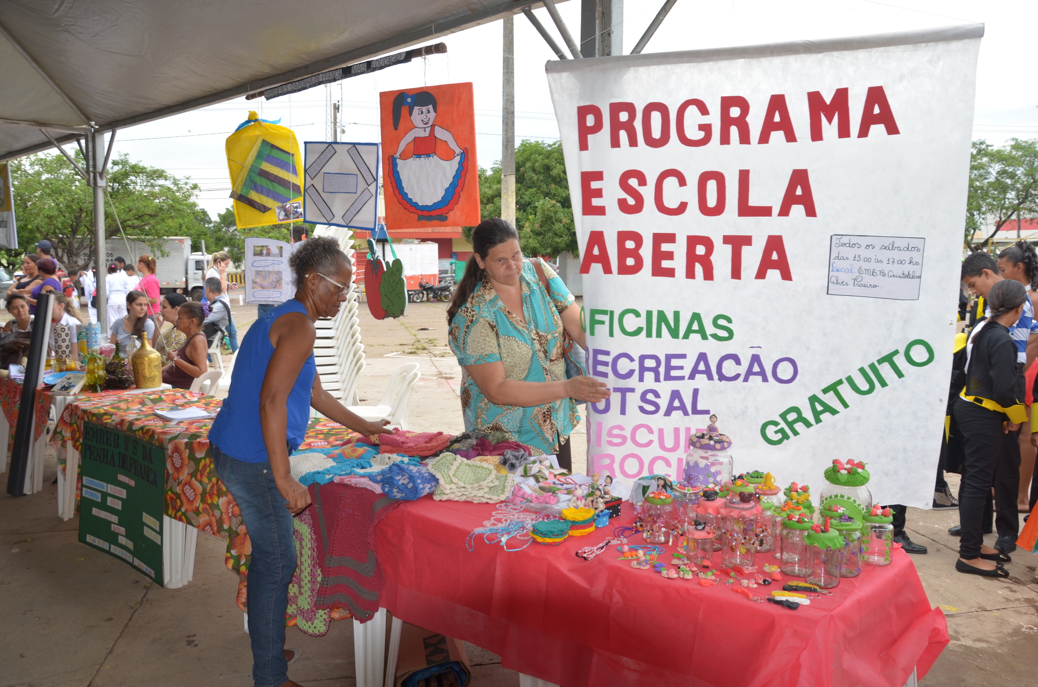 O evento também contou com exposição e comercialização de artesanatos, entre eles tapetes, biscuit, telas, crochê e bordados, feitos pelas escolas Senhorinha Alves, Ulisses Guimarães, Gracildes Mello, Dejani Ribeiro, Lenine Póvoas e Aristotelino Alves, por meio do Programa Escola Aberta.