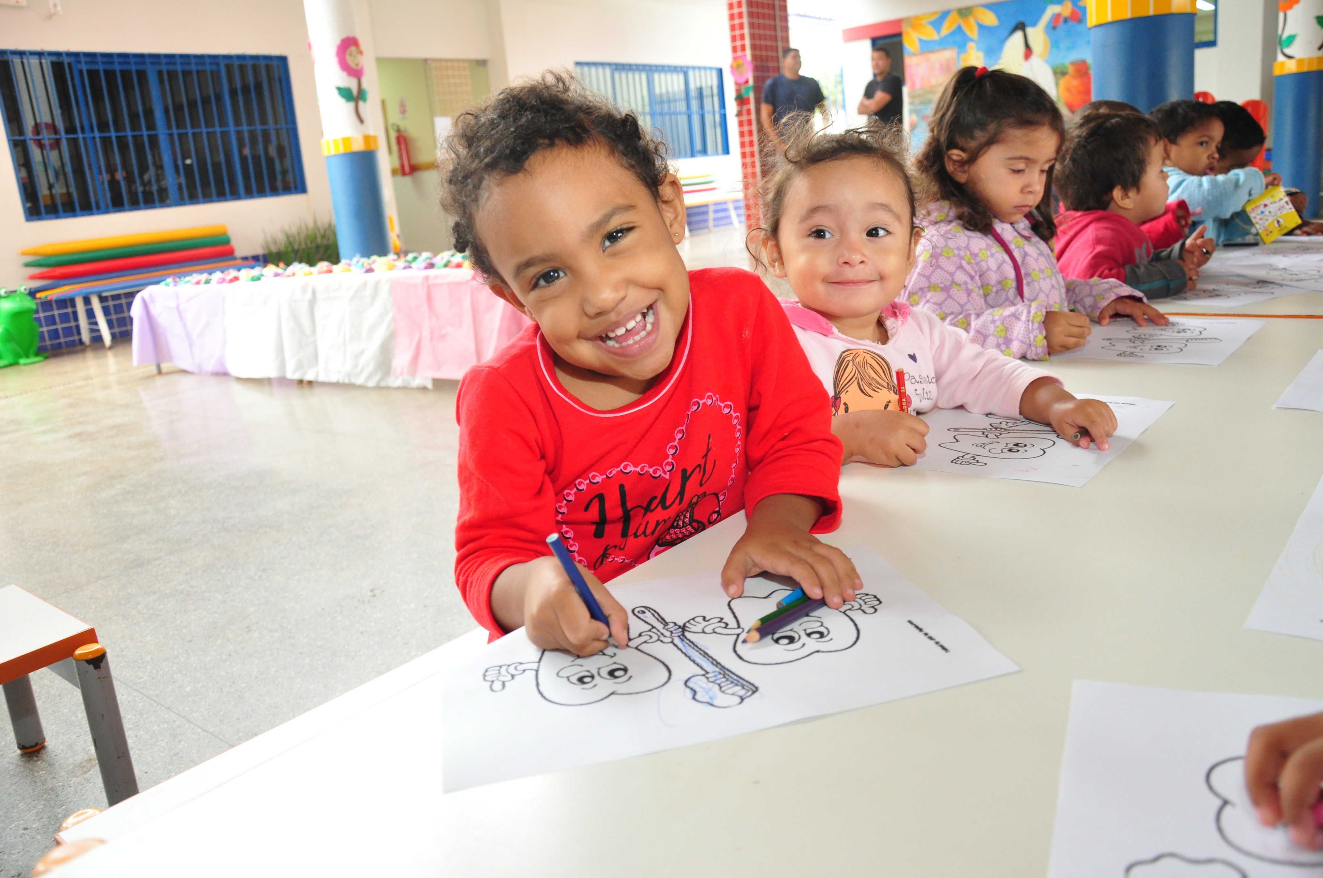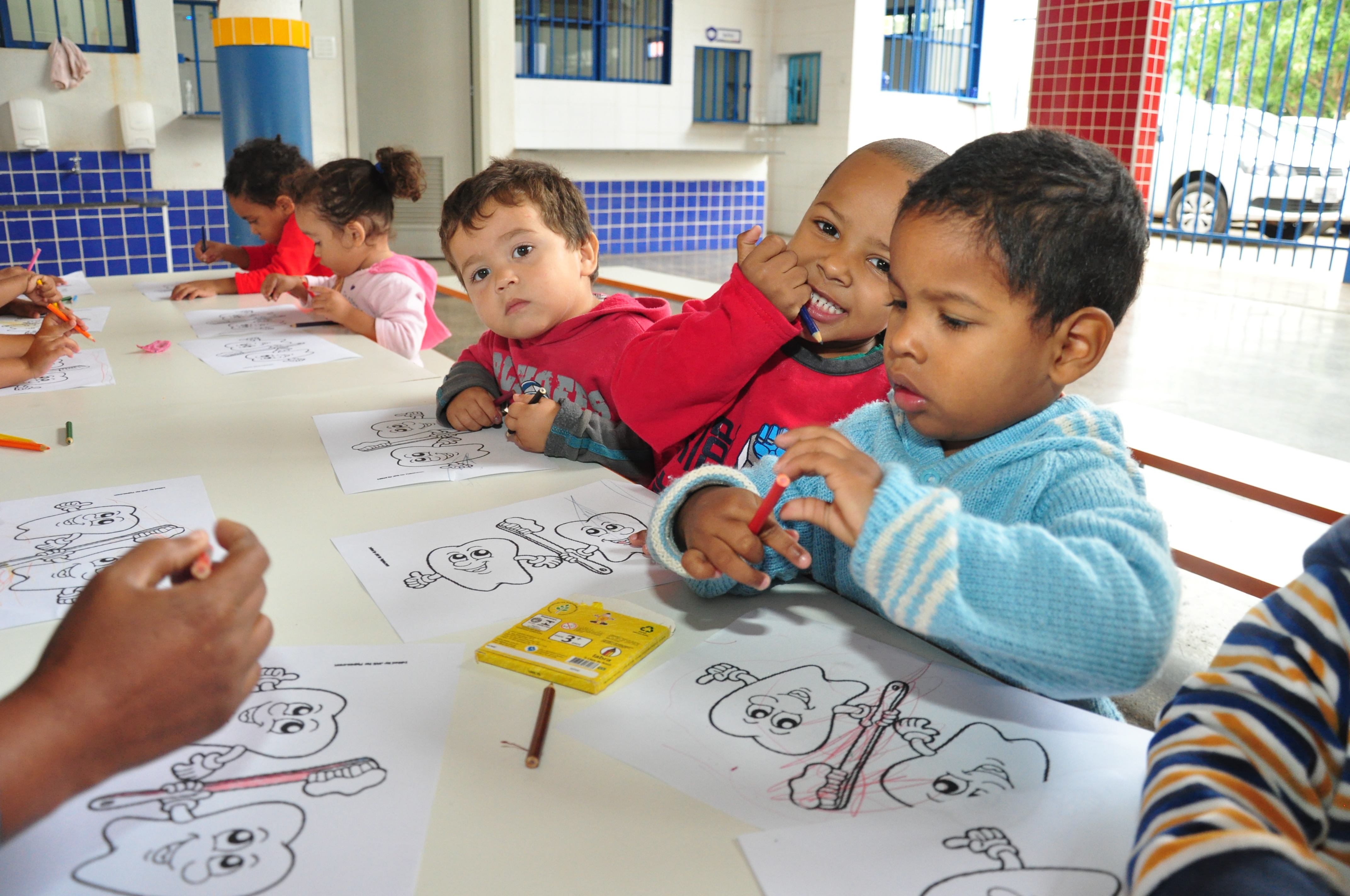 Os dentes ainda são de leite, mas não teve nada de “café com leite” na brincadeira realizada hoje (21) dos alunos do Centro Municipal de Educação Infantil (CMEI) Névio Lotufo. Apesar da pouquíssima idade – de 4 meses a 5 anos -, ali eles aprendem cedo sobre a importância da boa escovação e dos cuidados com a saúde da boca, por conta do trabalho das equipes do Programa de Saúde da Família (PSF) do bairro CPA I.