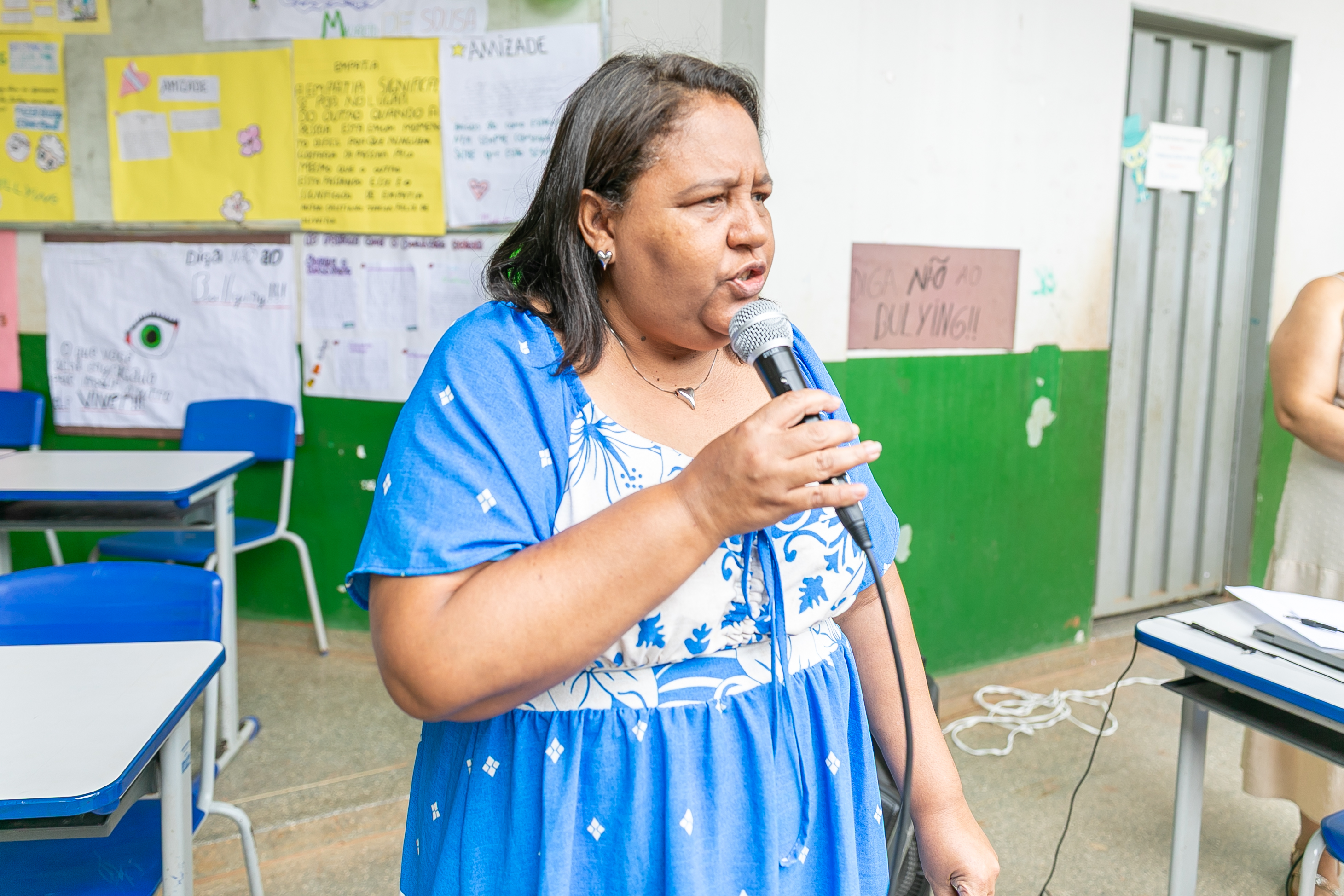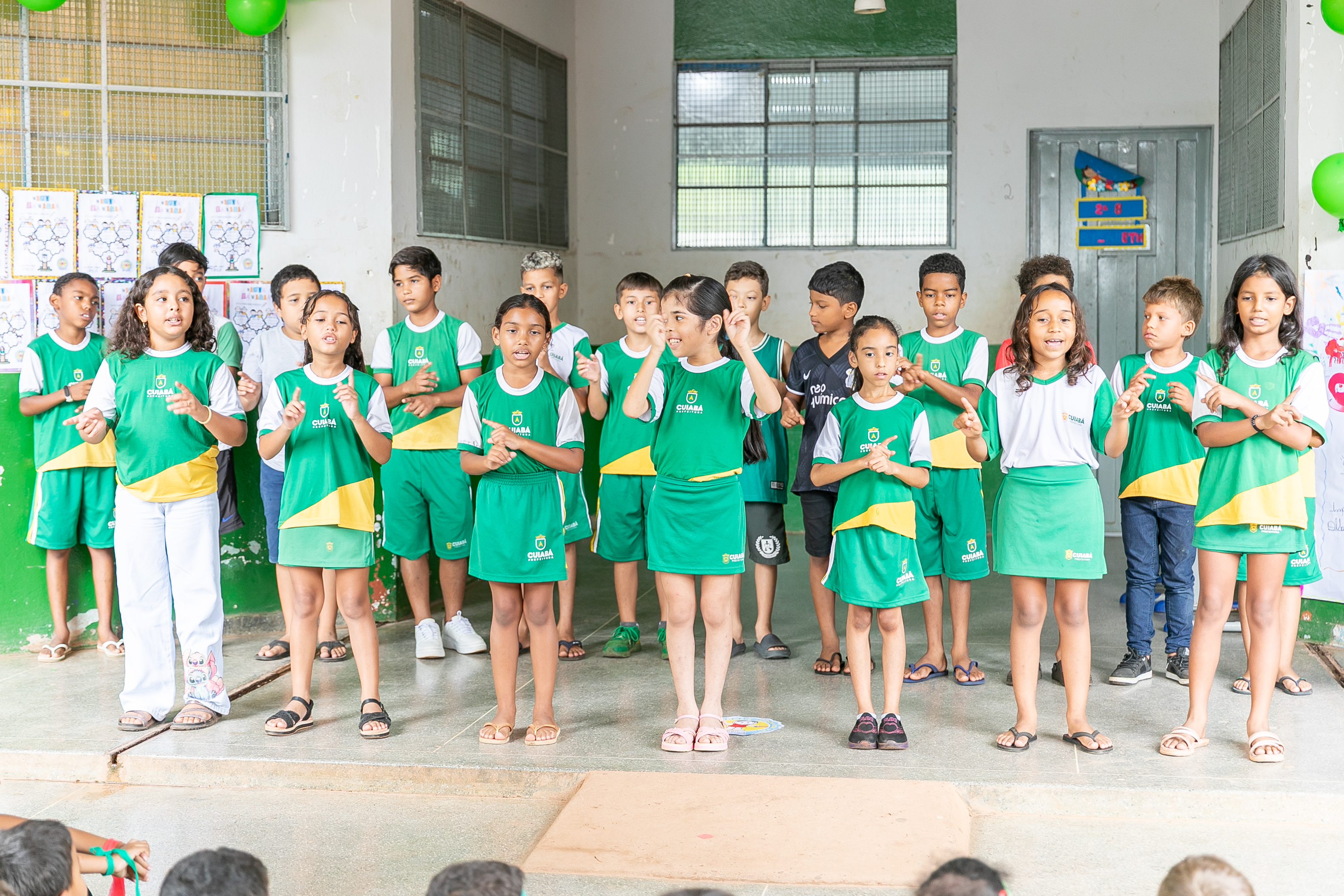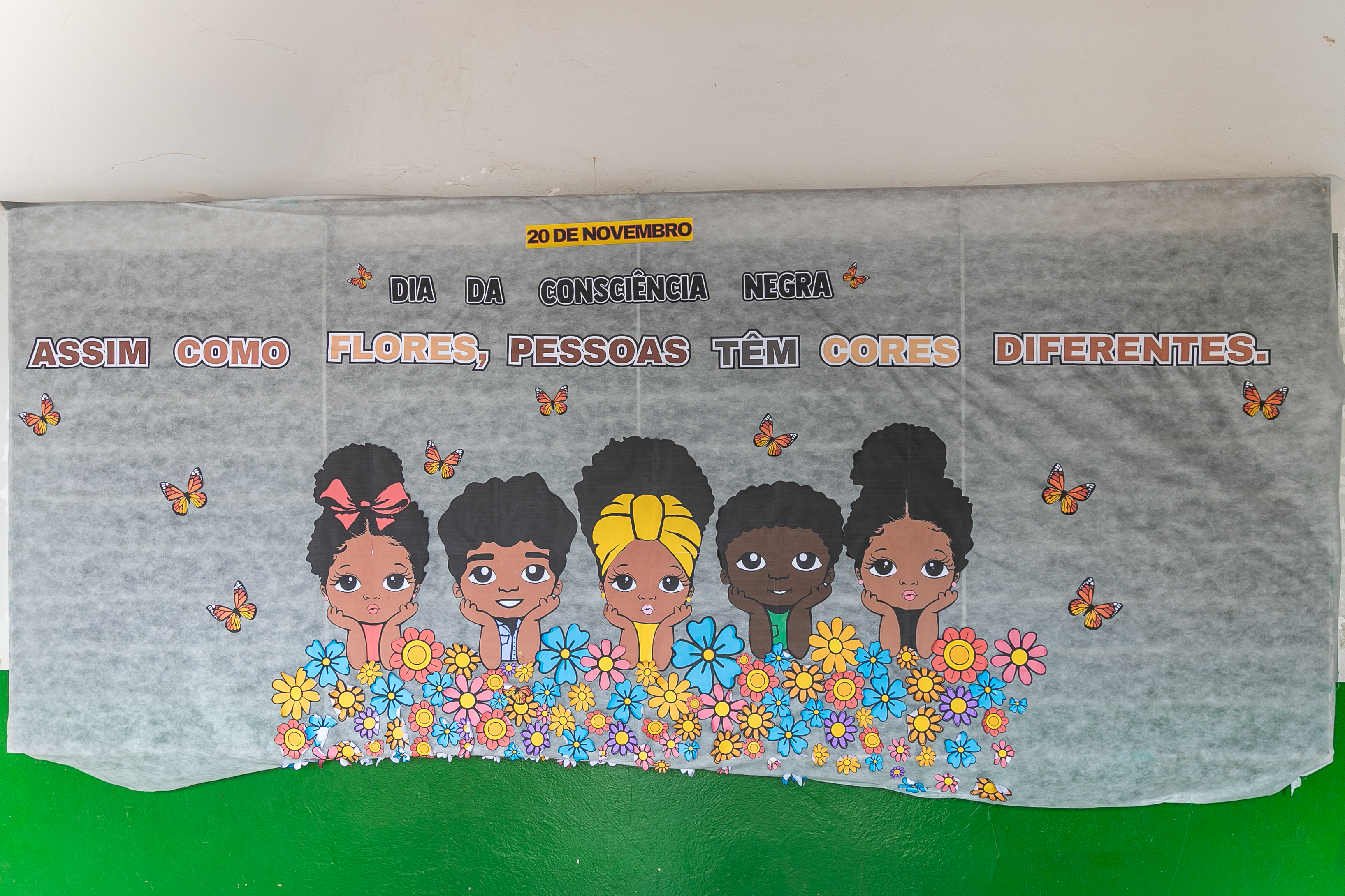 Os estudantes também fizeram apresentações de músicas e peças teatrais abordando o respeito e amor ao próximo. Nas paredes do pátio escolar, havia decoração com cartolinas exibindo desenhos produzidos pelos estudantes de combate ao bullyng.