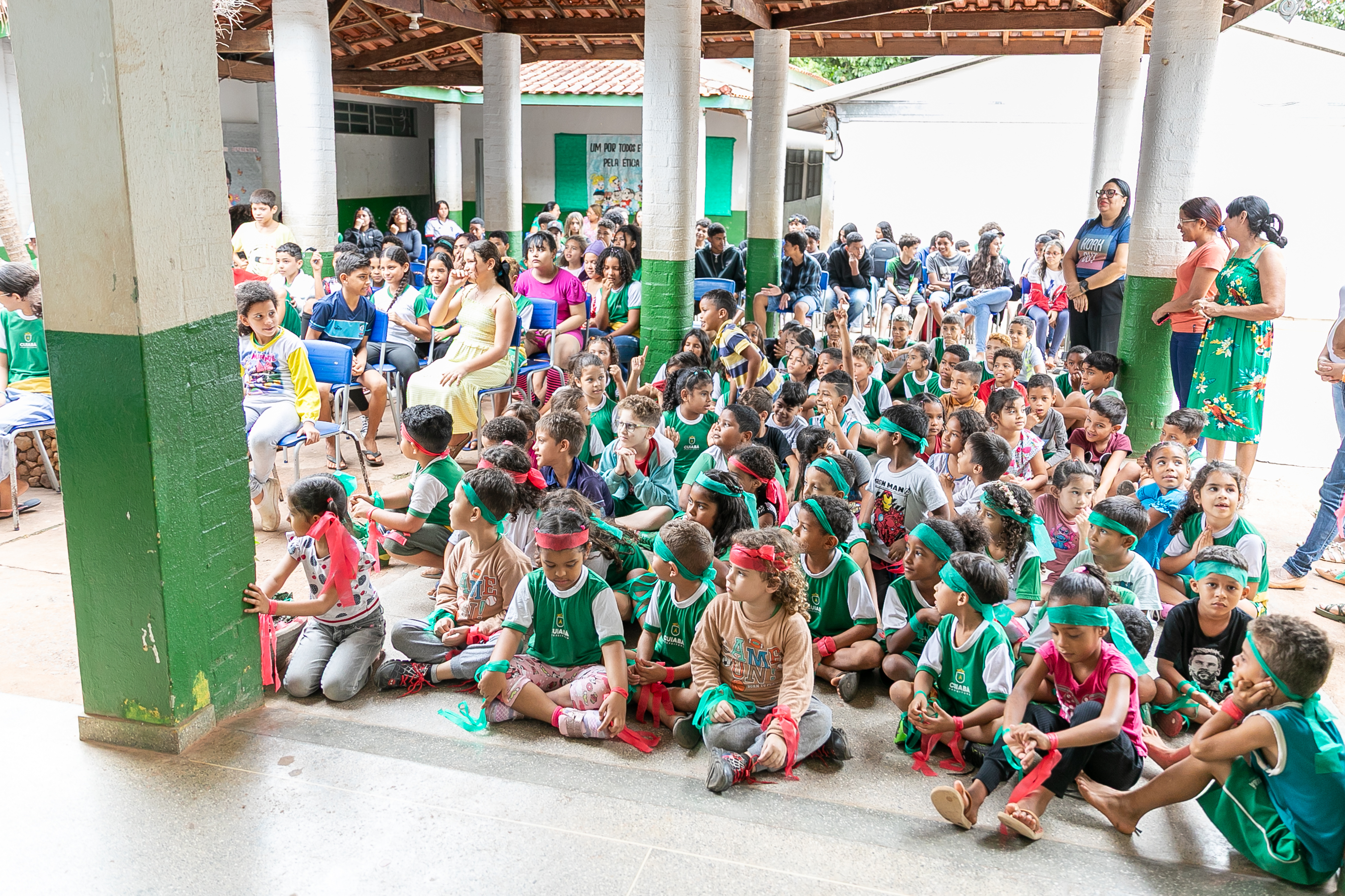 Mais de 100 crianças matriculadas na escola Nova Esperança, localizada na zona rural de Cuiabá, participaram nesta sexta-feira (14) do encerramento do curso “Um por Todos, Todos por Um! Pela ética e cidadania”. A solenidade ocorreu em dois horários: 8h e 13h. No total, participam 10 escolas de Cuiabá.