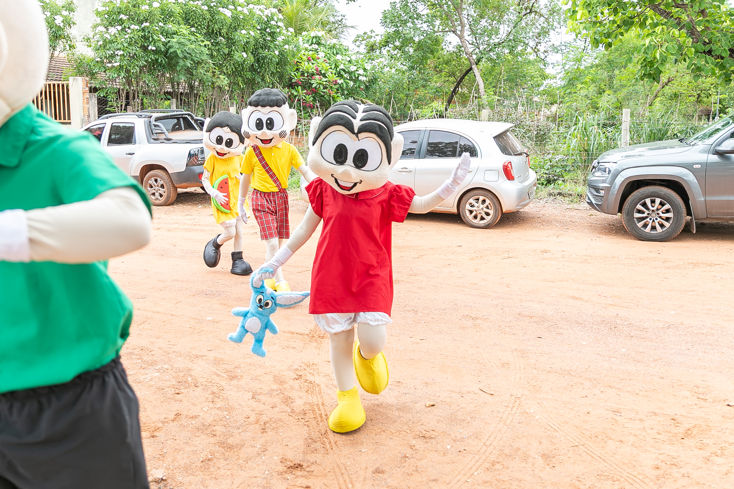 Os personagens Mônica, Magali, Cebolinha e Cascão, devidamente fantasiados, participaram de uma apresentação teatral, bastante celebrada pelos estudantes.
