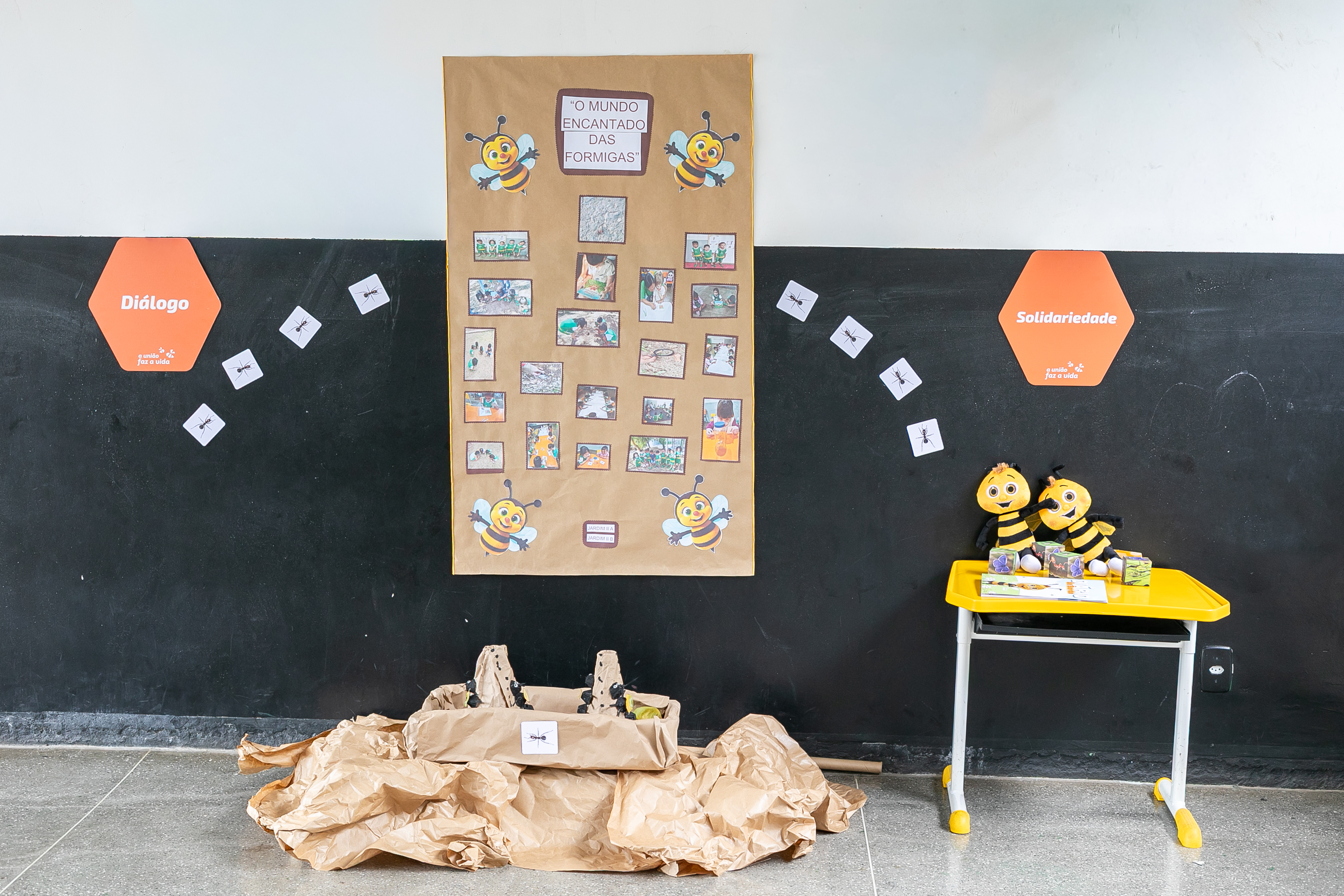 Para incentivar a aprendizagem e a capacidade de produção artística, a equipe de professores fez uma convergência de todos os materiais oferecidos pela Secretaria Municipal de Educação (SME). Uma das exposições de trabalho está relacionada à parceria com a cooperativa Sicredi.