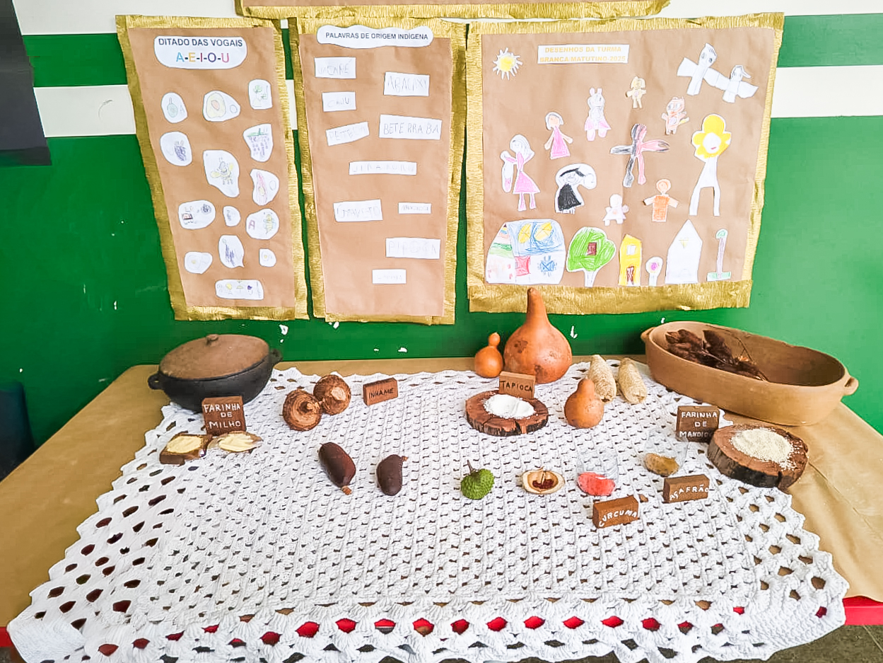 Uma série de trabalhos artísticos produzidos com argila, areia, tinta, lápis coloridos, desenhos em cartolinas e hábitos da cultura indígena, produzidos por crianças de 3 a 5 anos, foram apresentados na quinta-feira (11) pelos estudantes da Escola Municipal de Educação Básica (EMEB) Juarez Sodré Farias, localizada na Rua João Carlos Pereira Leite, no bairro Araés.