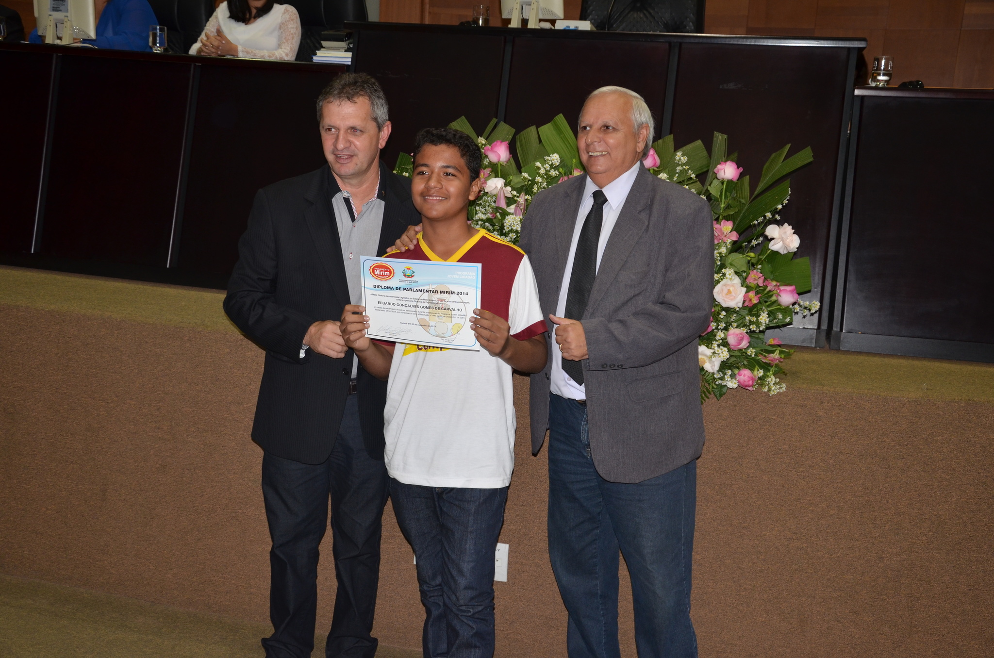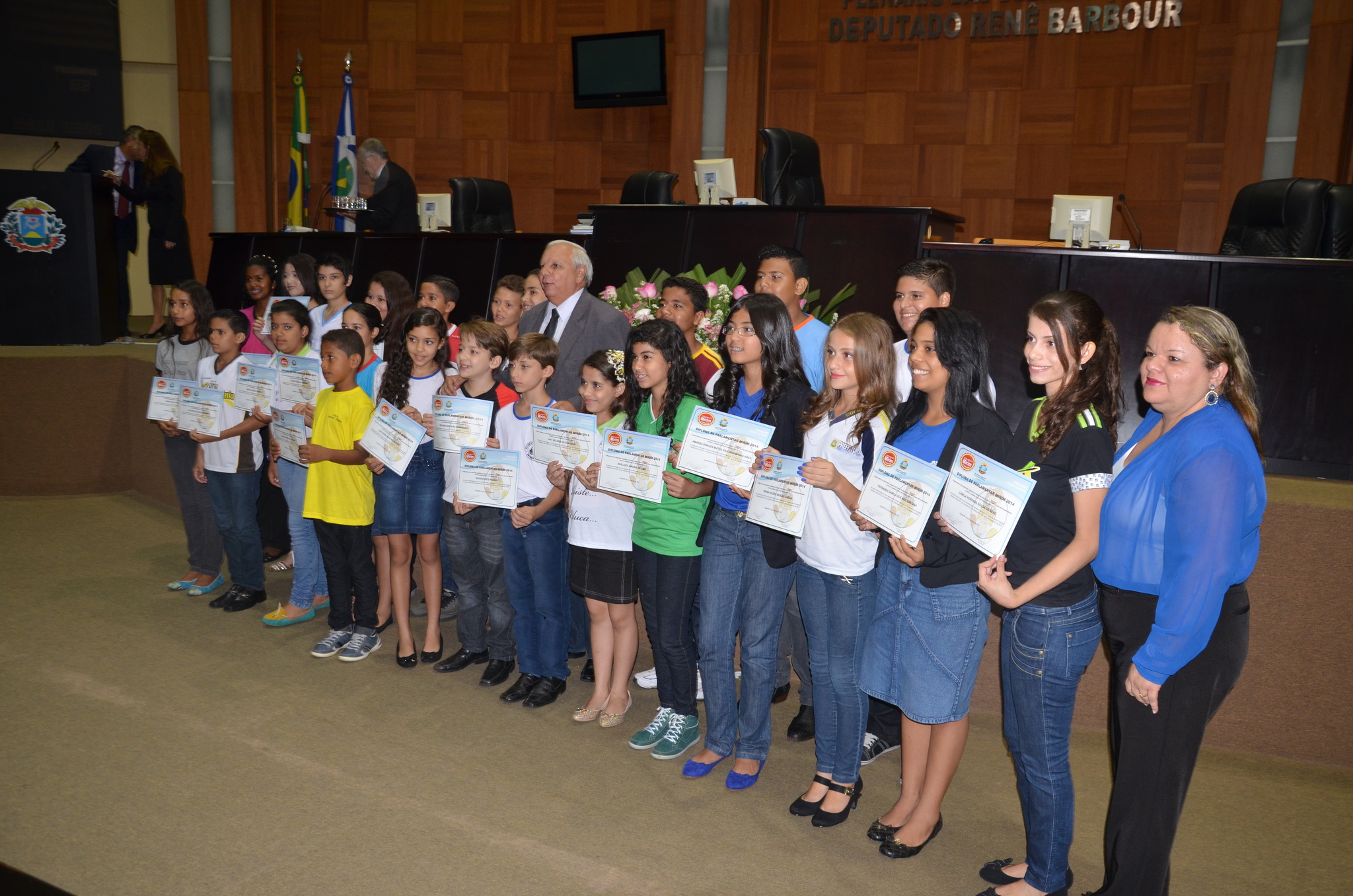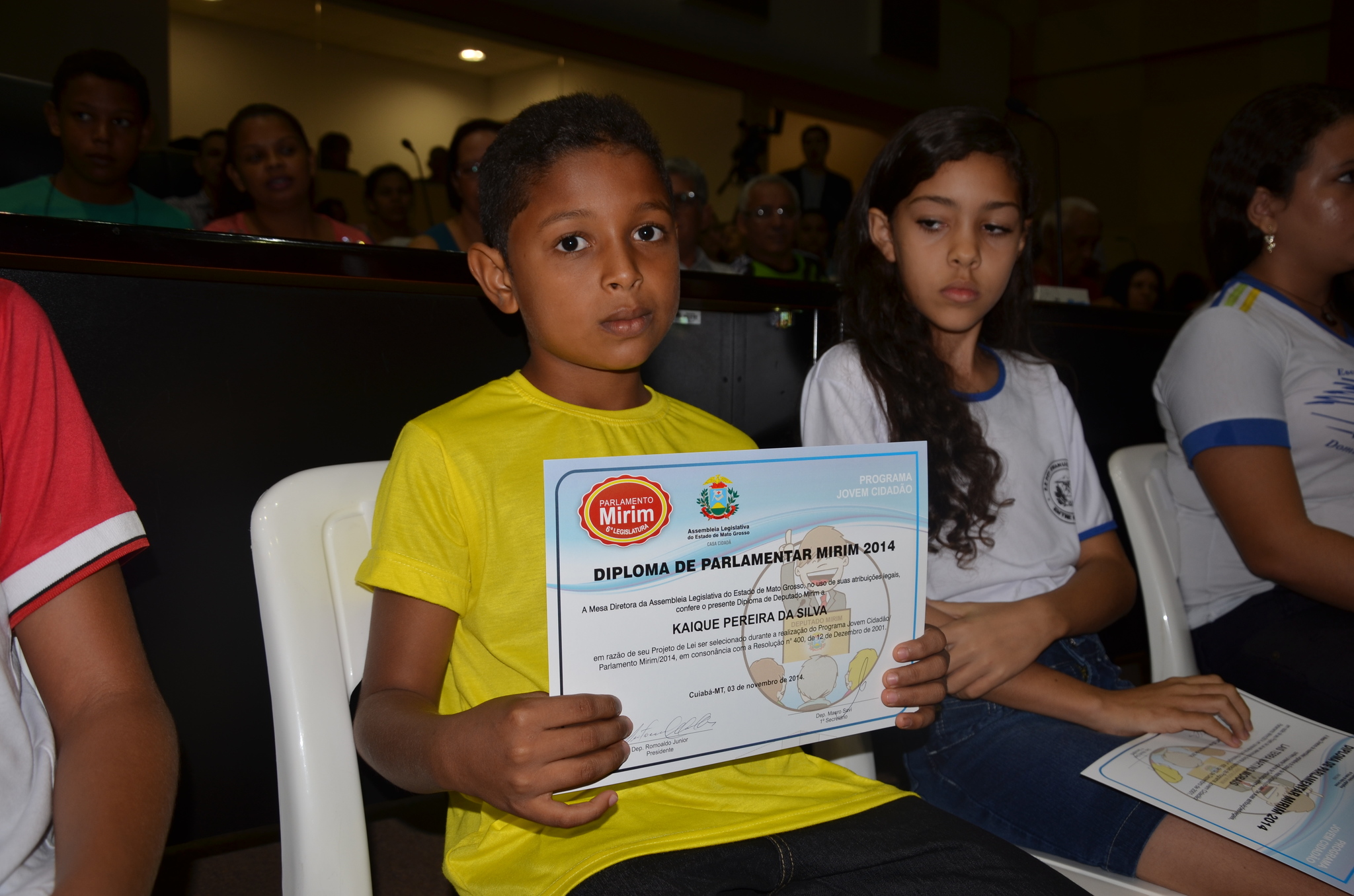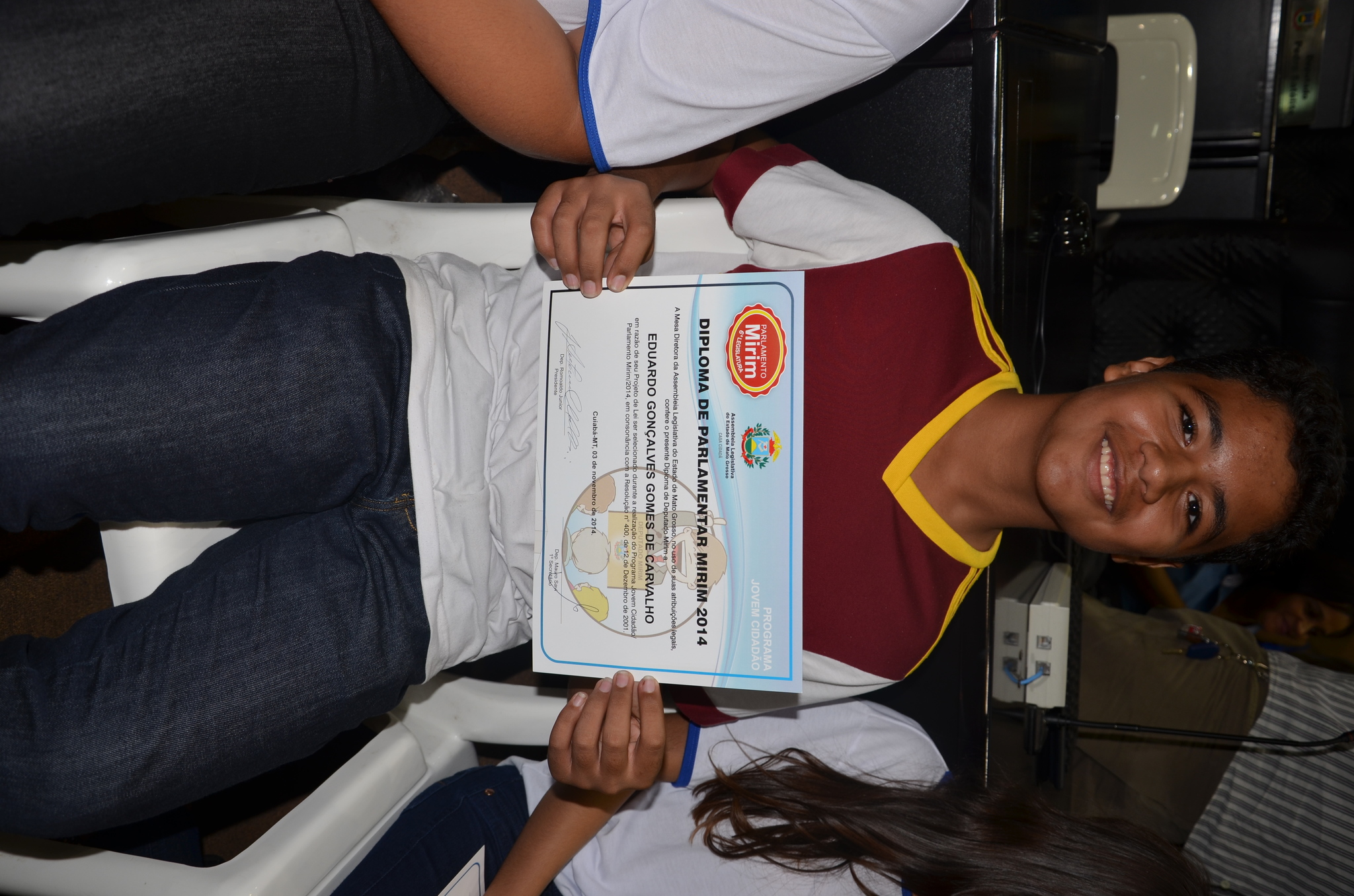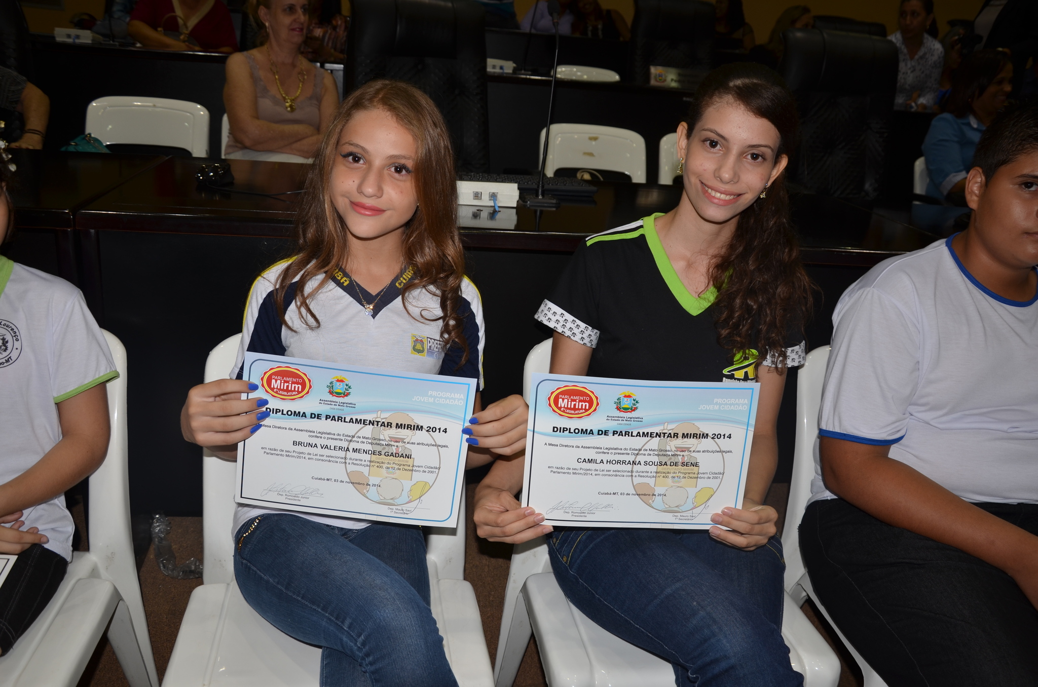 Os quatro alunos de escolas municipais que foram selecionados para a 6ª Legislatura do Projeto Parlamento Mirim tomaram posse na noite de segunda-feira (03) em uma sessão especial realizada no Plenário Renê Barbour, na Assembleia Legislativa de Mato Grosso.