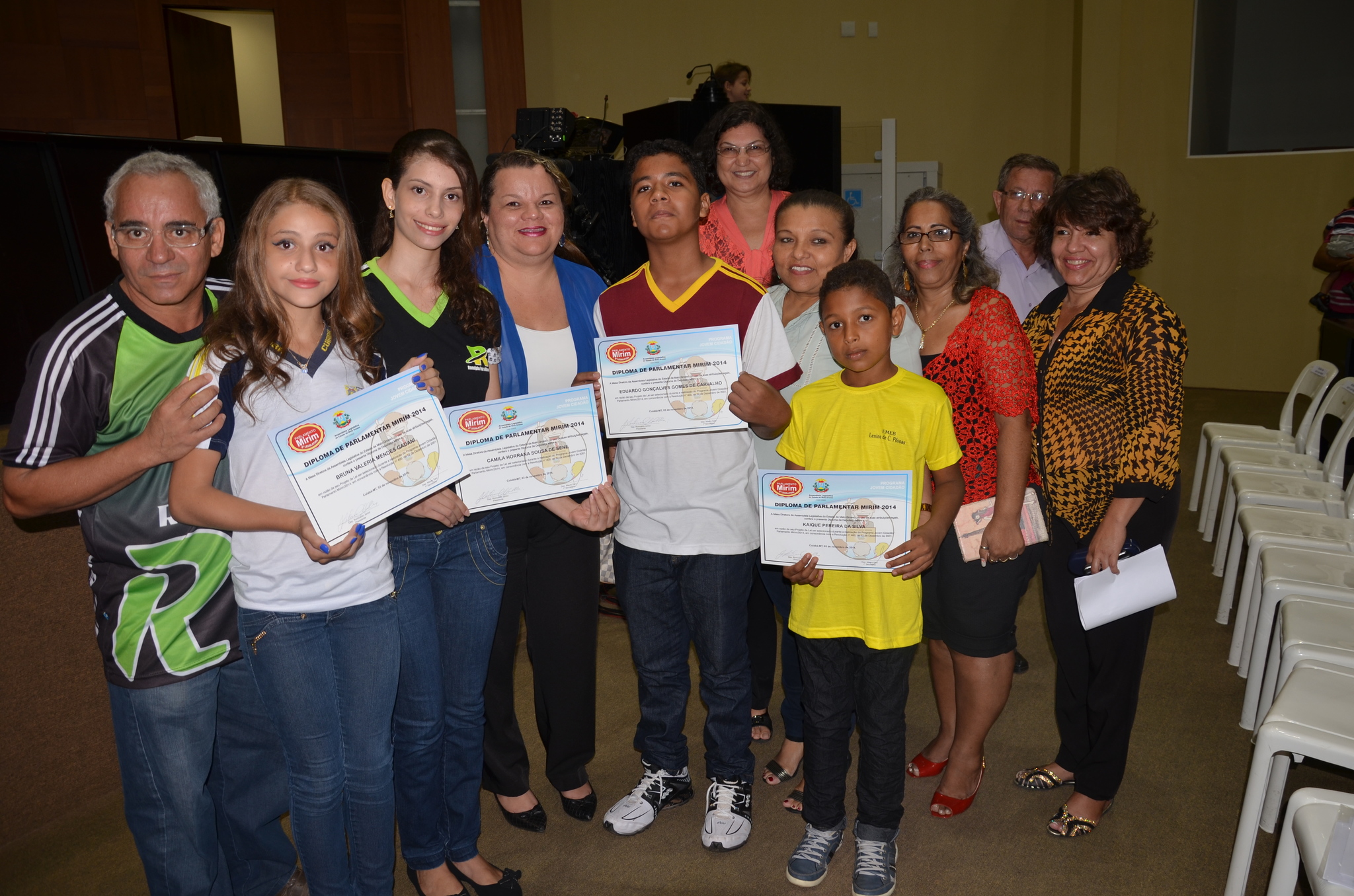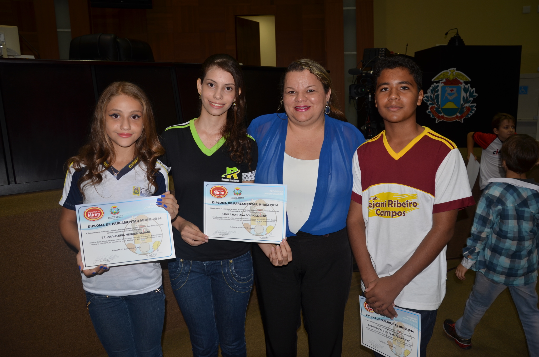 Os alunos Eduardo Gonçalves, 13 anos, Camila Horrana Gomes, 15 anos, Bruna Valéria, 12 anos, e Kaique Pereira, 12 anos, representam as escolas Dejani Ribeiro, Ranulpho Paes de Barros, José Luiz de Borges Garcia e Lenine de Campos, respectivamente. Eles compõem a 6ª Legislatura com outros 20 parlamentares mirins.