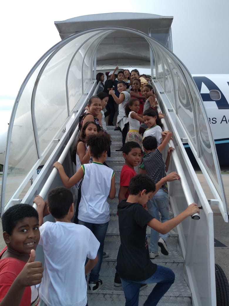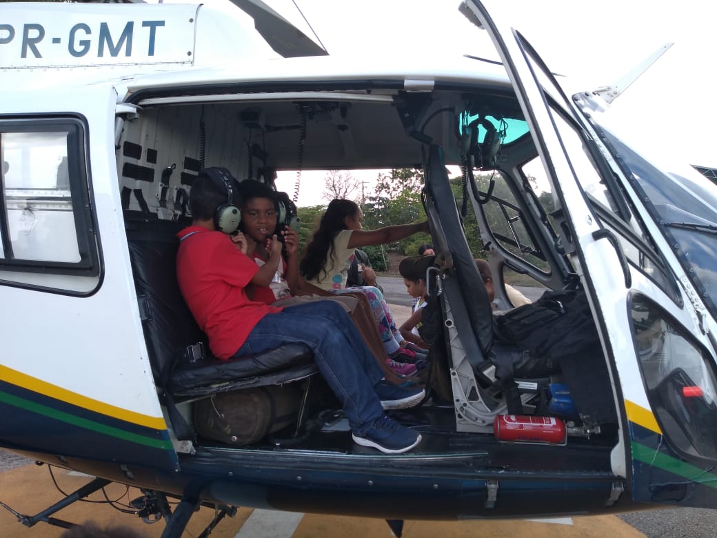 “Os alunos visitaram também o Centro Integrado de Operações Aéreas (CIAOPER), onde puderam conhecer os aviões e os helicópteros da corporação e a função de cada um deles, além disso, as crianças puderam entrar no helicóptero”, acrescentou Inês. Depois, foi a hora de conhecer uma aeronave utilizada em voos comerciais e simularam um embarque, entraram na cockpit (cabine do Piloto). Pelo Finger, ponte que faz ligação entre o terminal de aeroporto e o avião, foi simulado o desembarque.