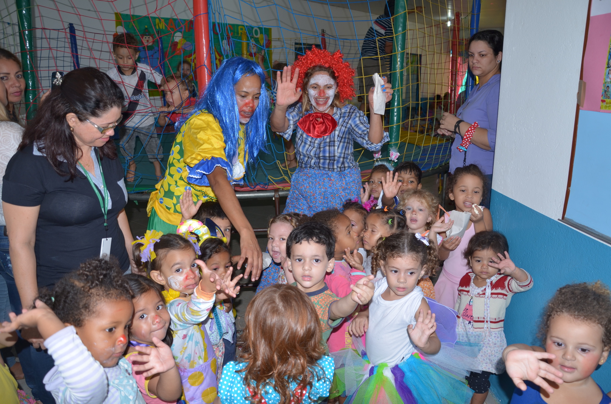 Uma tenda circense foi montada dentro da unidade de ensino e uma variedade de atrações foi oferecida aos 113 alunos, com idade entre 2 e 3 anos e 11 meses.