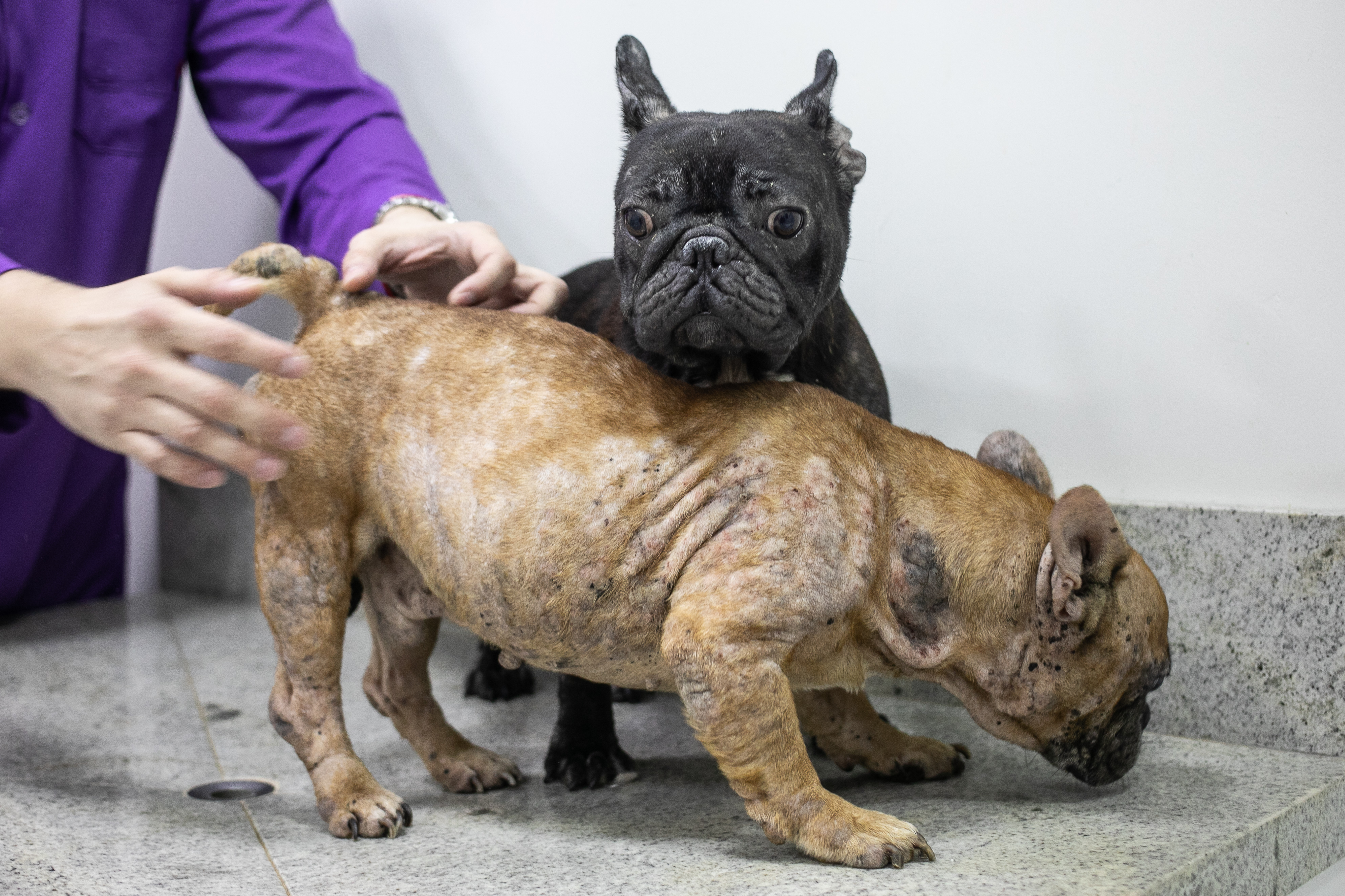 Os três animais resgatados no dia 22 deste mês, em uma residência de classe média, em um condomínio fechado, no bairro Distrito Industrial, recebem cuidados veterinários. Dois deles, sendo uma fêmea da raça Lhasa Apso, a Vida Maria, de aproximadamente 8 anos de idade e um macho, o Caramelo (um Bulldog Francês), aparentando mais de seis anos, foram submetidos nesta terça-feira (27) a cirurgias.