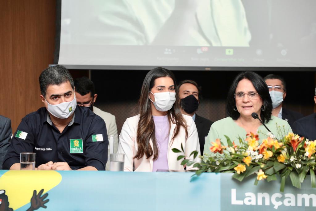 O prefeito Emanuel Pinheiro marcou presença no lançamento do programa Famílias Fortes, pela ministra da Família e dos Direitos Humanos, Damares Alves, na sede da Associação mato-grossense dos Municípios (AMM), na manhã deste sábado (18). No evento, também ocorreu a assinatura do protocolo de intenção com a AMM e com a Associação para o Desenvolvimento Social dos Municípios de Mato Grosso (APDM), que tem como objeto a implantação de uma escola de formação de agentes públicos na área das políticas sociais e que, em Cuiabá, será monitorado de perto pela primeira-dama Márcia Pinheiro.