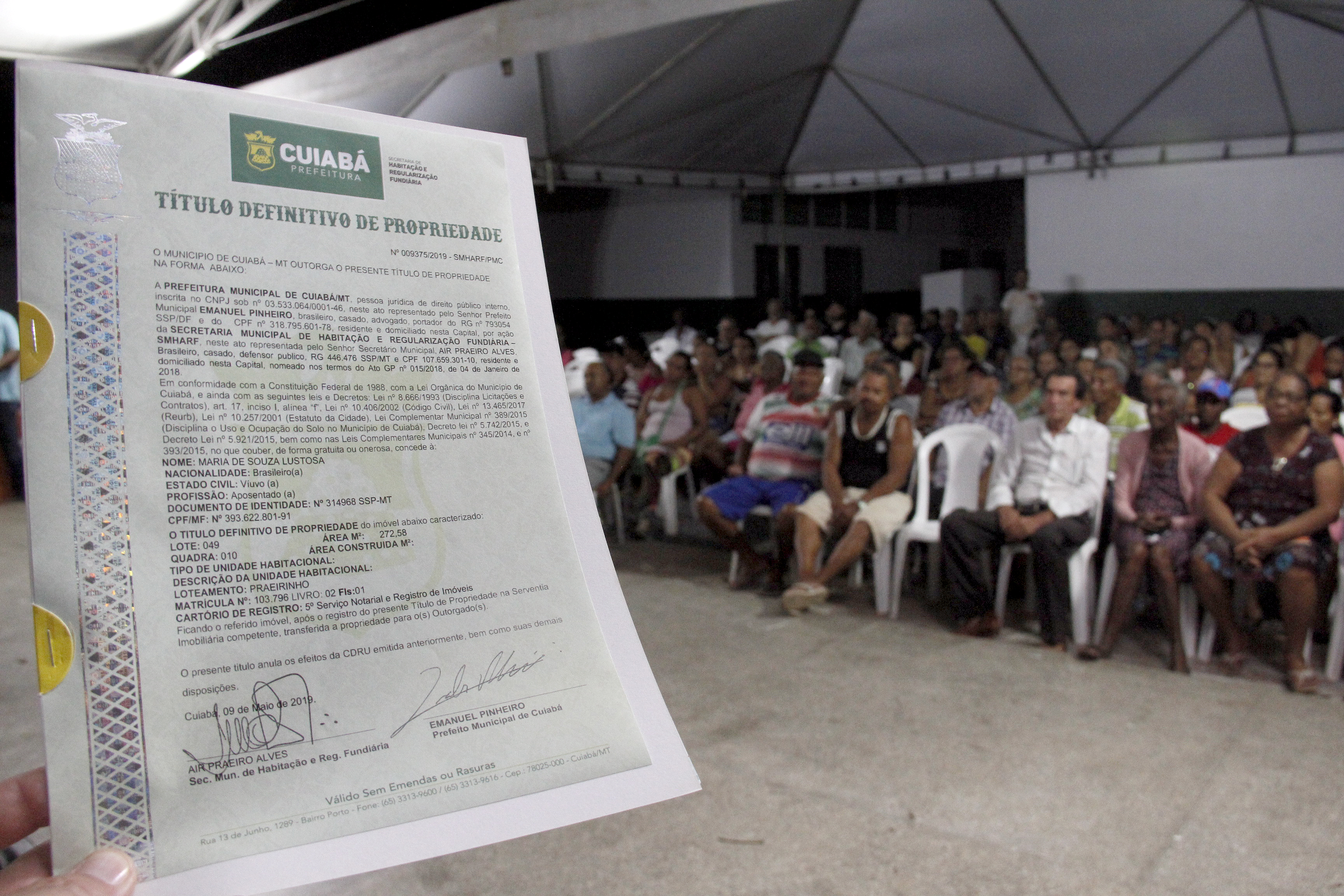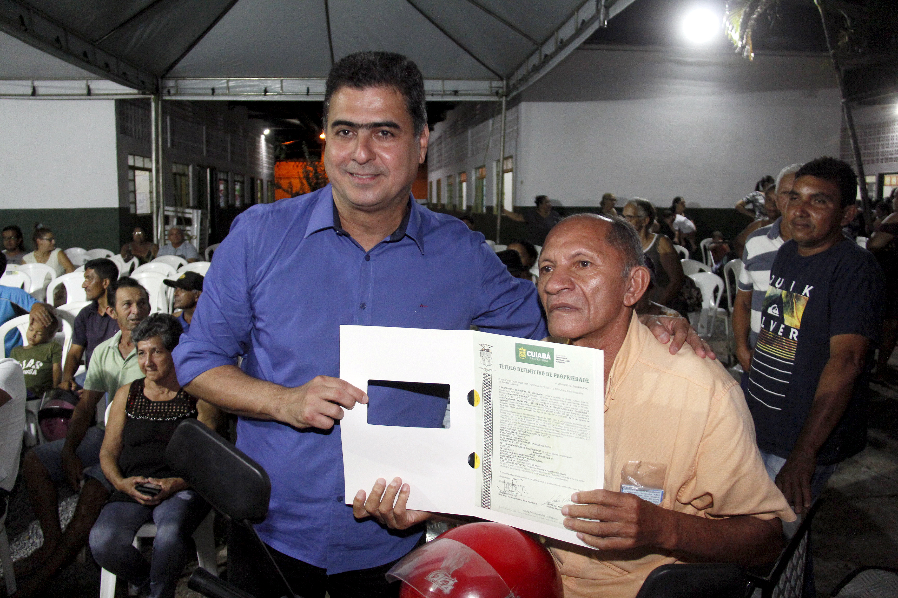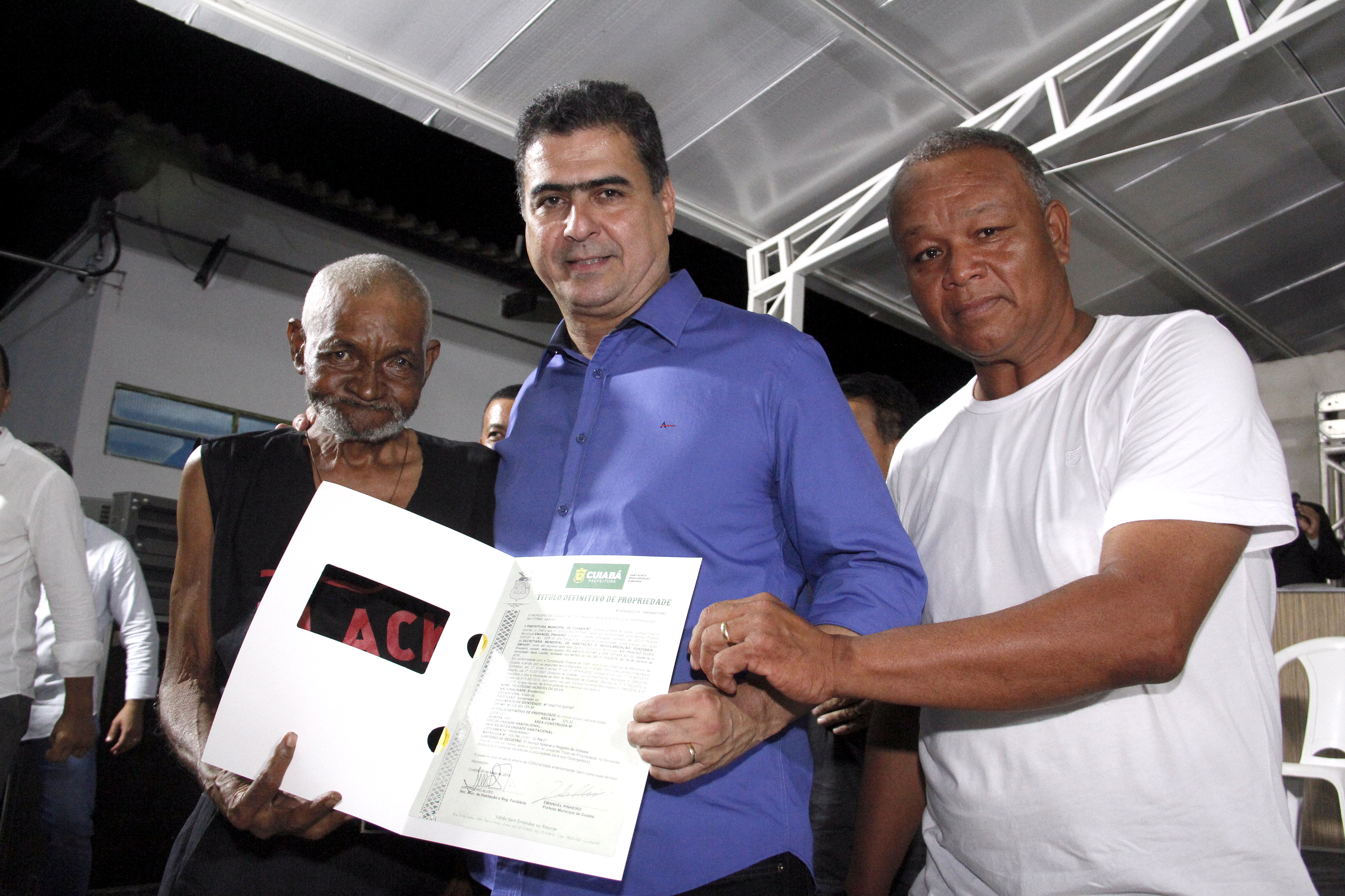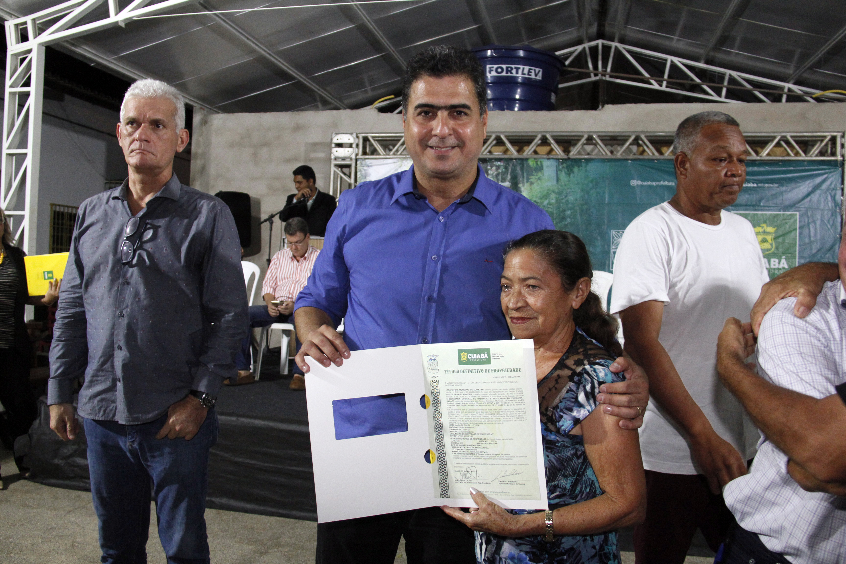 Após 28 anos de luta em busca do título de regularização fundiária, mais de 300 moradores do Praeirinho receberam o documento definitivo de propriedade dos seus imóveis. A entrega foi feita na noite de quinta-feira (9), pelo prefeito de Cuiabá, Emanuel Pinheiro, na Escola Dom Bosco.
