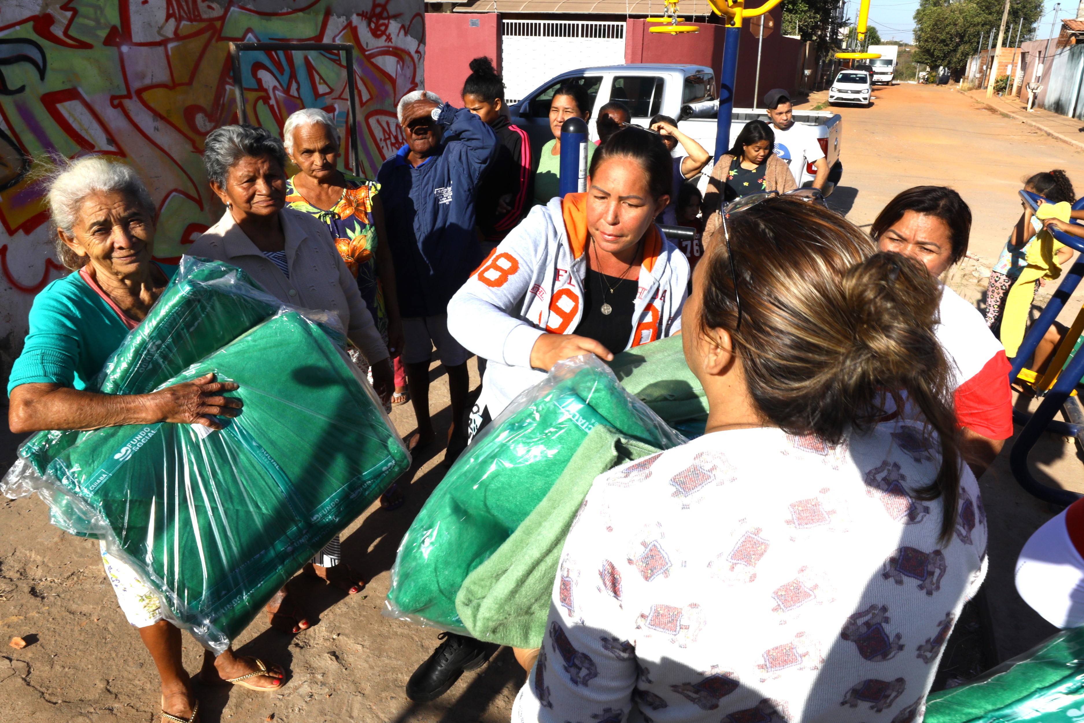 “O núcleo da primeira-dama recebe solicitações de presidentes de bairros, grupos organizados e instituições sociais pedindo cobertores para as comunidades. São pessoas que, nessa época de frio, não têm condições de comprar um agasalho e buscam ajuda na campanha”, frisou Débora Ramos, coordenadora do núcleo.