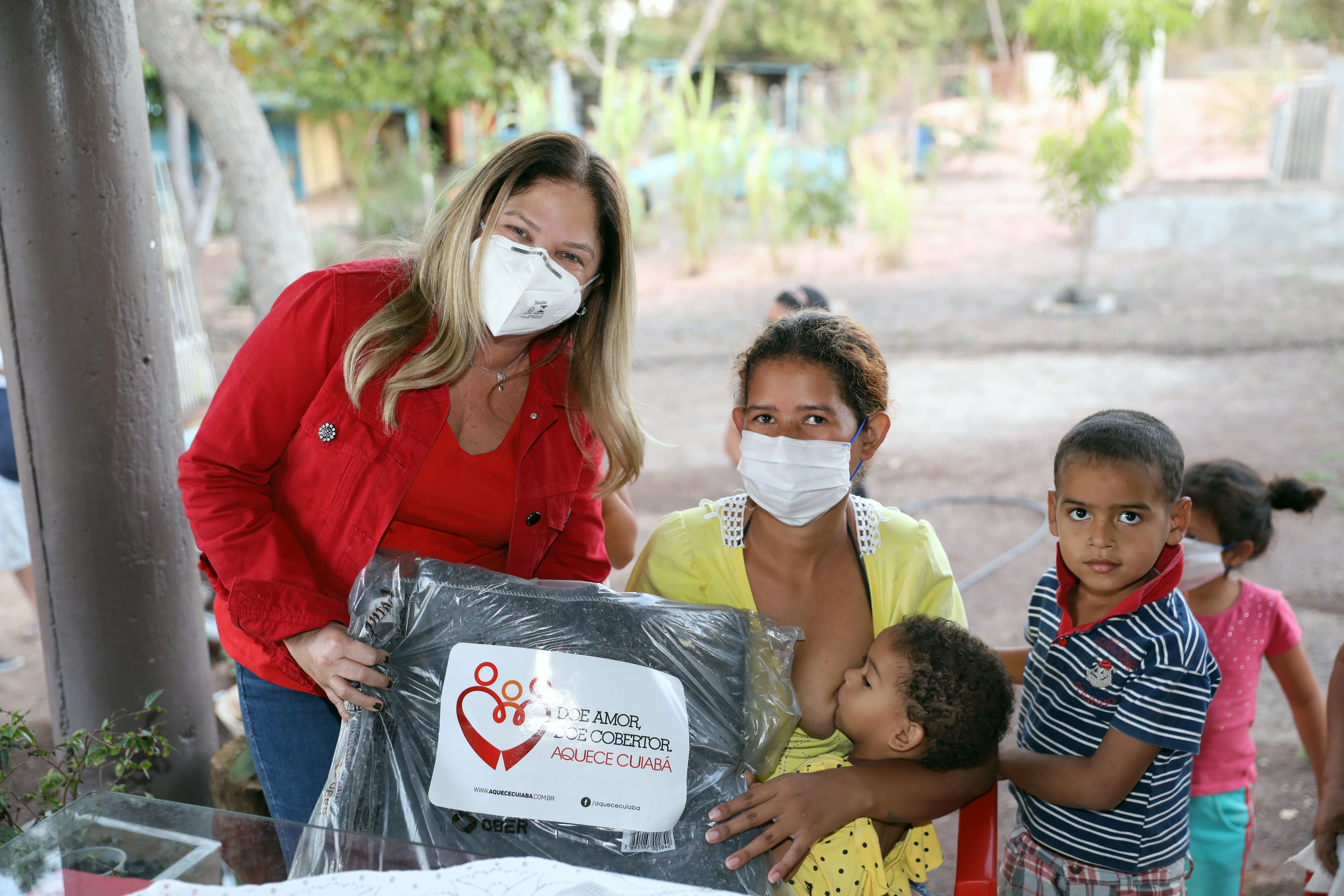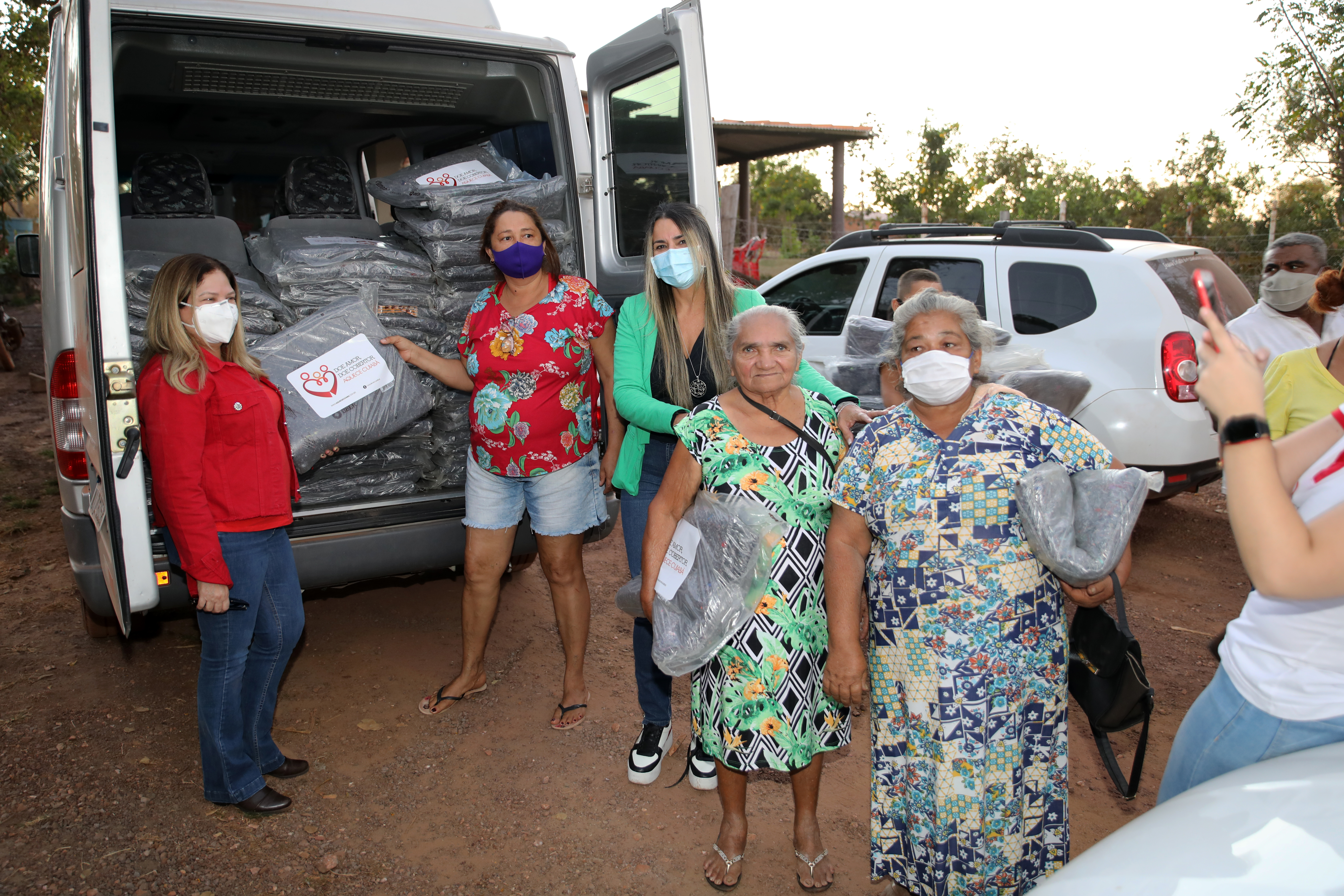 Outros 200 cobertores foram entregues à comunidade Quinta da Bandeira, situada na área rural de Cuiabá. A destinação para comunidades carentes são pedidos feitos ao Núcleo de Apoio à Primeira-dama que presta suporte no controle social junto aos líderes comunitários para averiguar a necessidade das famílias.
