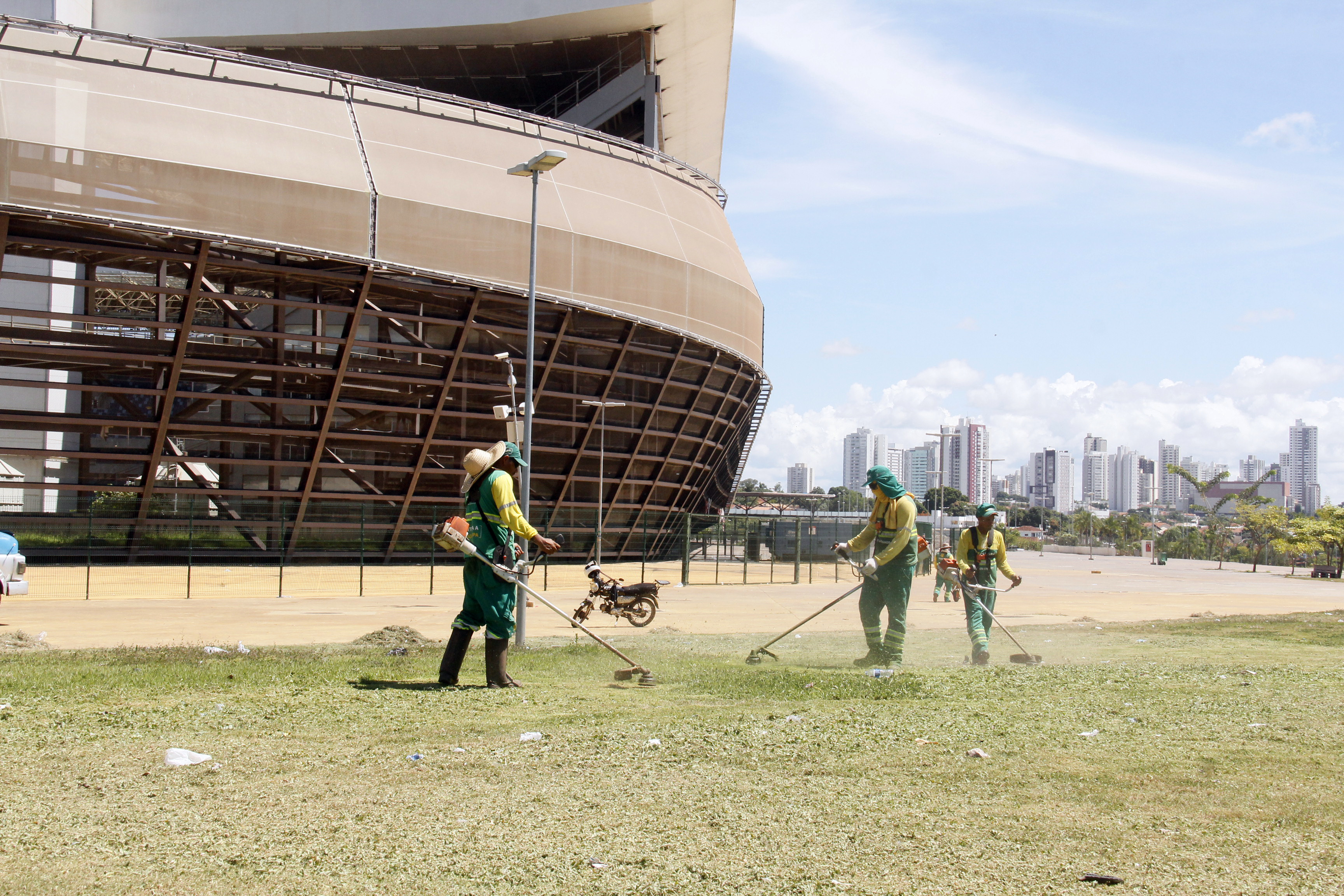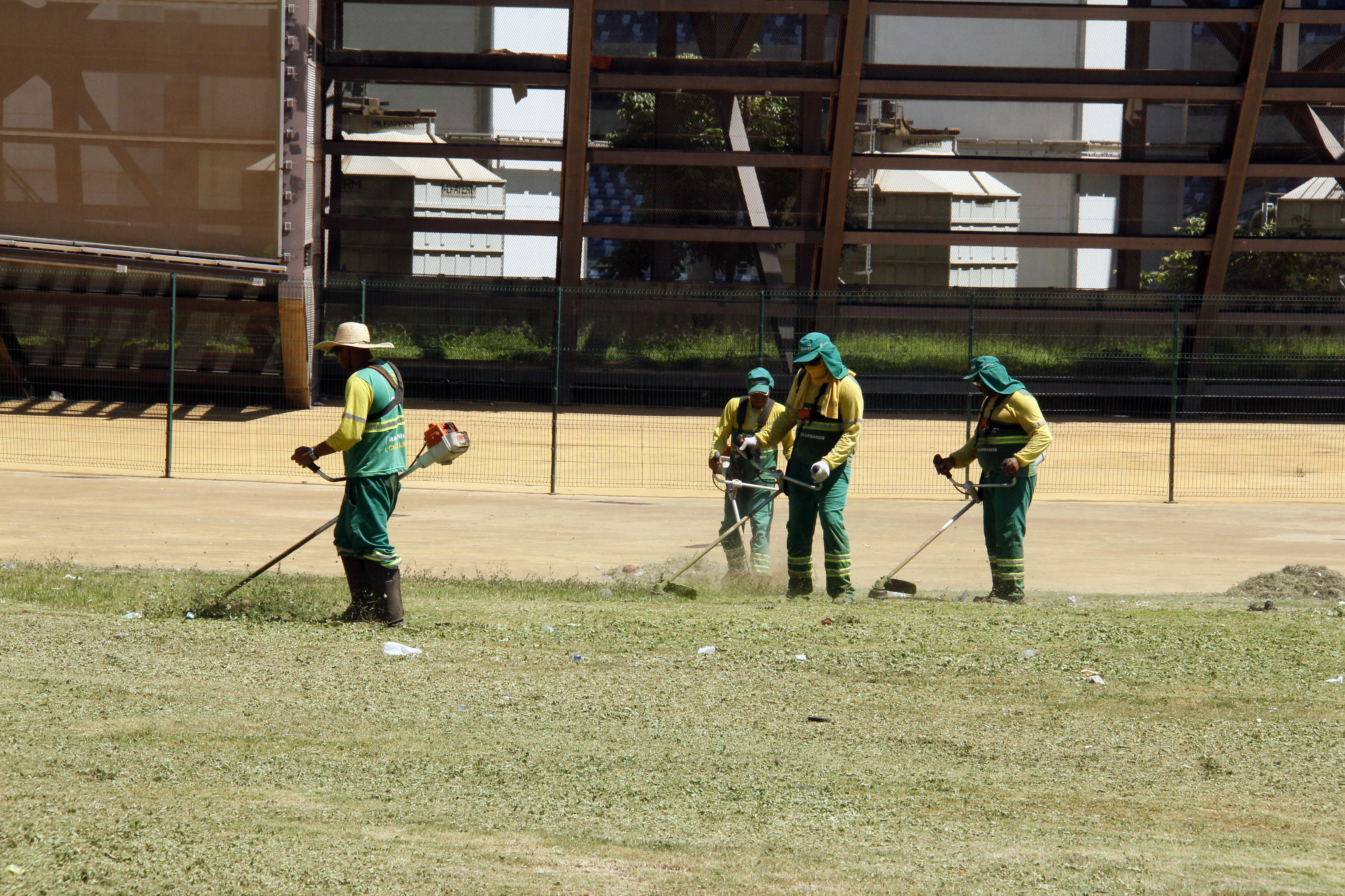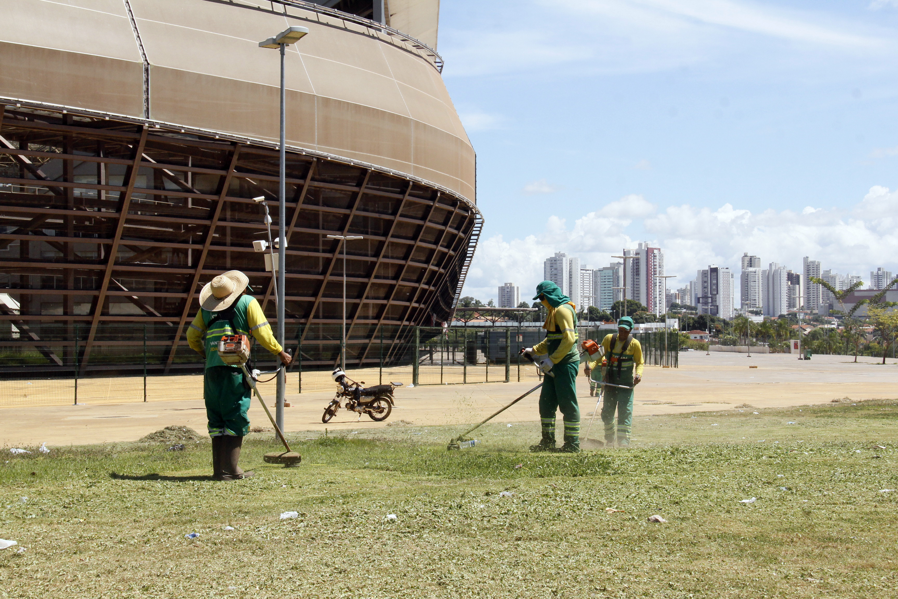 Mais de 50 servidores iniciaram nesta semana, a limpeza da área externa do complexo Arena Pantanal. O trabalho é fruto de entendimento entre a Prefeitura de Cuiabá e o Governo do Estado, intermediado pela Secretaria Municipal de Serviços Urbanos e Secretaria de Estado de Cultura, Turismo, Esporte e Lazer. Conforme o cronograma, a atuação do Município no local deve seguir até este sábado (9).