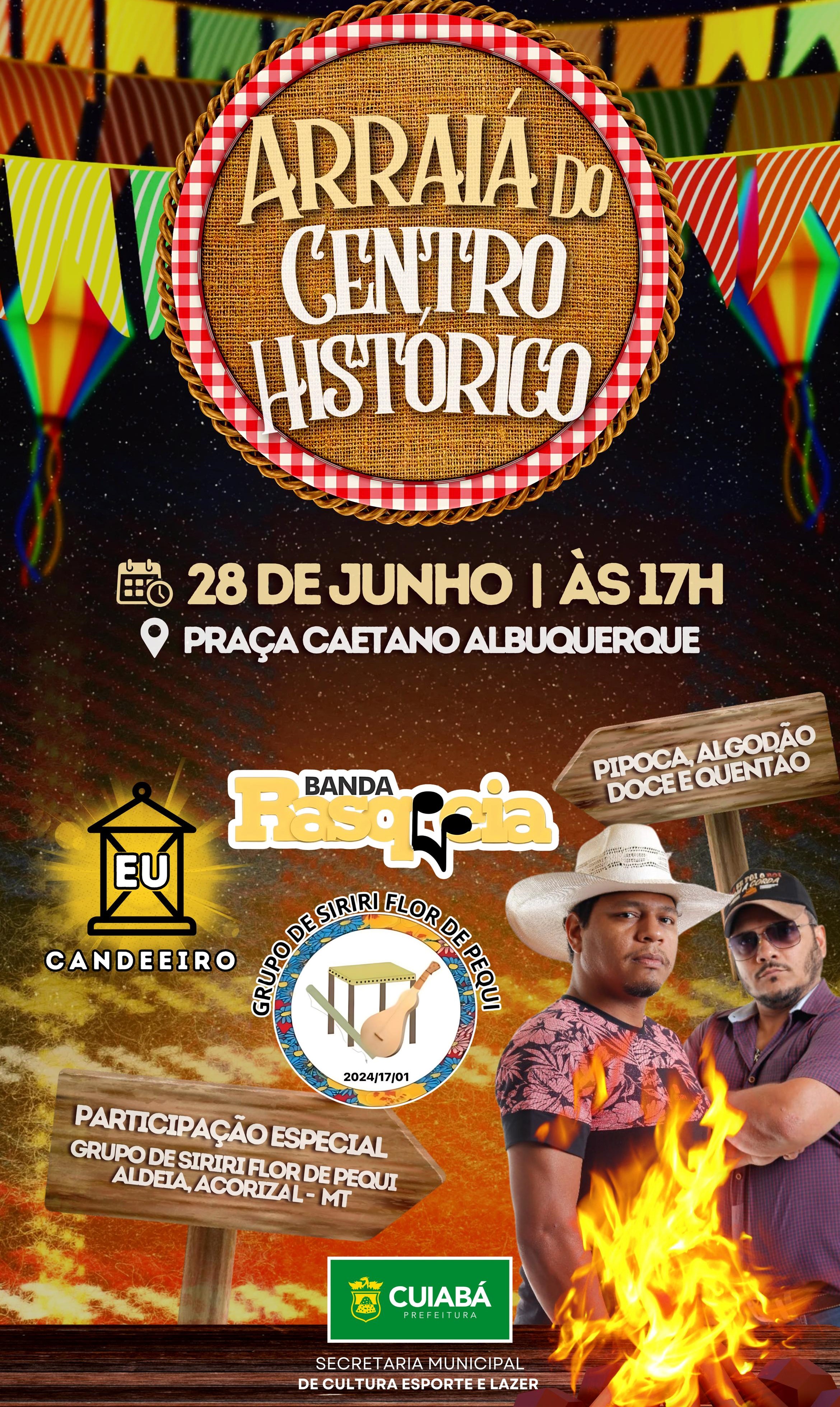 A programação do projeto 'Eu Candeeiro' desta semana está um pouco diferente. Aproveitando o ritmo das festanças juninas, será realizado nesta sexta-feira (28), a partir das 17h, o Arraiá do Centro Histórico, na praça Caetano Albuquerque. O projeto, promovido pela Prefeitura de Cuiabá por meio da Secretaria Municipal de Cultura, Esporte e Lazer, tem como principal objetivo aproximar a população da região central, promovendo o fortalecimento do ambiente de convivência, bem-estar e lazer no Beco do Candeeiro.