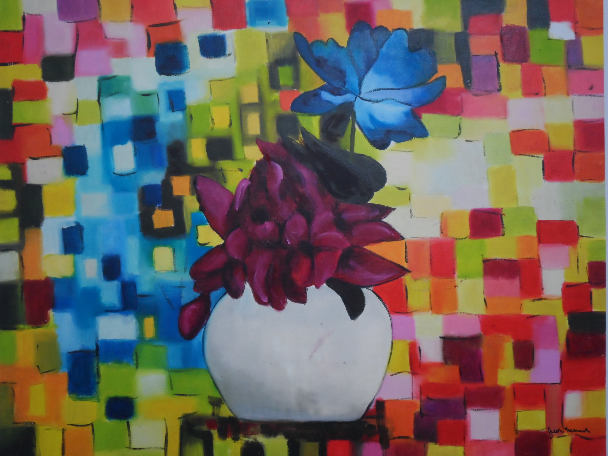 O conjunto reúne 20 telas que mesclam realidade formal, objetiva e abstrata. Entre elas imagens de animais e frutas. As peças estão disponíveis para venda. A artista também é criadora das telas feitas em homenagem ao ex-jogador Ronaldo “Fenômeno”, cuja exposição foi apresentada entre os meses de maio e julho, no Misc.