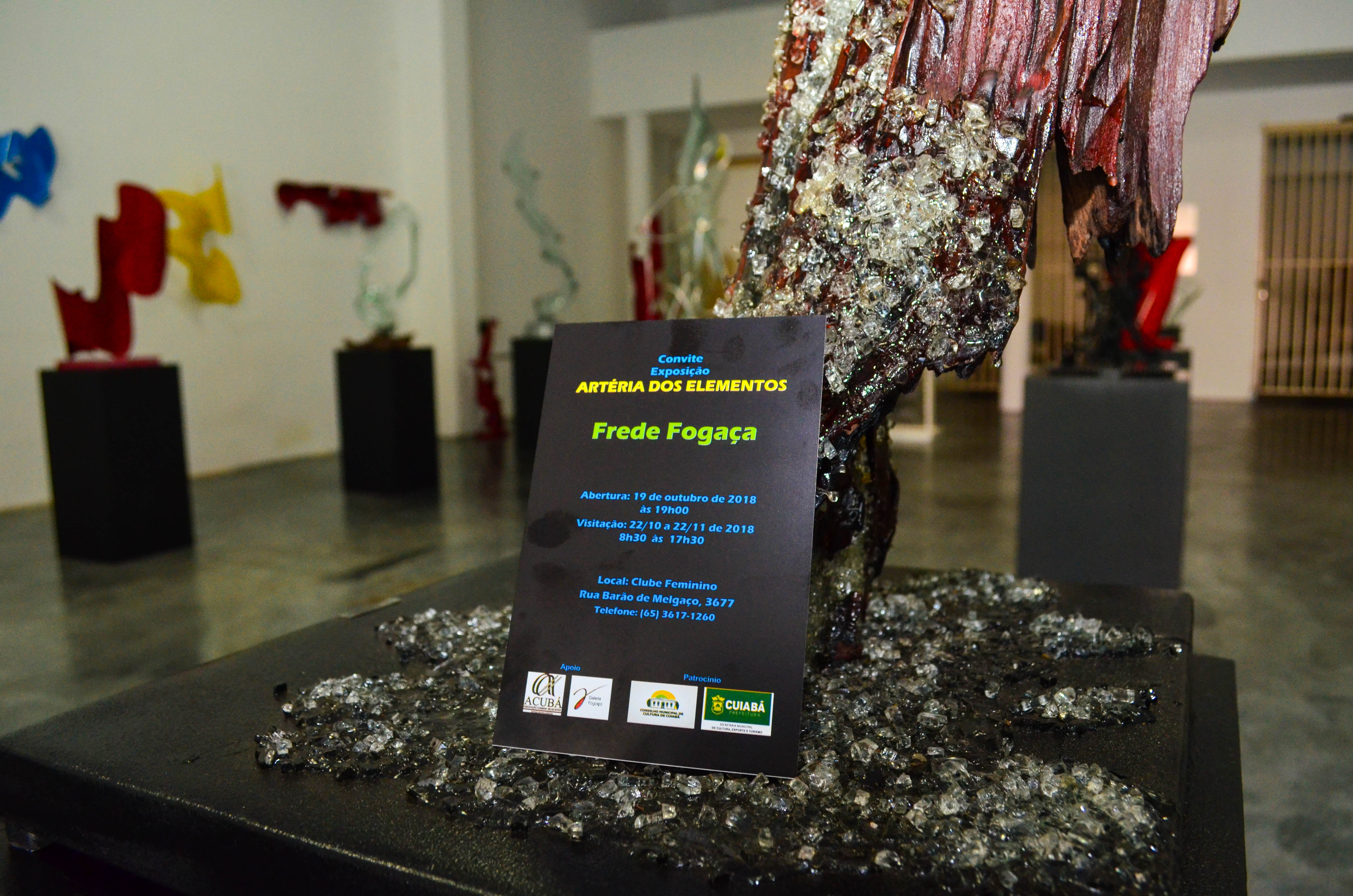 Deformado por contornos de arcos e curvas o vidro ladeia recortes de placas de metal e raízes contorcidas, delineando a proposta da Artéria dos Elementos, exposição do escultor Frede Fogaça. As peças estão dispostas no salão principal do Clube Feminino, que abriga a Secretaria de Cultura, Esporte e Turismo, reinaugurando uma tradição do espaço, destinado à realização de eventos culturais e exposições. O coquetel de abertura acontece às 19h da sexta-feira (19) e a visitação, gratuita, se estende até o próximo mês.