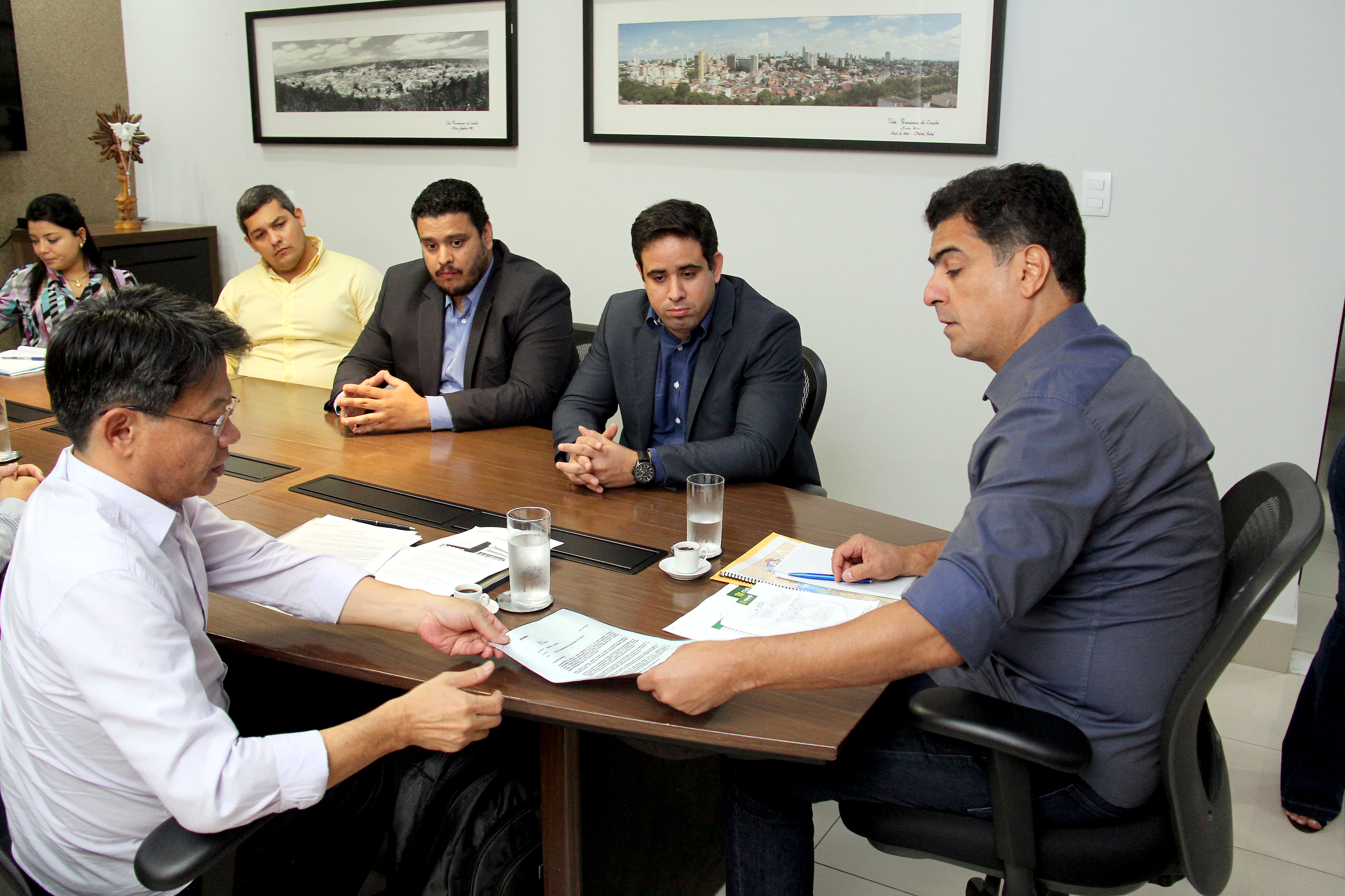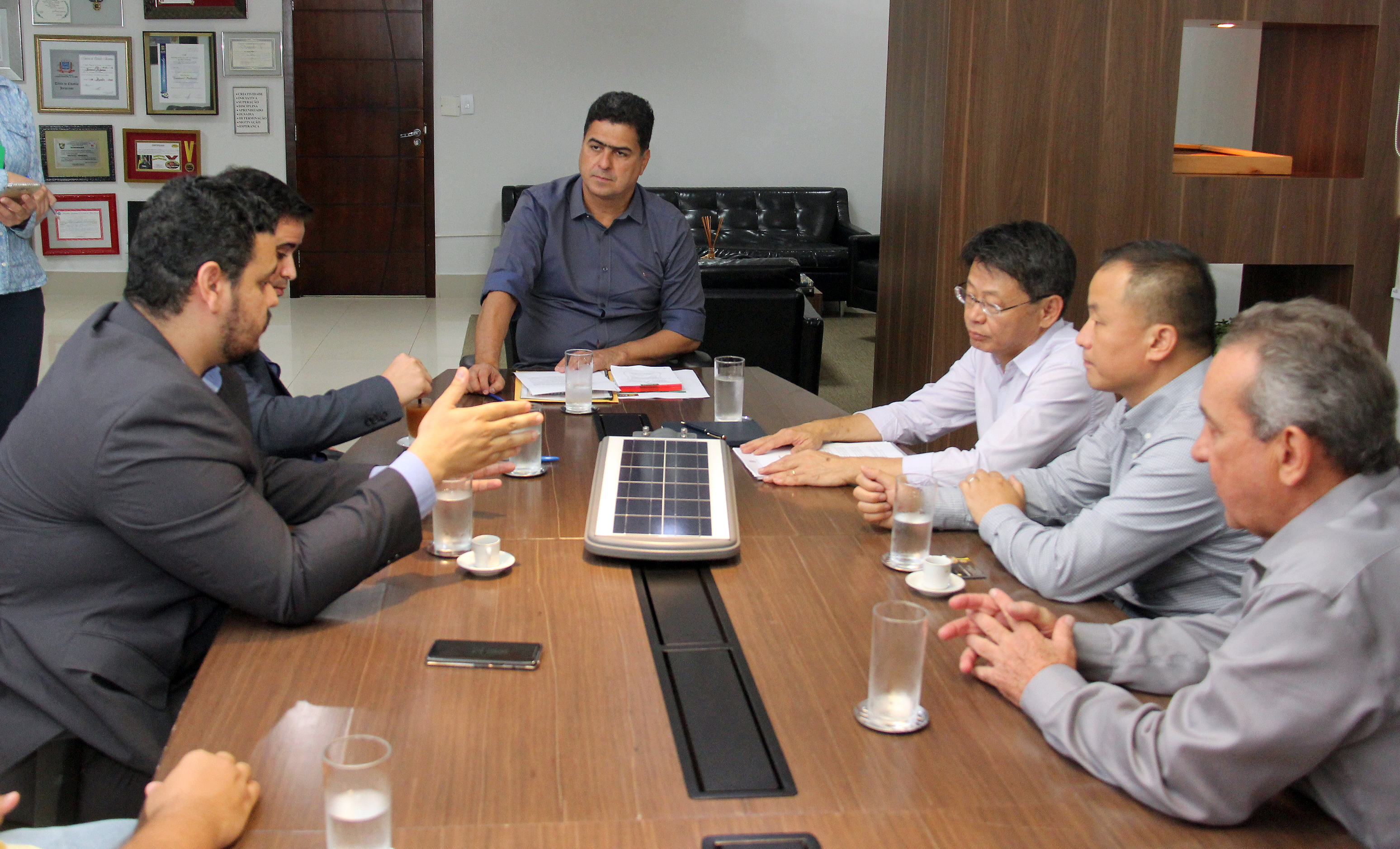 O prefeito Emanuel Pinheiro e o vice Niuan Ribeiro receberam na tarde desta quinta-feira (25) representantes da empresa chinesa de energia Corona Energy Technology. Durante o encontro, intermediado pelo diretor de Prospecção e Projetos da Agência Desenvolve MT, João Alexandre Gebara Jr., os gestores e representantes dialogaram sobre uma possível parceria para a instalação de uma fábrica de placas solares na Capital.
