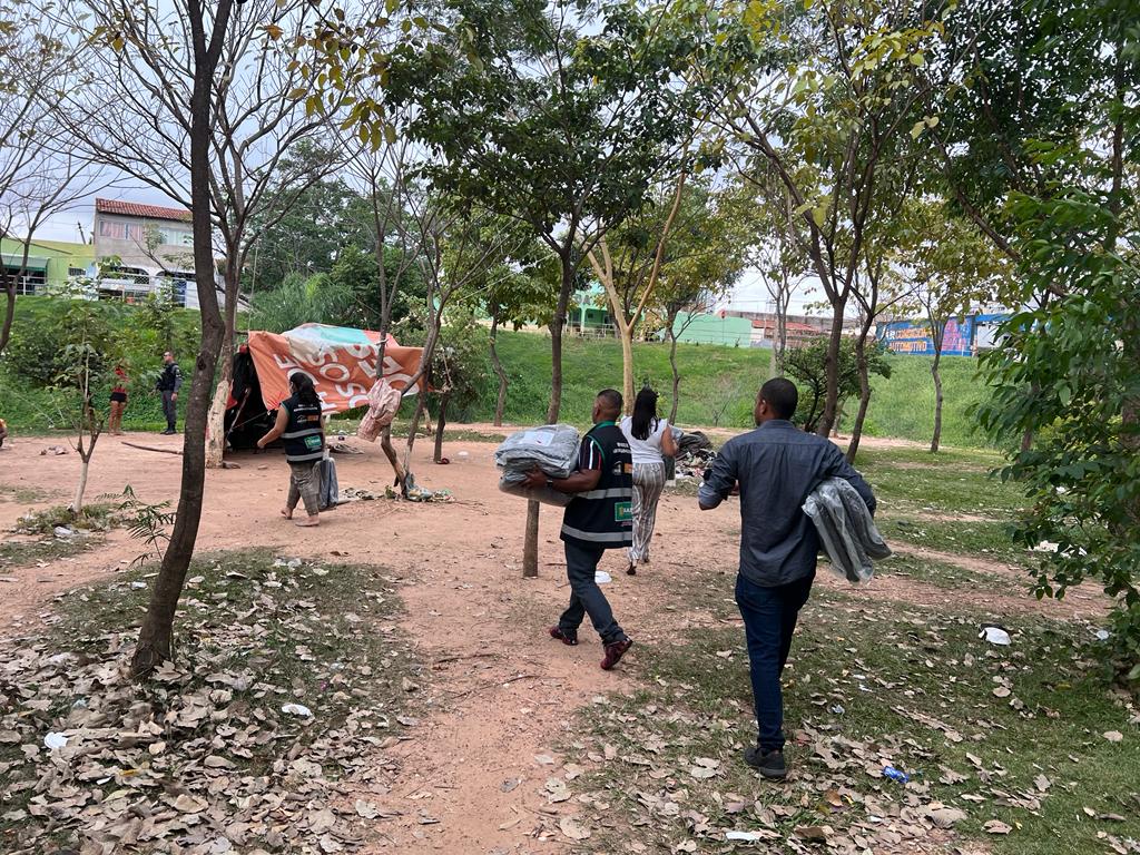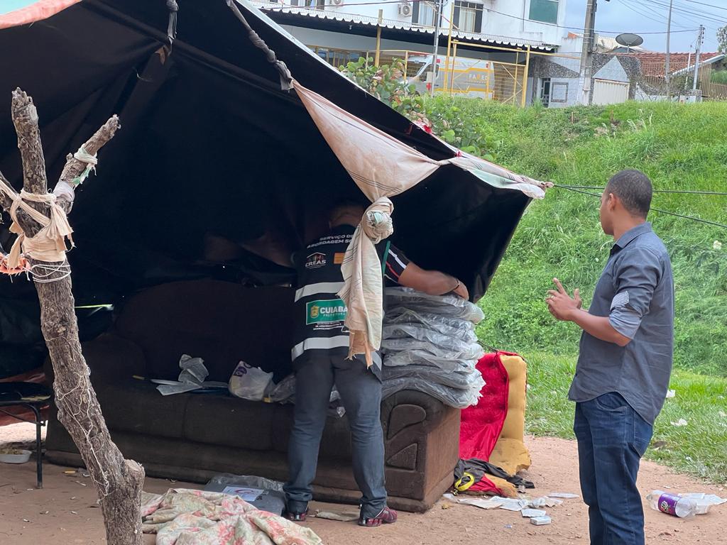 Com a chegada de uma nova frente fria anunciada para a próxima quinta-feira (5), a equipe de abordagem da Secretaria Municipal de Assistência Social, Direitos Humanos e da Pessoa Com Deficiência, antecipadamente na tarde desta quinta-feira (3), realizou a entrega de 100 cobertores da campanha Aquece Cuiabá à população em situação de rua. Além disso, a ação também conta com a distribuição de sopão.