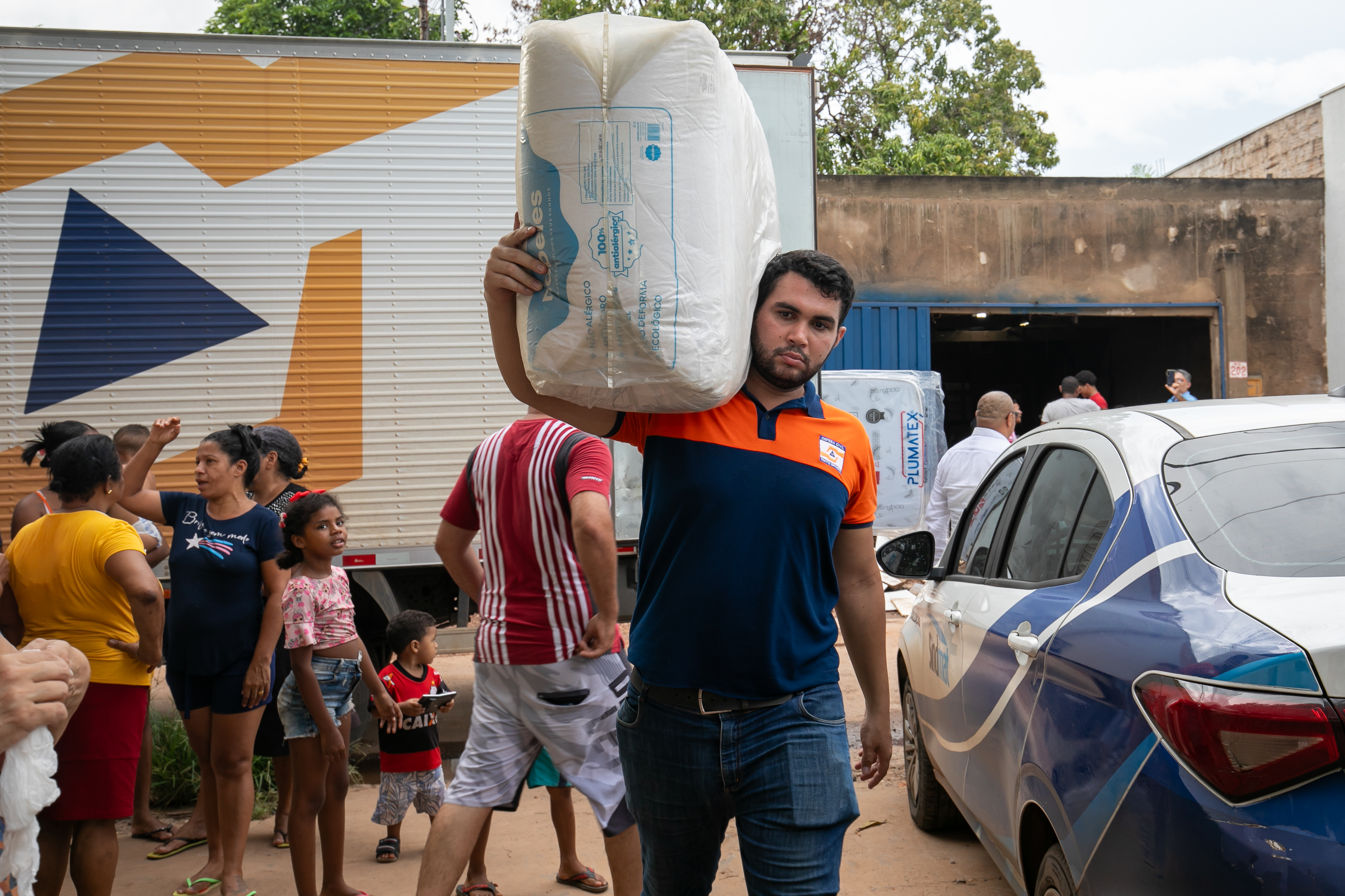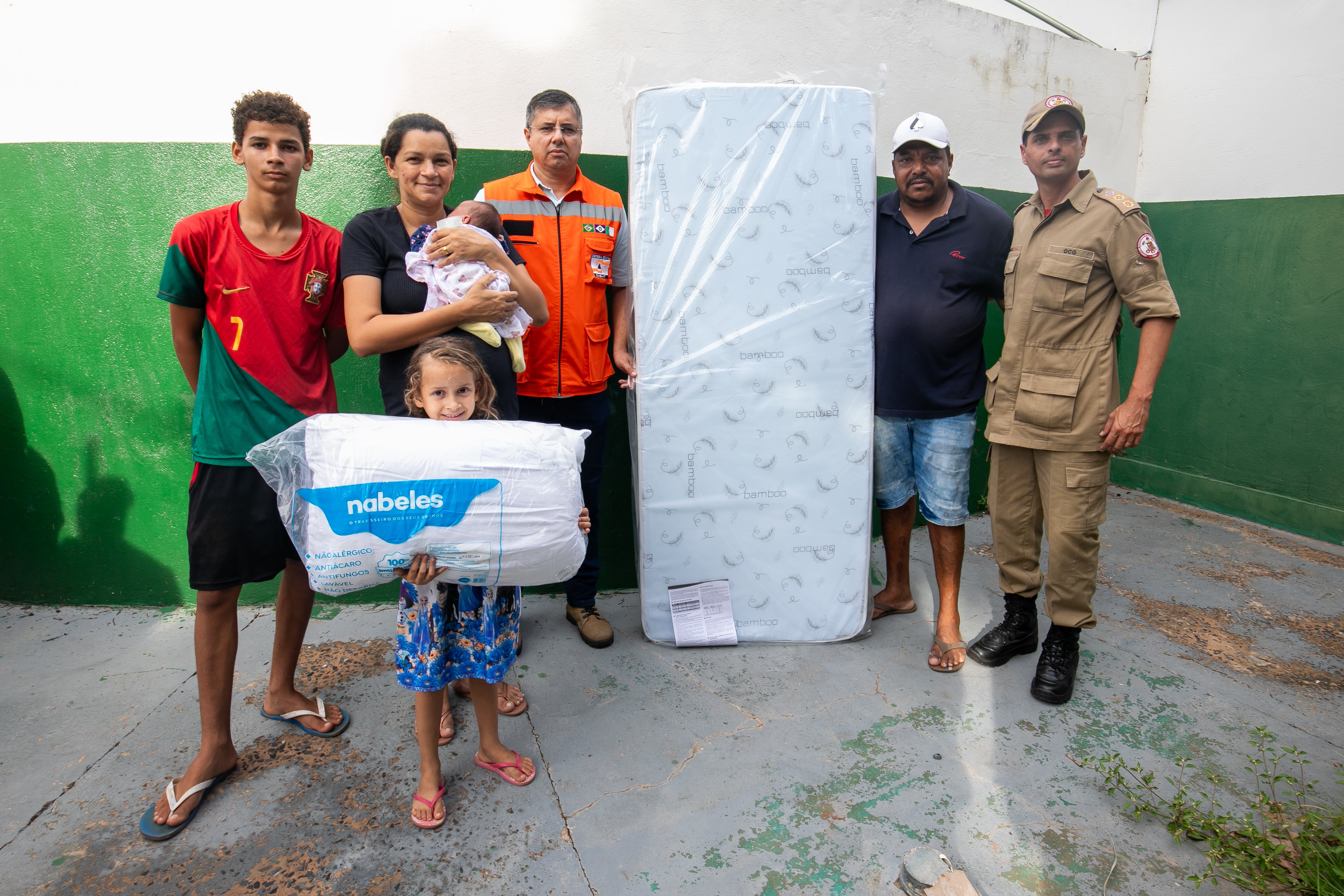Juliana Patrícia, que recebeu a doação de um colchão e travesseiros das mãos do secretário da Defesa Civil, Alessandro Borges Ferreira, relatou que perdeu o guarda-roupa, berço, colchão, roupas, calçados e o enxoval da bebê.