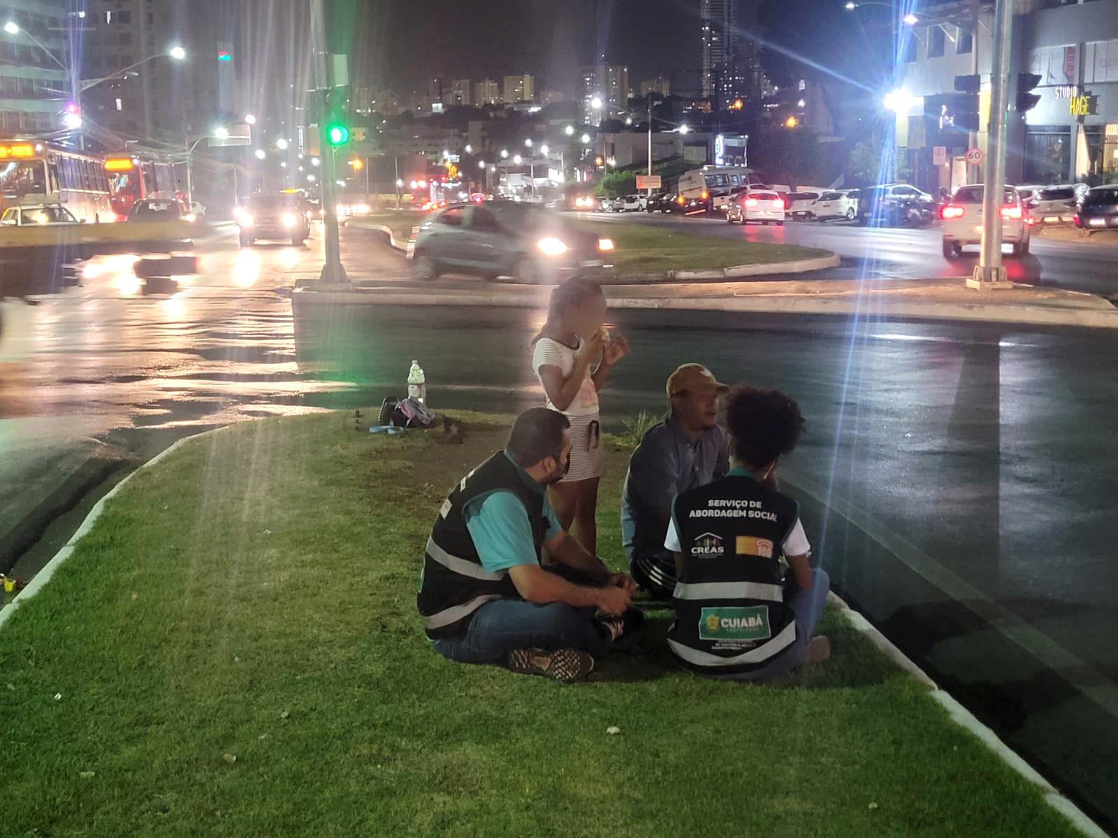 Somado ao trabalho orientativo, a equipe realiza a entrega de benefício eventual (cestas básicas e cobertores às famílias).Os locais de abordagens percorridos pelas equipes foram as Avenidas Historiador Rubens de Mendonça (em frente ao Hotel Taiamã, Farmácia Ultra Popular e loja Havan); Avenida do Cpa com a Hermínio Ribeiro (sentido Parque das Águas); Avenida do CPA com a Mato Grosso; Semáforo do bairro Consil com Avenida do CPA; Avenida do lado do Shopping Pantanal com o Ministério da Fazenda; Trevo do bairro Santa Rosa com a Avenida Miguel Sutil; Avenida Miguel Sutil próximo ao Shopping Goiabeiras; Semáforo atrás do Shopping Pantanal; Avenida Juliano Costa Marques; Avenida Generoso Ponce com a 13 de junho; Avenida Carmindo de Campos com a Tancredo Neves.