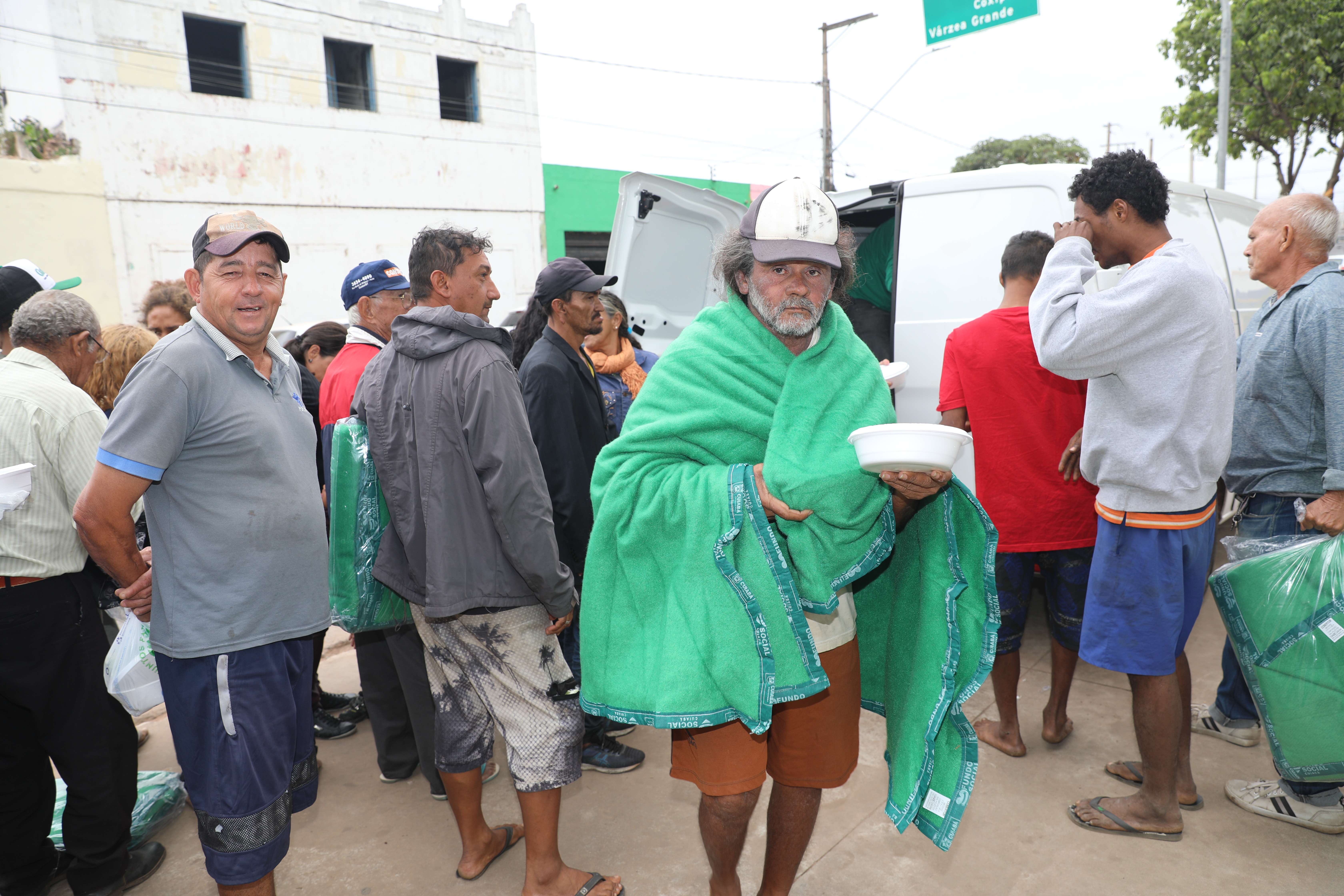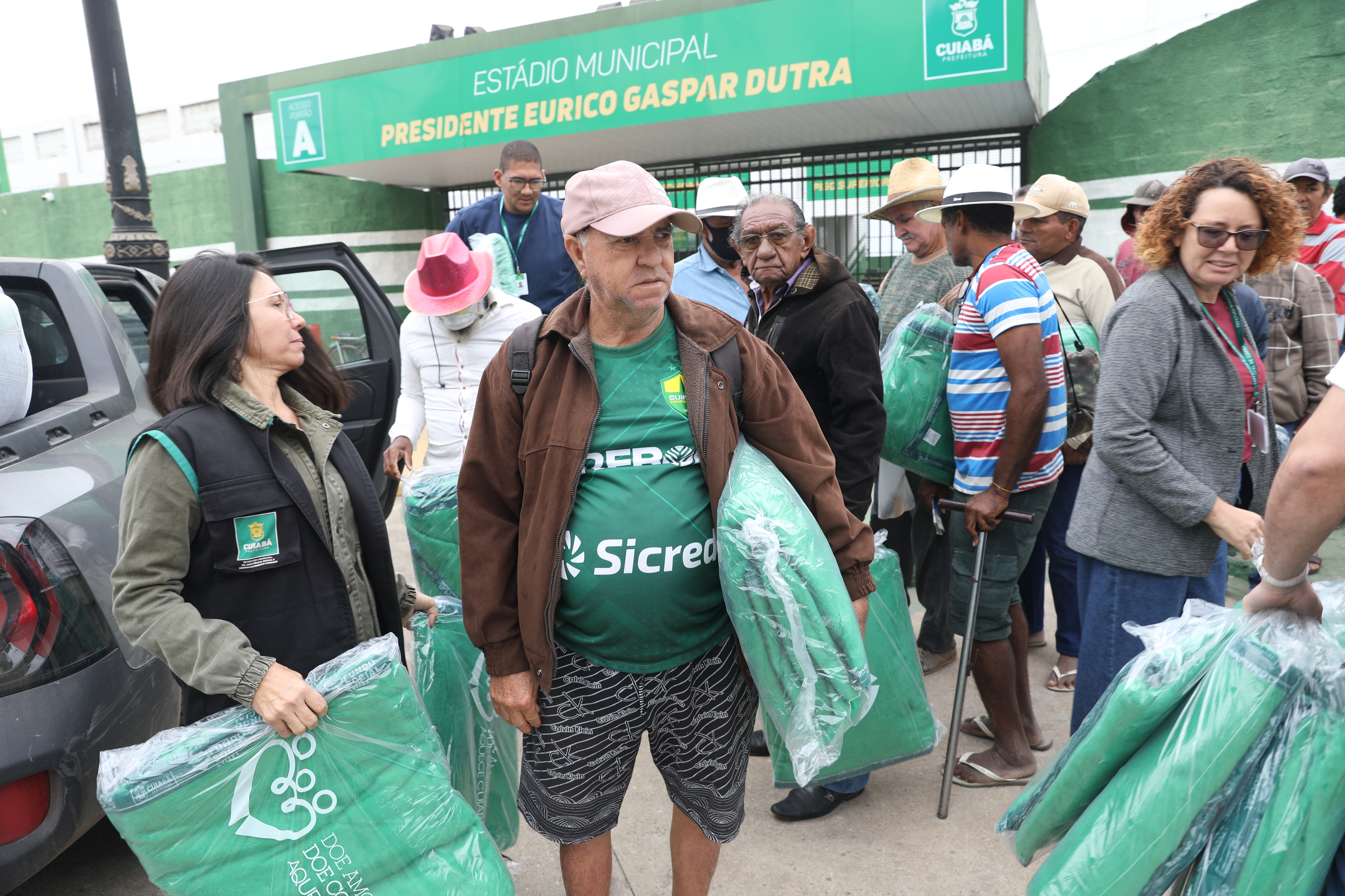 A Prefeitura de Cuiabá, por meio da Secretaria Municipal de Assistência Social, Direitos Humanos e da Pessoa com Deficiência, iniciou na quinta-feira (13), mais uma ação de distribuição de cobertores à população em situação de rua, mediante a chegada de uma nova frente fria.