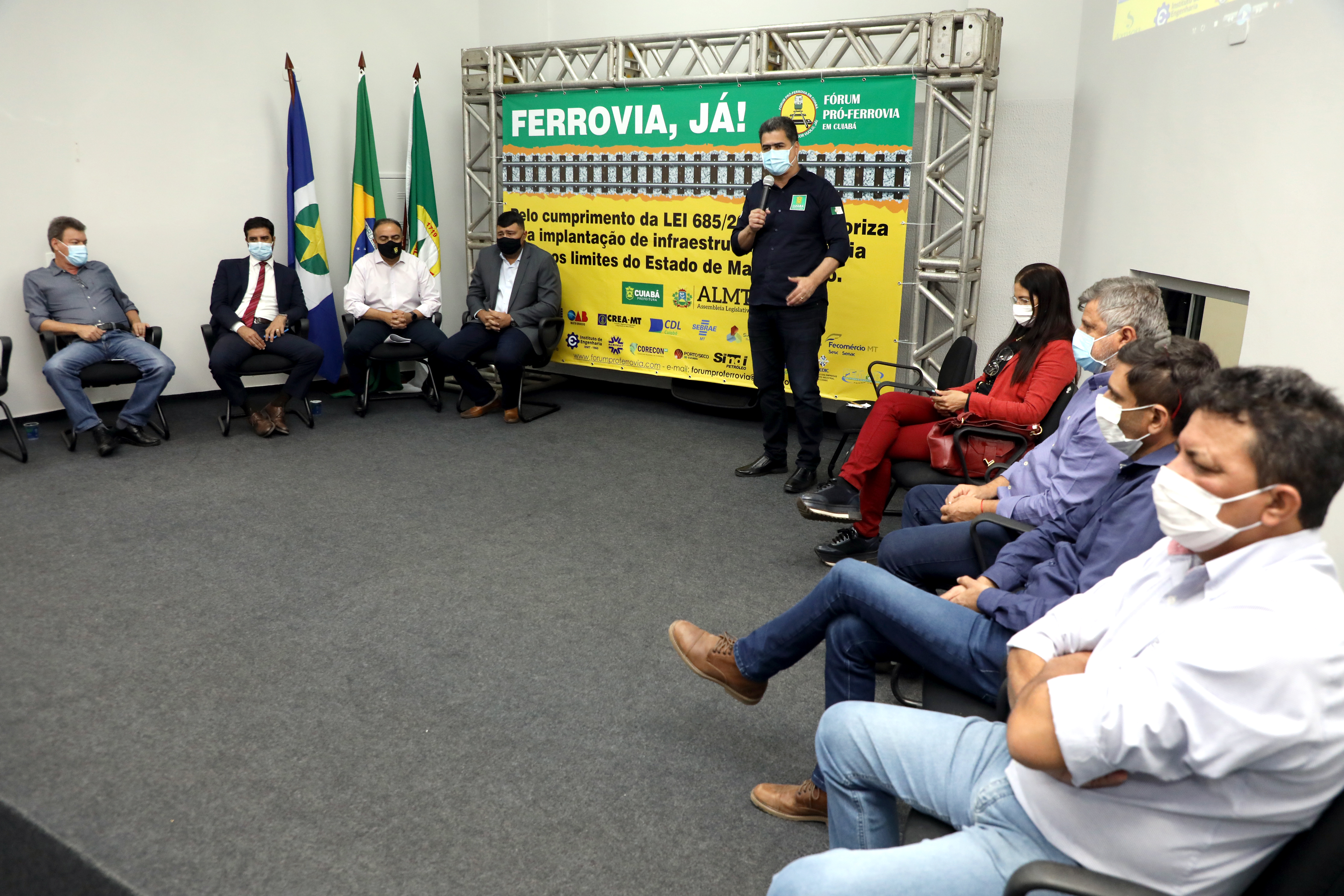 Parlamentares das esferas federal, estadual e municipal participaram, na tarde desta terça-feira (20), da assinatura do manifesto de apoio a Lei 685/2021, que trata da expansão do sistema ferroviário de Mato Grosso. O encontro foi promovido pelo presidente do Consórcio Intermunicipal de Desenvolvimento Econômico e Social do Vale do Rio Cuiabá, o prefeito de Cuiabá, Emanuel Pinheiro, no auditório da Secretaria Municipal de Educação e pelo presidente do Fórum Pró-Ferrovia, Francisco Vuolo.