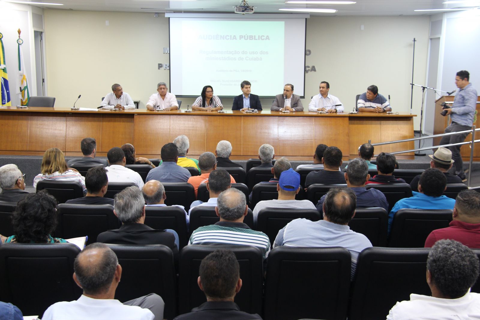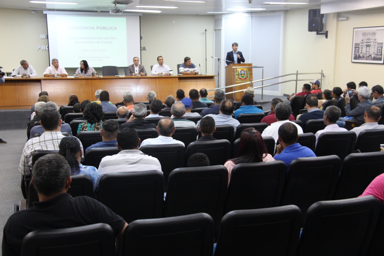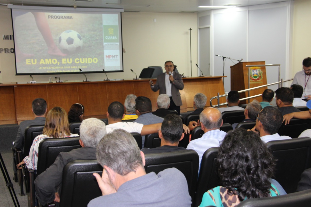 Representantes da sociedade civil lotaram o auditório da Procuradoria-geral de Justiça (PGJ) para discutir sobre a regulamentação do uso de mini-estádios em Cuiabá, no último dia 05 de agosto. A audiência pública presidida pela promotor de justiça Miguel Slhessarenko Junior contou com a participação do secretário Municipal de Esporte, Francisco Vuolo.