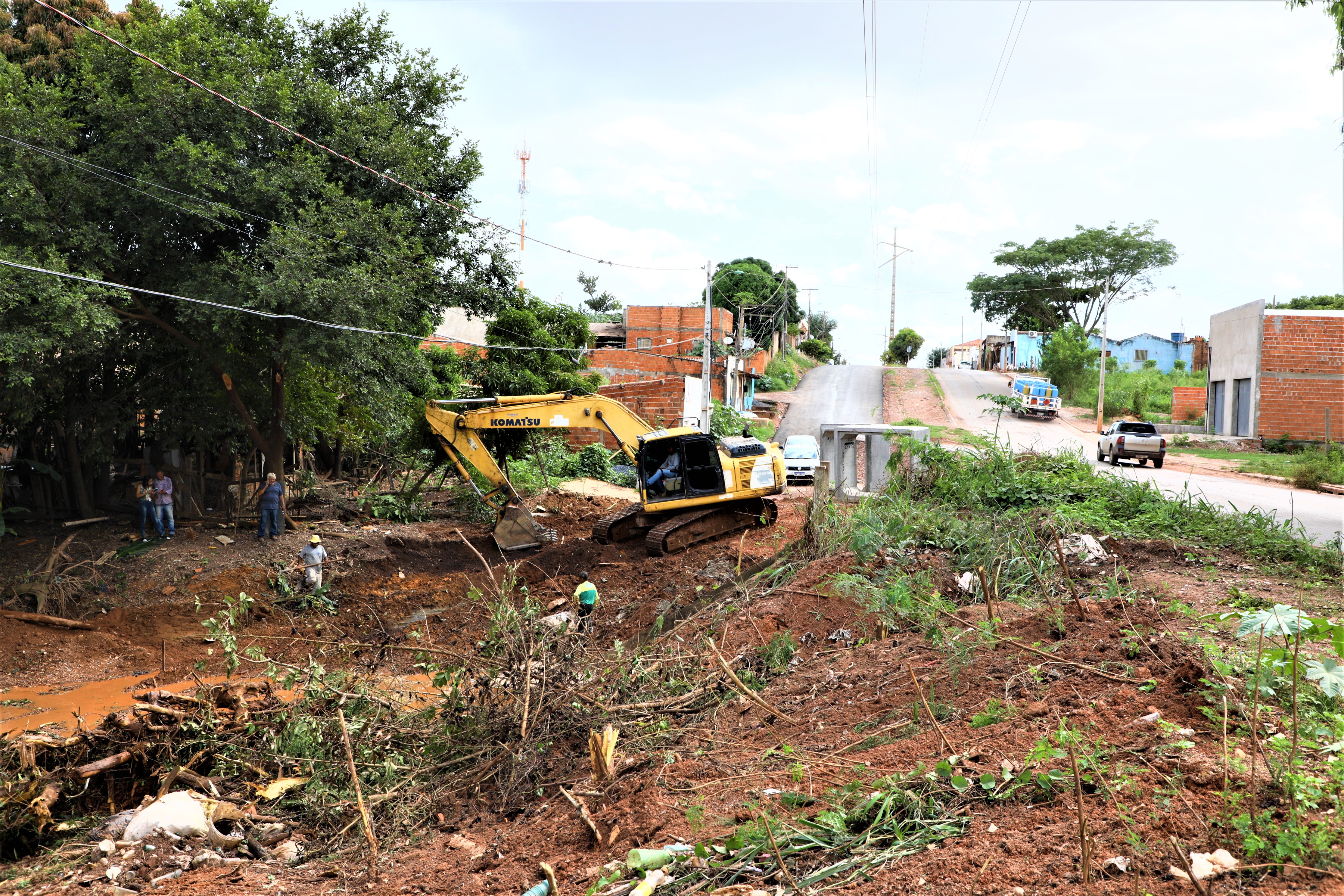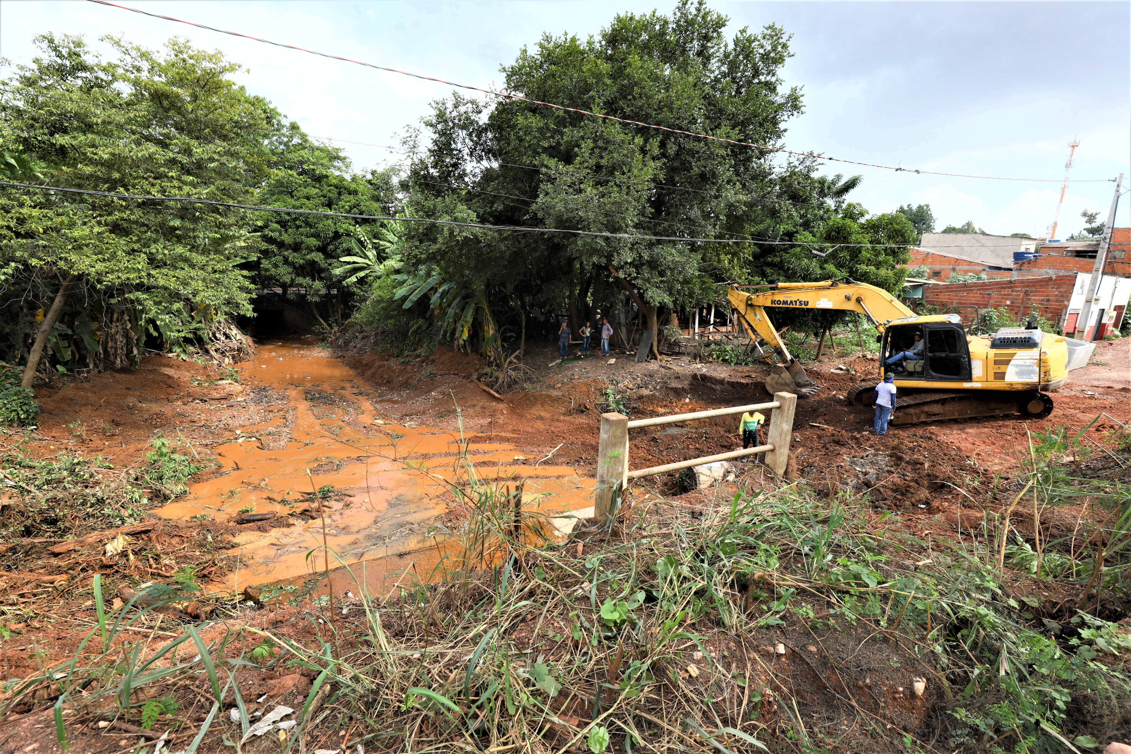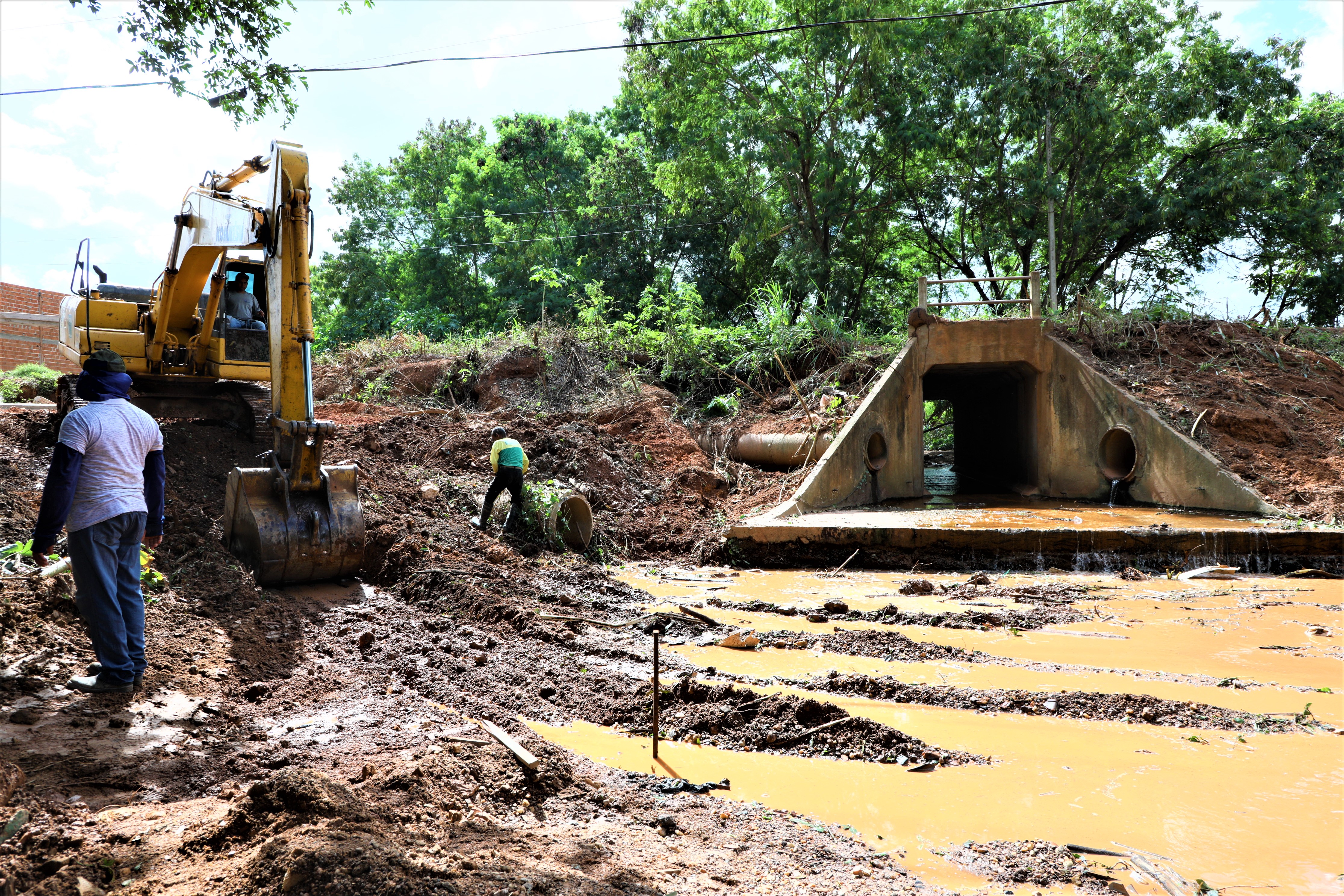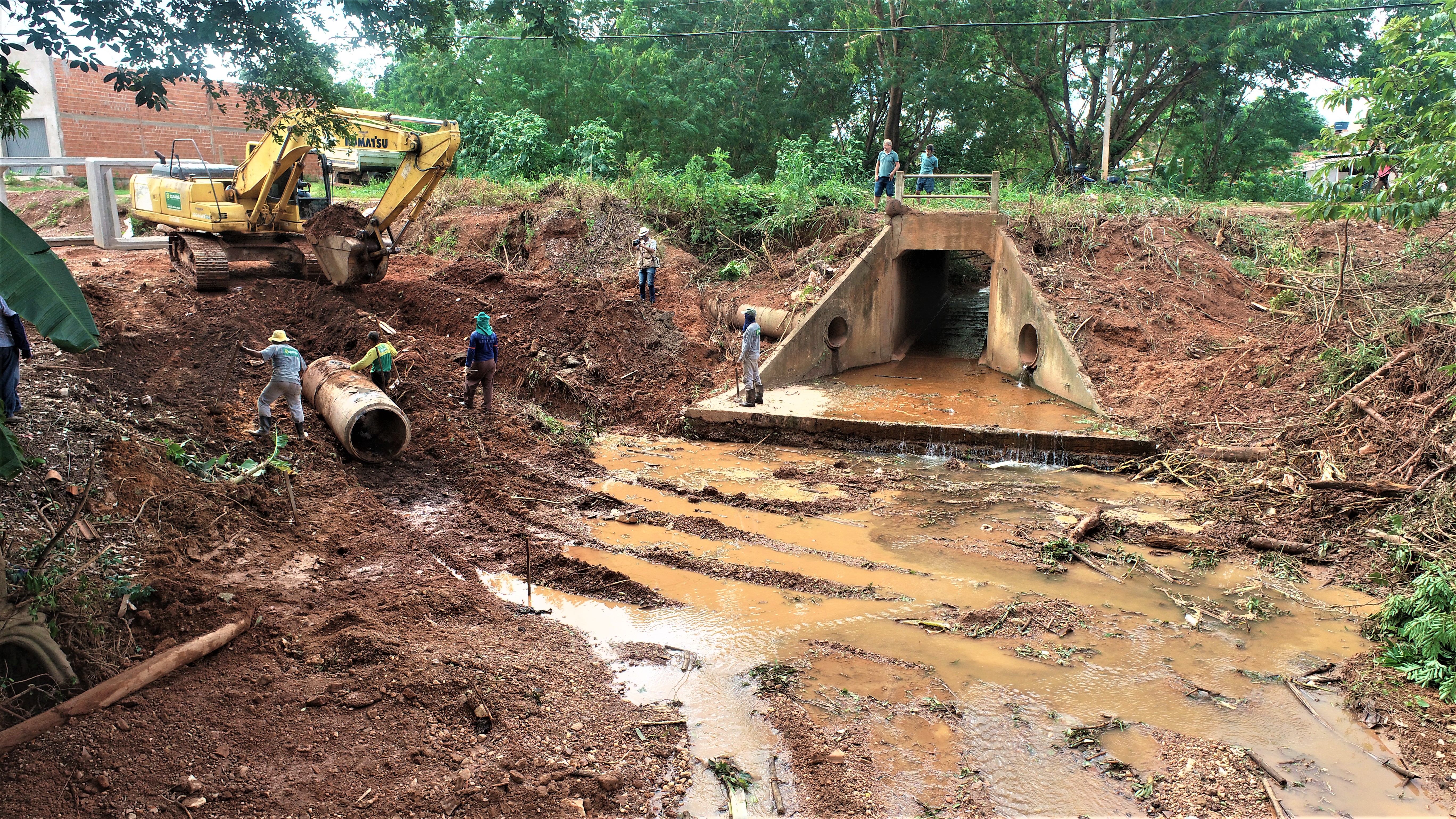 A Avenida A, situada no bairro Nova Conquista, é contemplada com os serviços de ampliação da travessia de concreto que passa sob um córrego na região. Os trabalhos são desempenhados pela Secretaria Municipal de Obras Públicas (SMOP), possibilitando a continuidade das obras de duplicação da via.