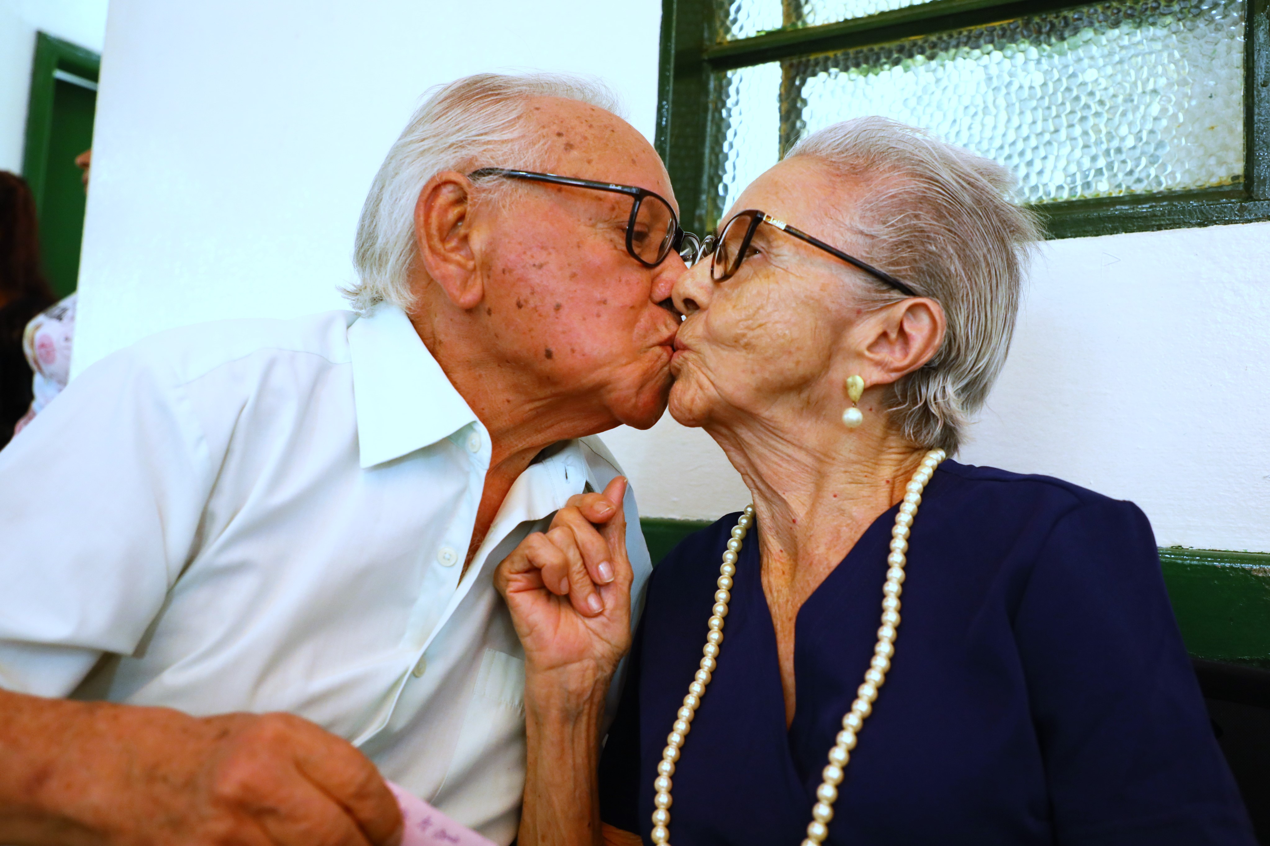 Outro exemplo de que ainda existe amor suficiente para sustentar uma união é o casal Maria dos Santos e Celso dos Santos. Estão juntos há 71 anos, dos quais 66 anos de matrimônio. Paciência é a palavra-chave de tudo, contou Maria. “Quando conheci o Celso, eu tinha treze e ele quinze anos. Foi amor à primeira vista. Buscamos todos os dias nos respeitar com muito carinho, amor e dedicação.”