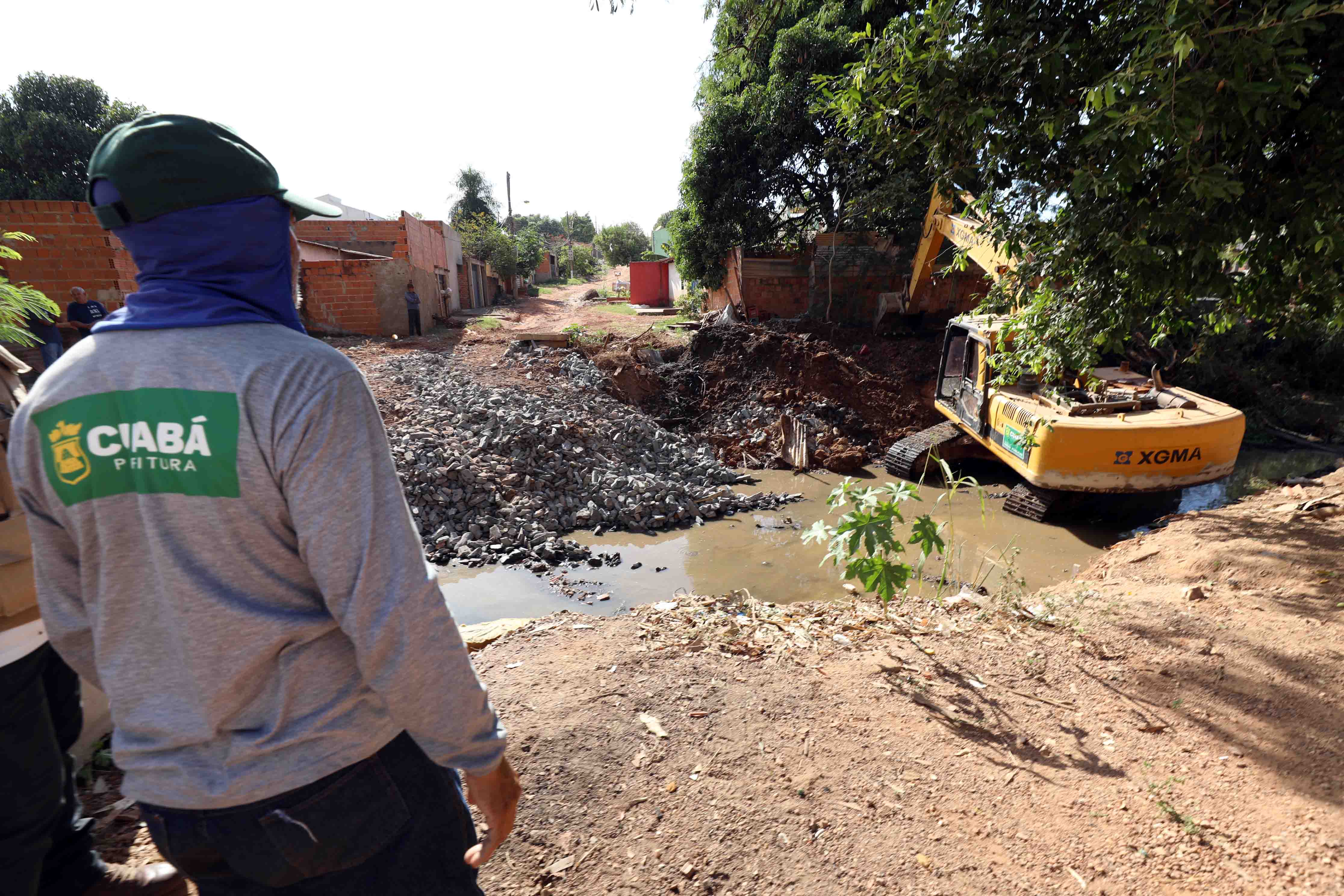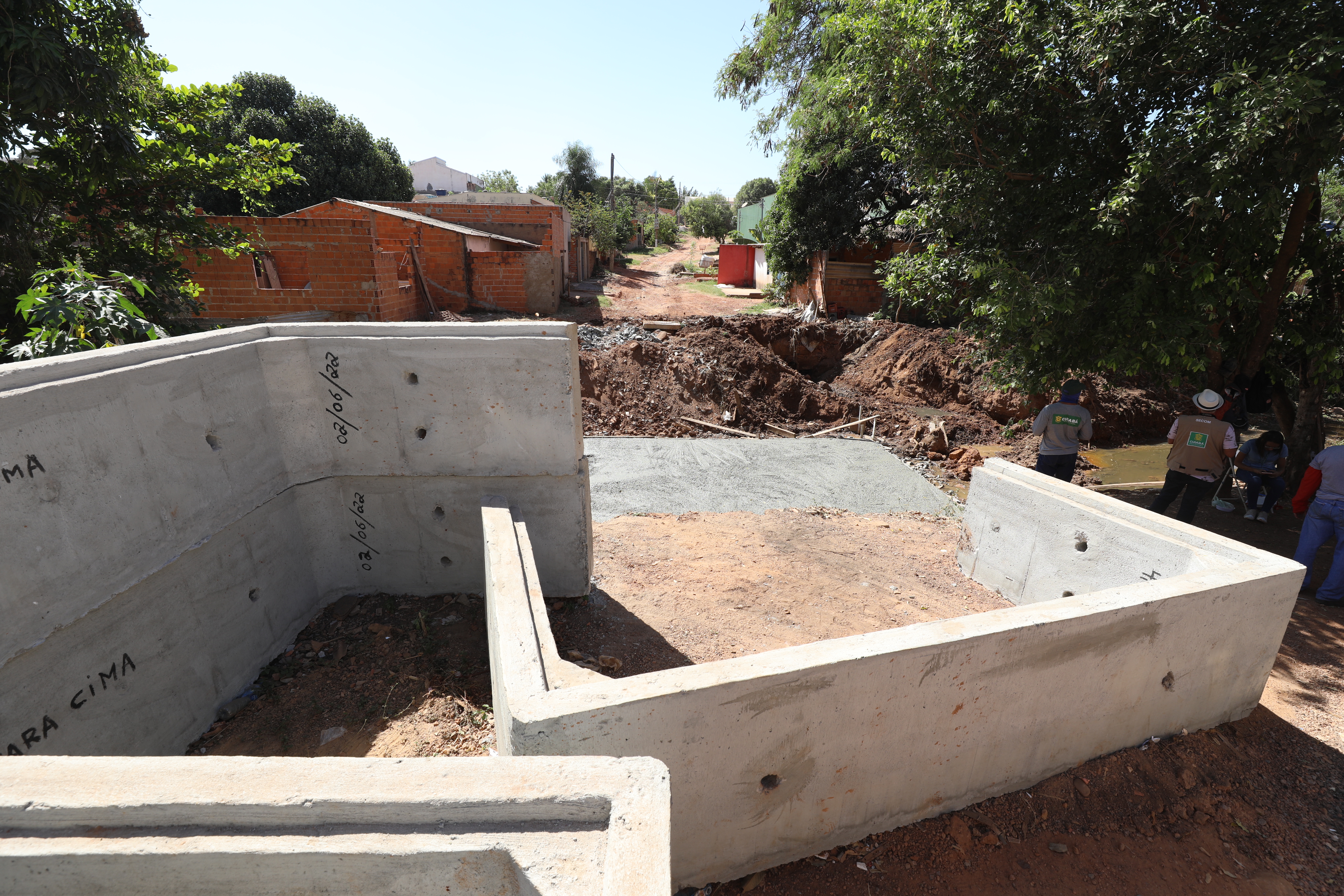 A Prefeitura de Cuiabá, por intermédio da Secretaria de Obras Públicas (SMOP), iniciou a construção de duas travessias de concreto, sobre o Córrego do Gumitá, no bairro Centro América.