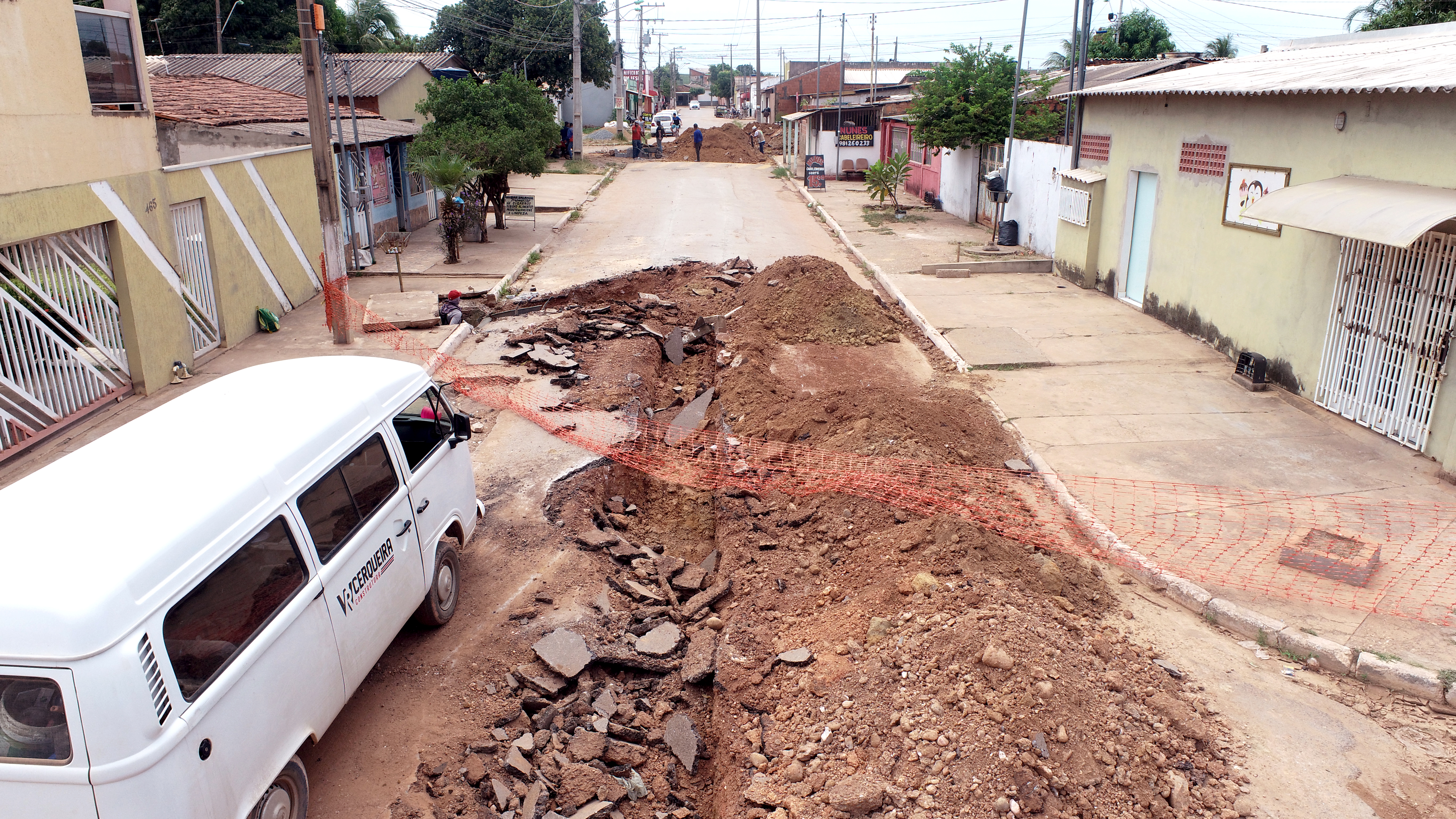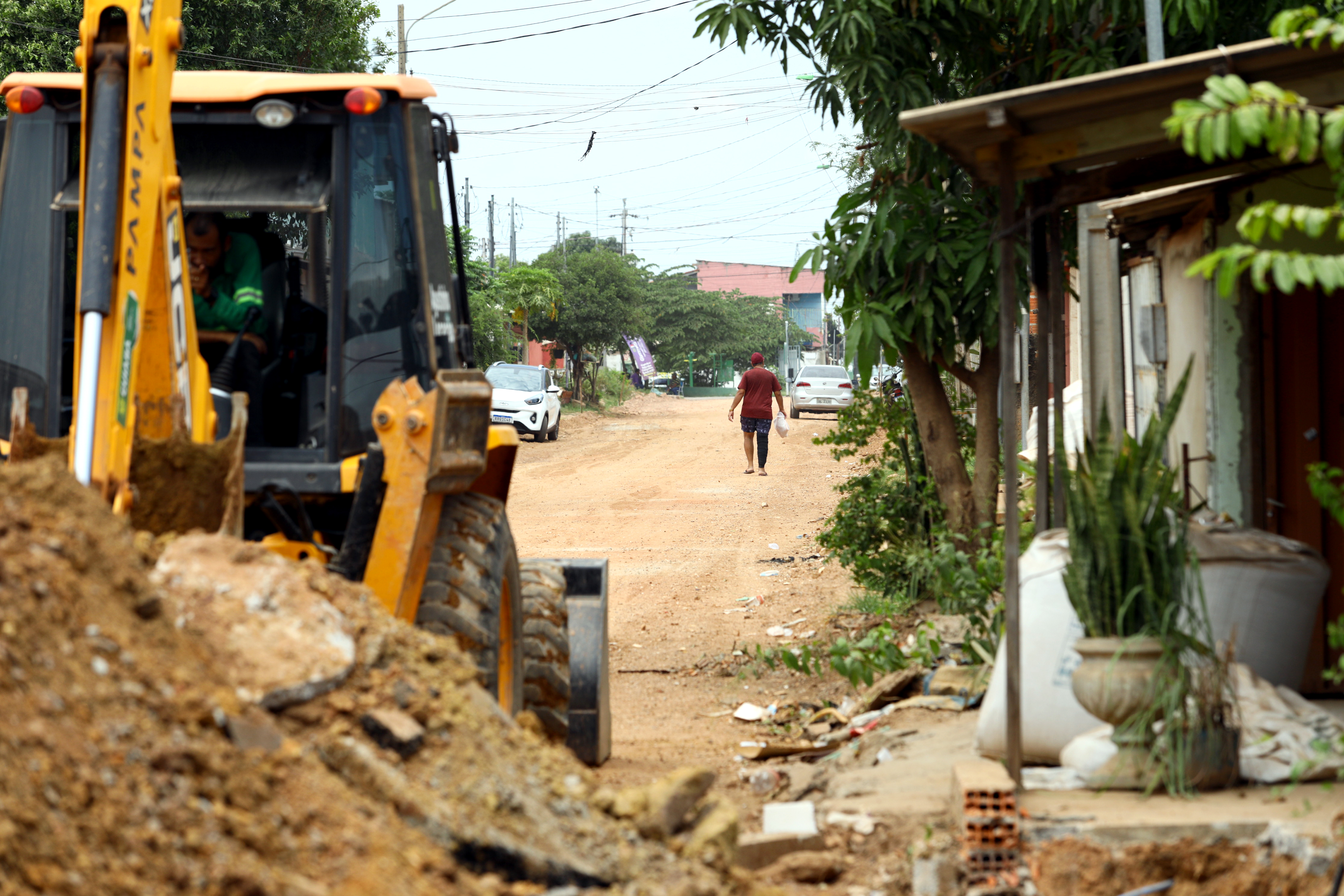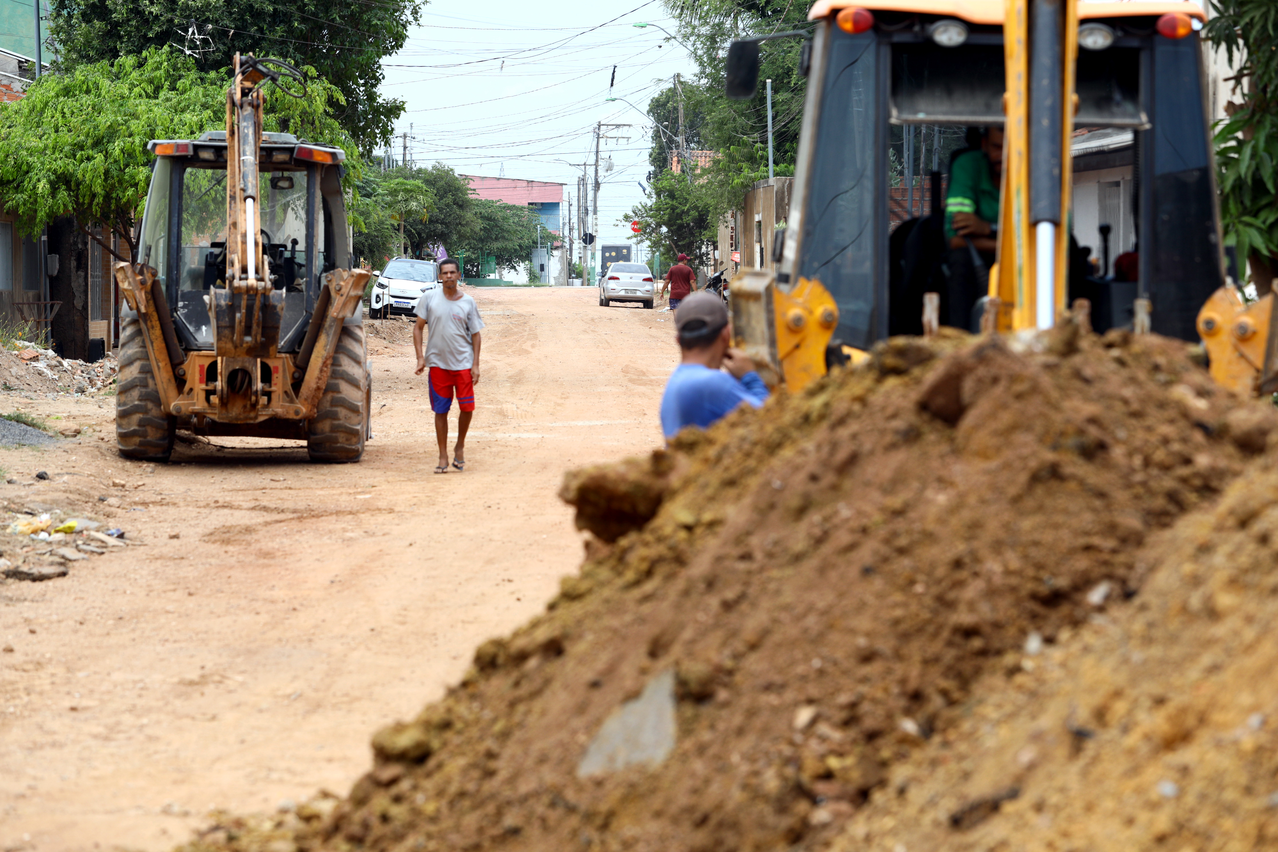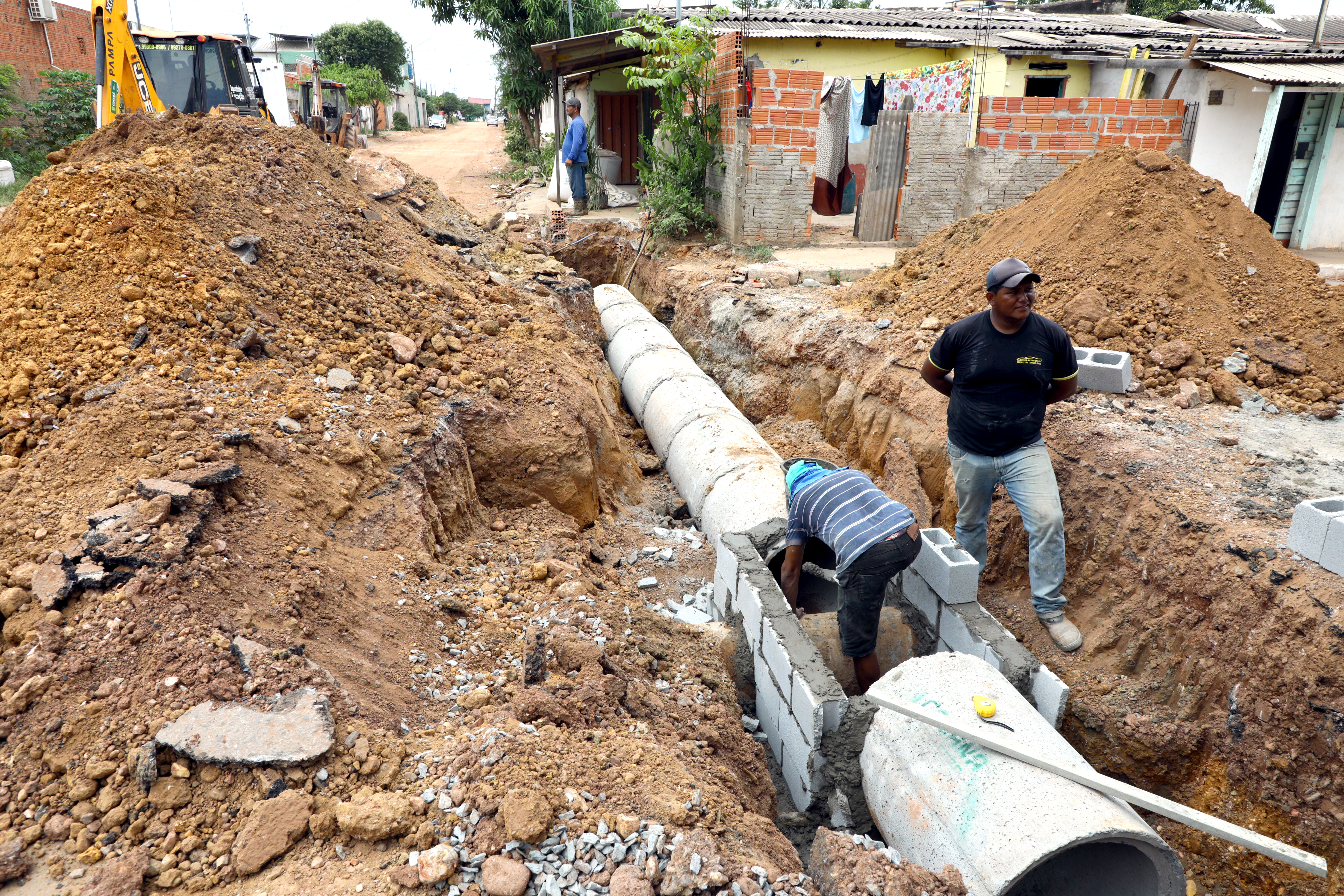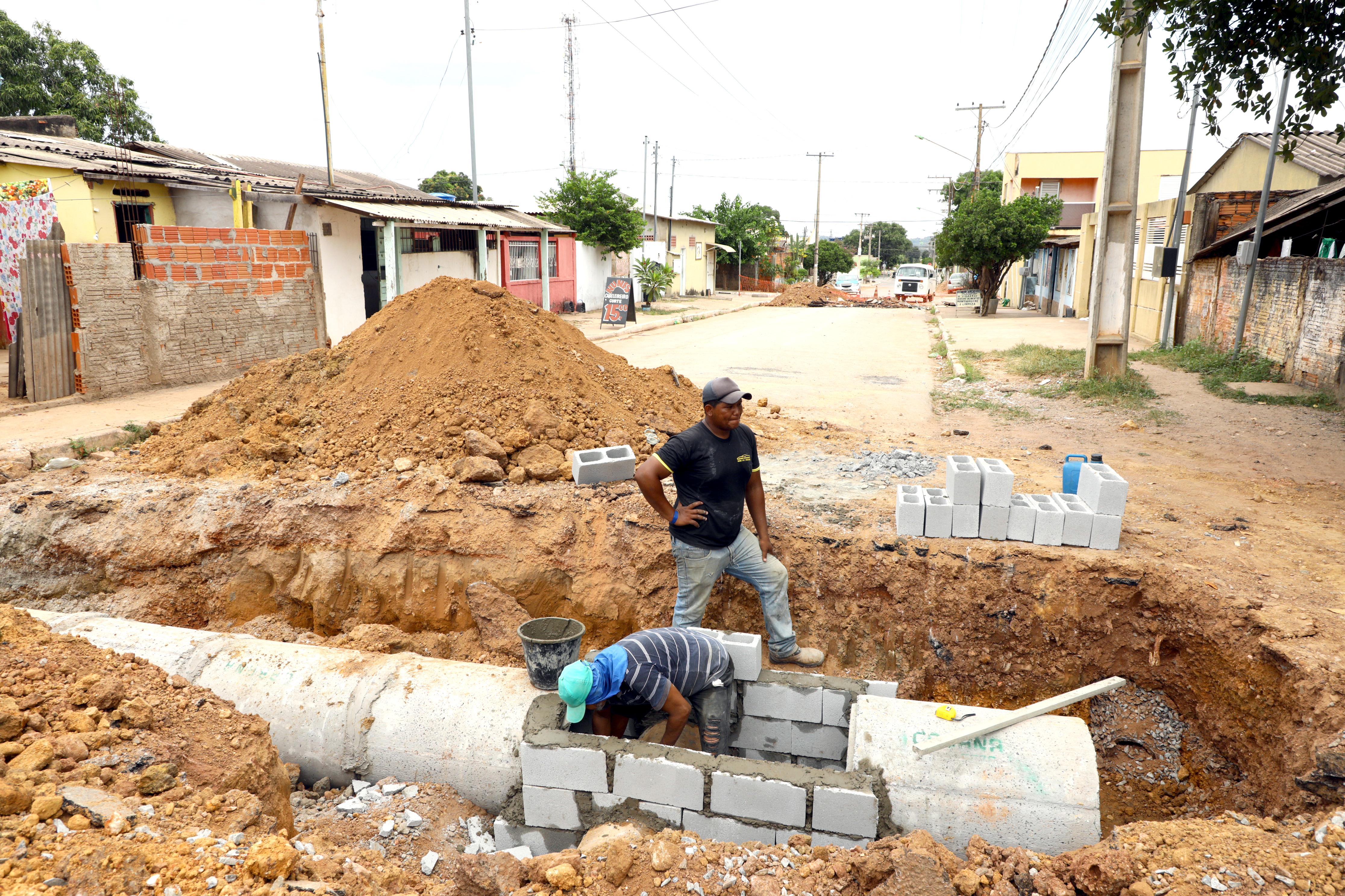 A atuação das equipes está centralizada na rua 9, por meio da promoção da atividade de construção da rede de drenagem de águas pluviais, que engloba a escavação do solo e lançamento do sistema de tubulação. Posteriormente, avançaram para as demais vias da comunidade.