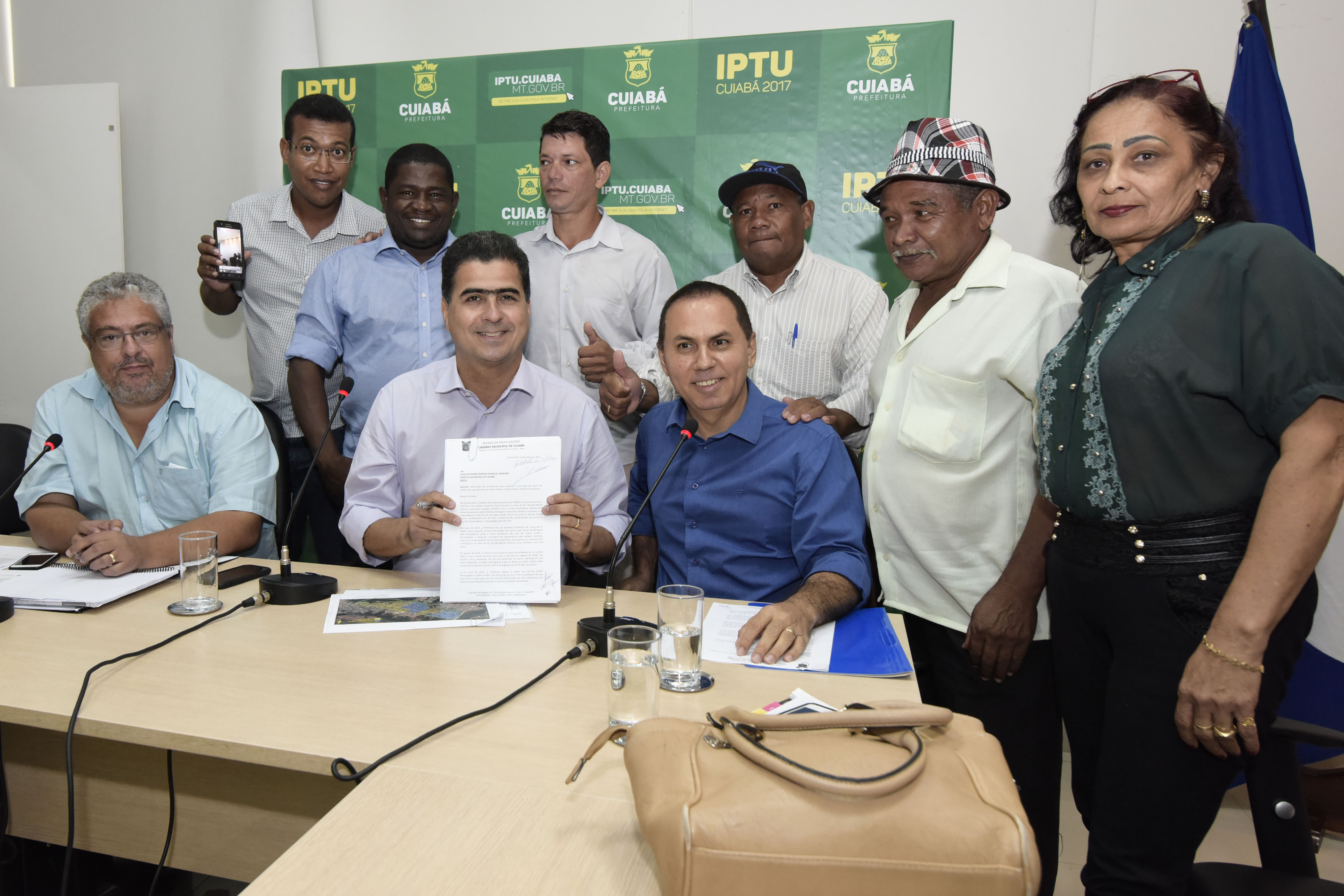 O prefeito Emanuel Pinheiro, acompanhado do secretário Municipal de Obras Públicas, Vanderlúcio Rodrigues e do Adjunto de Relações Comunitárias, Jonail Costa, se comprometeu com a Comissão de presidentes e moradores dos bairros Jardim Vitória, Florianópolis, União e com o porta voz do grupo, vereador Dilemário Alencar, que as obras de pavimentação asfálticas dos referidos bairros serão relançadas no aniversário de 298 anos da Capital, no próximo 08 de abril.