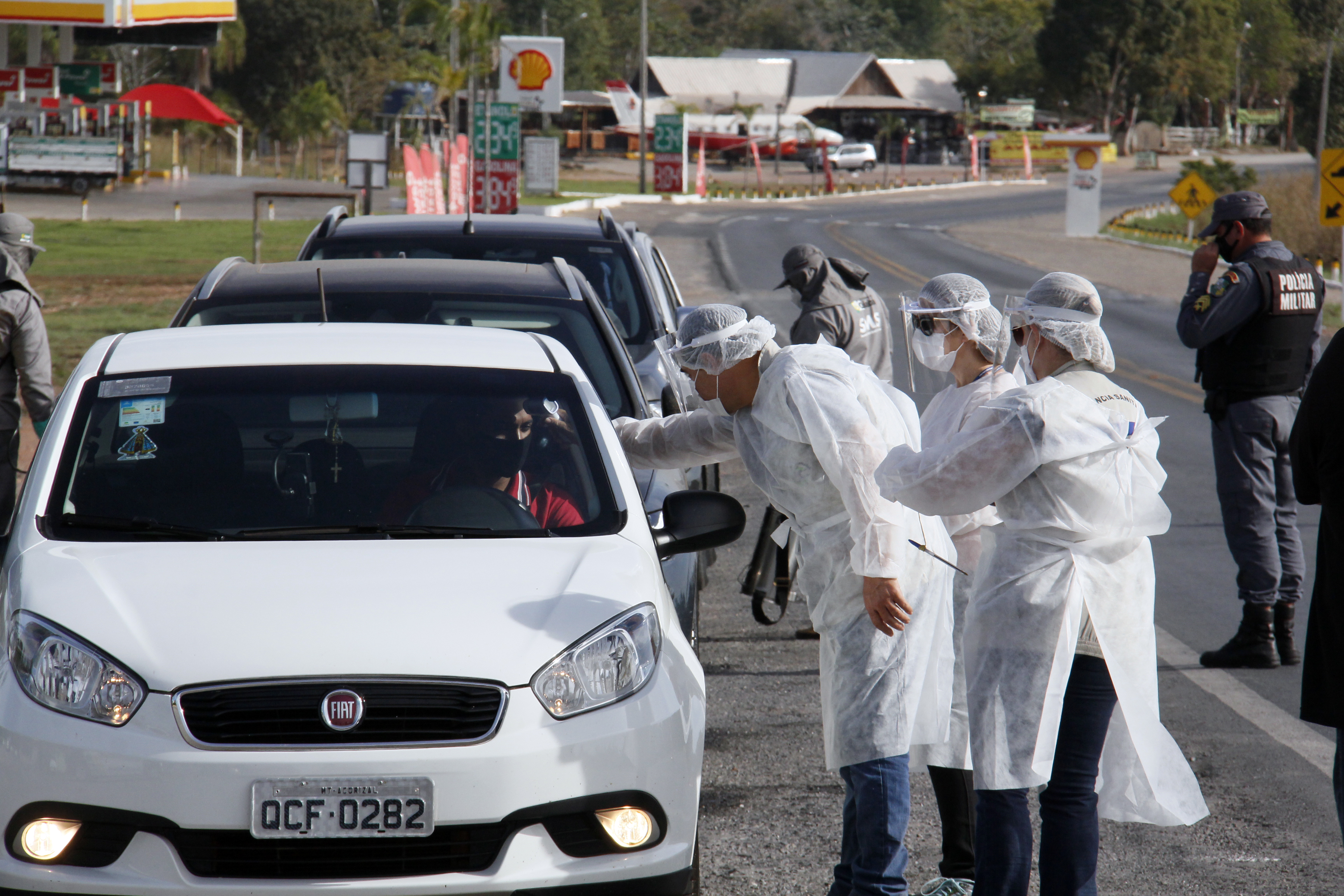 Começou às 8h desta quarta-feira (8) o trabalho das equipes da Vigilância Sanitária nas barreiras instaladas em quatro rodovias que dão acesso à Cuiabá, para aferir a temperatura corporal das pessoas que chegavam à cidade e realizar questionário junto àquelas que apresentavam sintomas da Covid-19. No início da manhã, o fluxo de veículos foi maior na rodovia estadual MT-251 (estrada para Chapada dos Guimarães) e também na BR-163/364 (saída para Rondonópolis). Somente nesta barreira sanitária, mais de 80 veículos, entre motocicletas, carros de passeio, vans, ônibus rodoviários e caminhões foram abordados. Até a manhã desta quarta-feira, não houve registro de condutores ou passageiros com febre e ninguém precisou ser encaminhado a unidade de saúde.