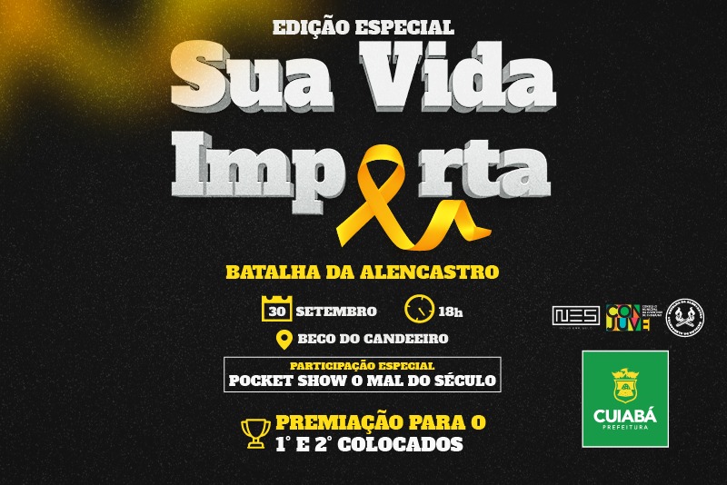 A programação do ‘Setembro Amarelo’ realizada pela Secretaria Municipal de Assistência Social, Direitos Humanos e da Pessoa com Deficiência, da Prefeitura de Cuiabá, conta com uma participação especial do grupo de Hip Hop - “Batalhas da Alencastro”. Após quase dois anos das atividades suspensas em razão da pandemia causada pelo novo coronavírus, o movimento retoma as apresentações na próxima quinta-feira (30), no Beco do Candeeiro.